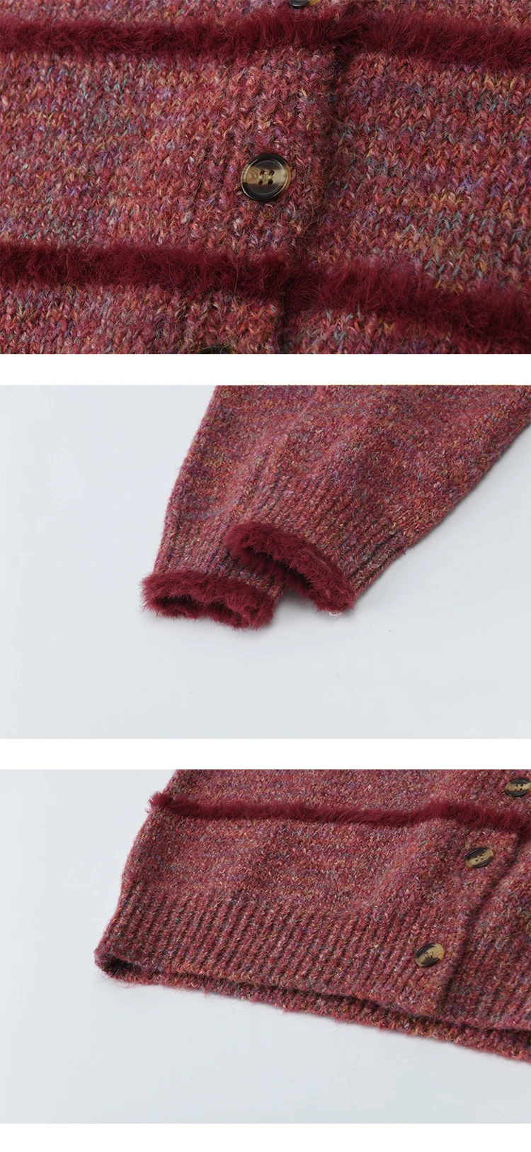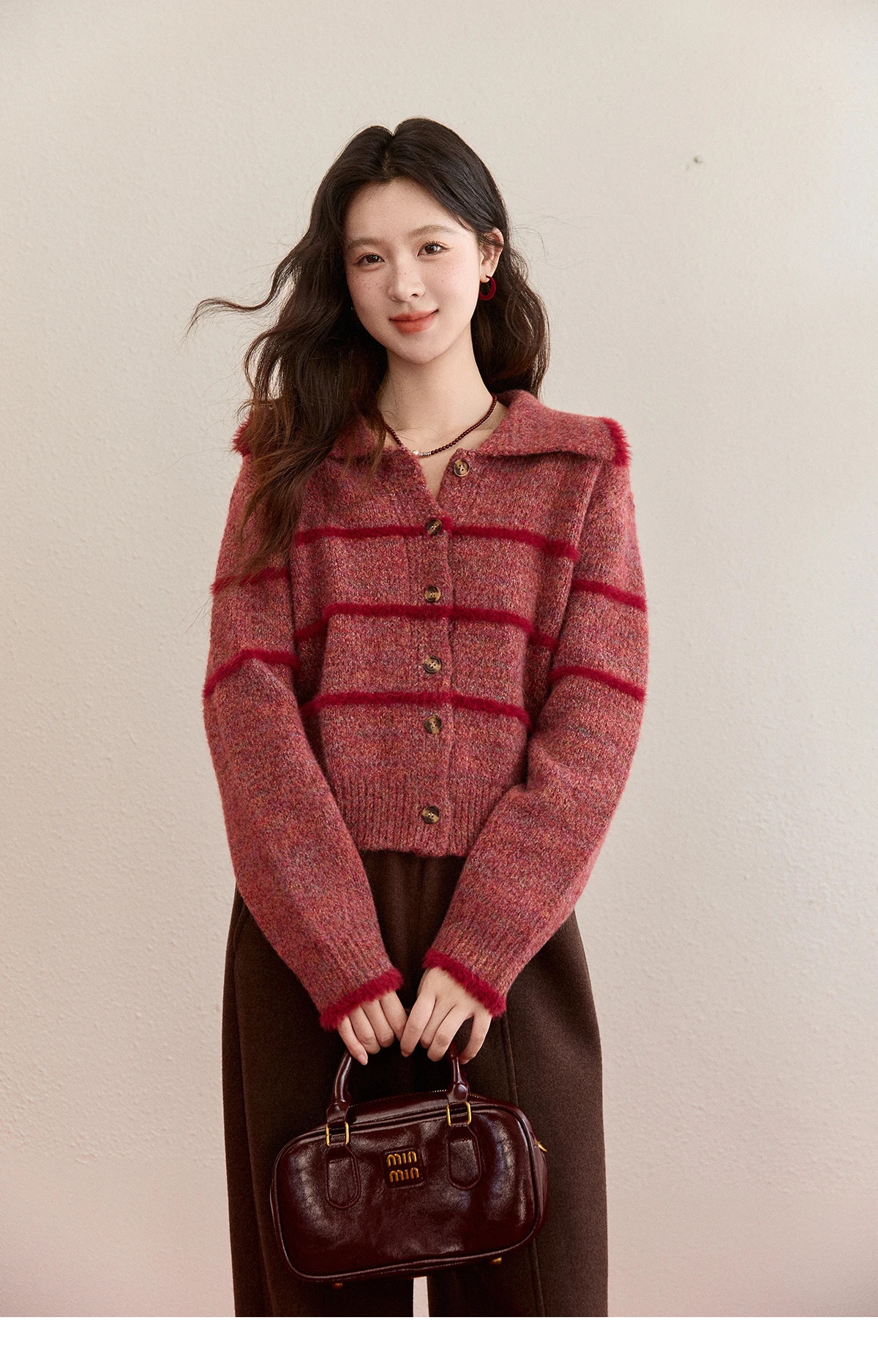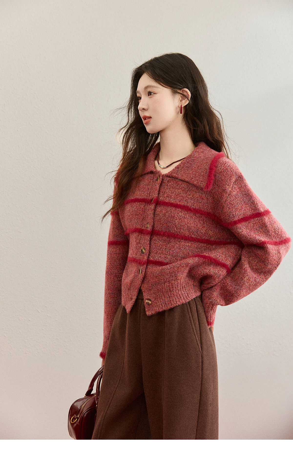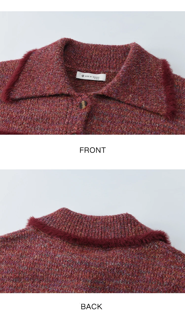 MISHOW Christmas Women's Retro Red Striped Large Lapel Knitted Cardigan 2025 Winter Color Block Fleece Patchwork Tops MXE94Z2888
