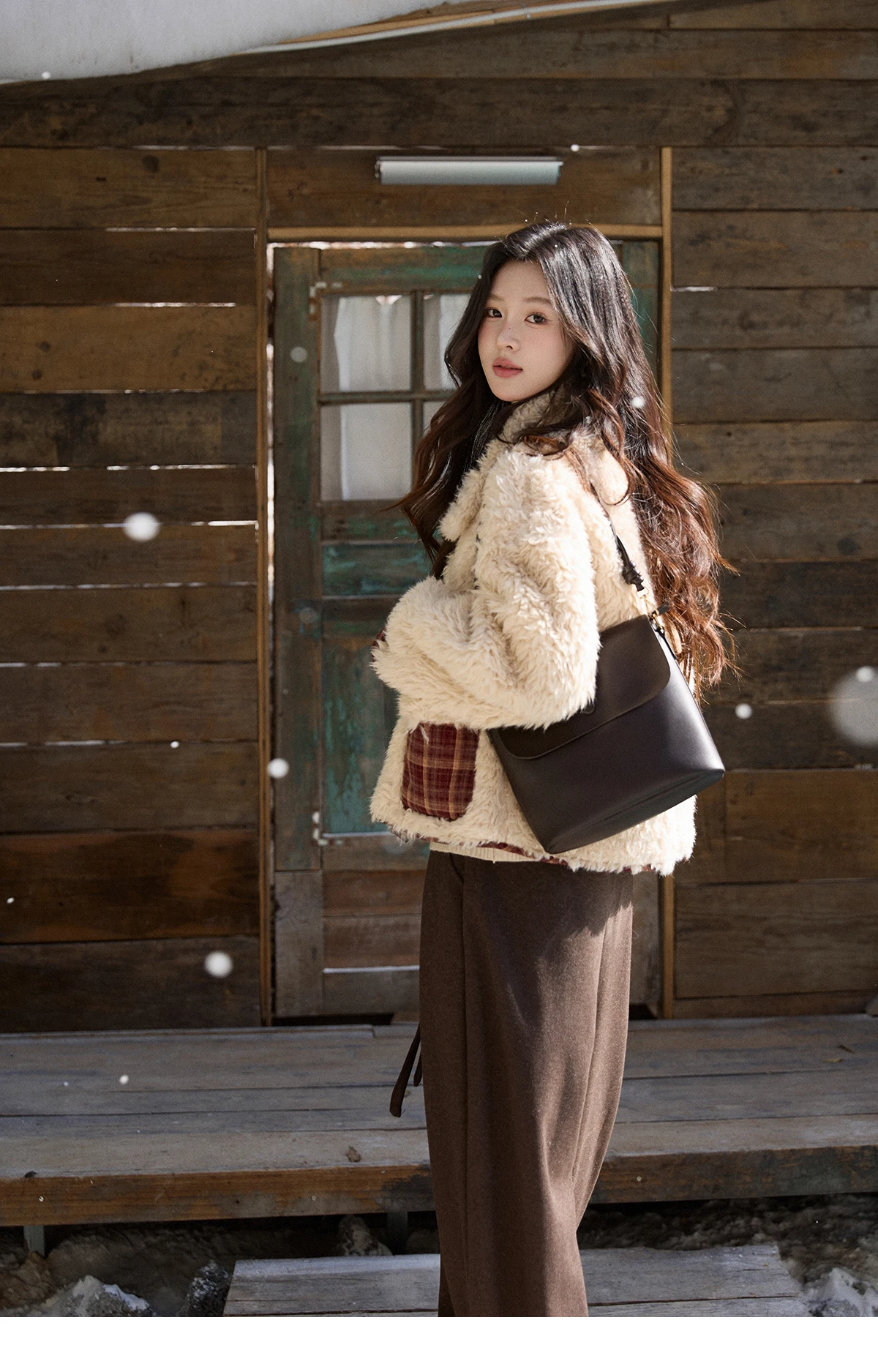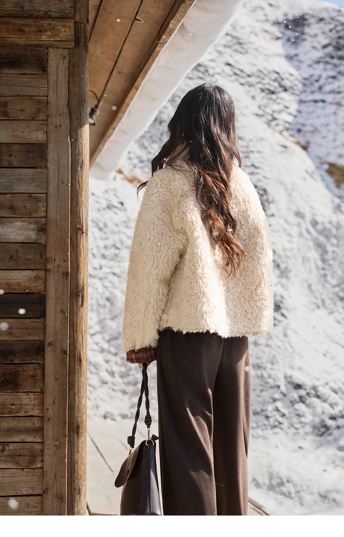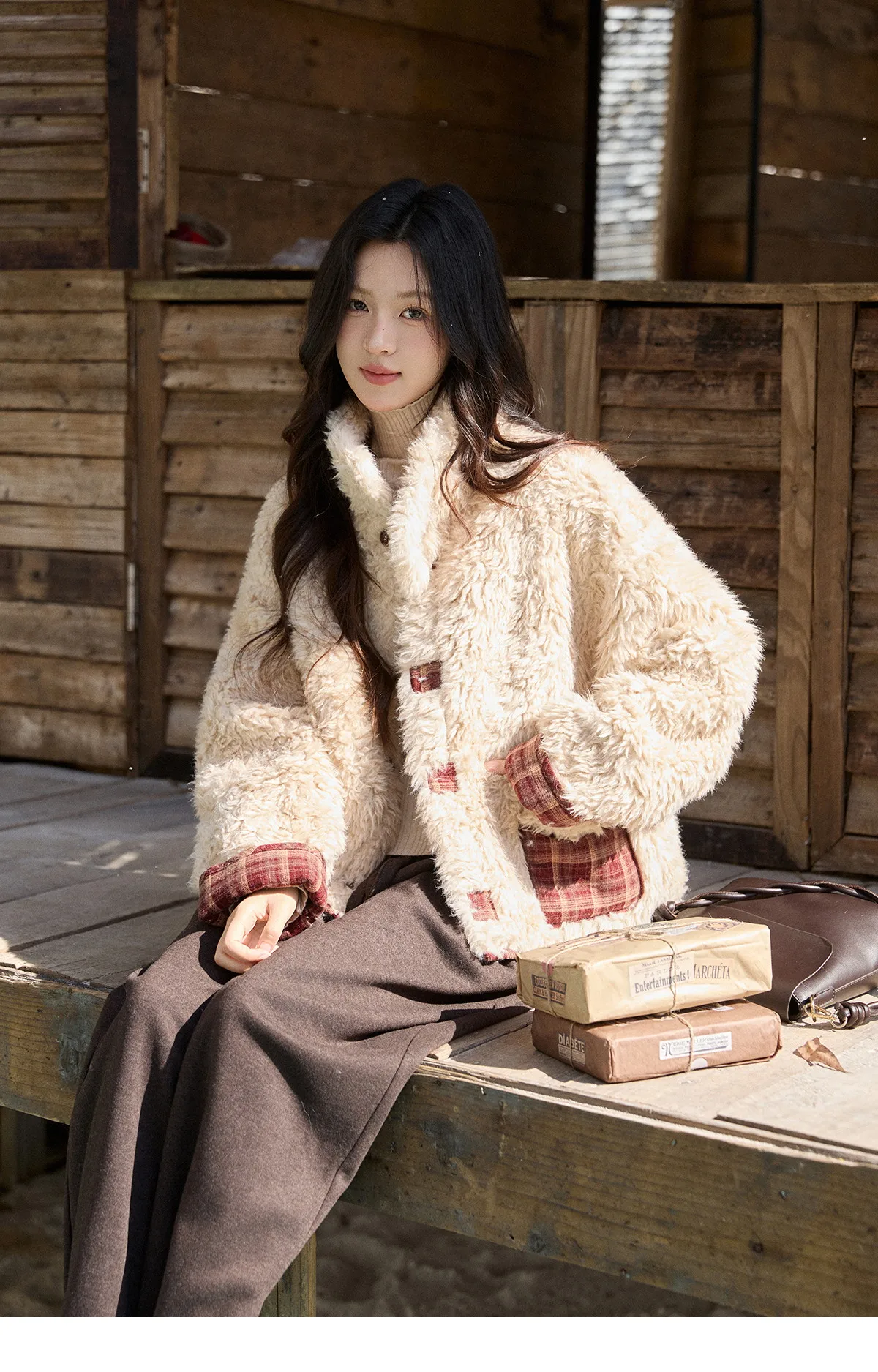 MISHOW Christmas Women's Reversible Retro Red Plaid Lamb Wool Coat 2025 Winter Loose Warm Fur-Lined Lapel Outerwear MXE93W1009