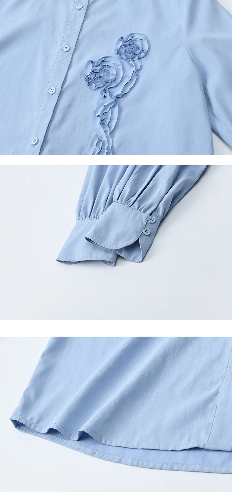 MISHOW Coiled Flowers Embroidered Blue Shirt for Women Autumn 2025 Stand Neck Lace-up Brushed Shirts Office Lady MXE44C2398
