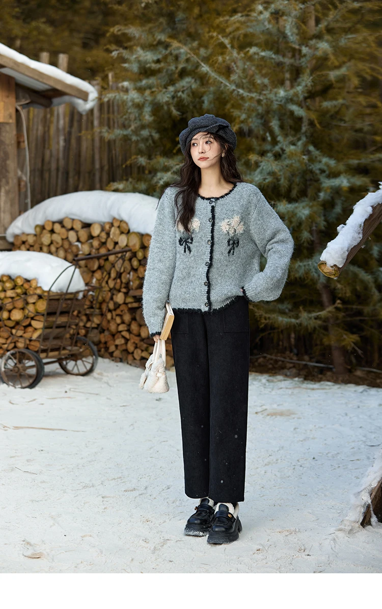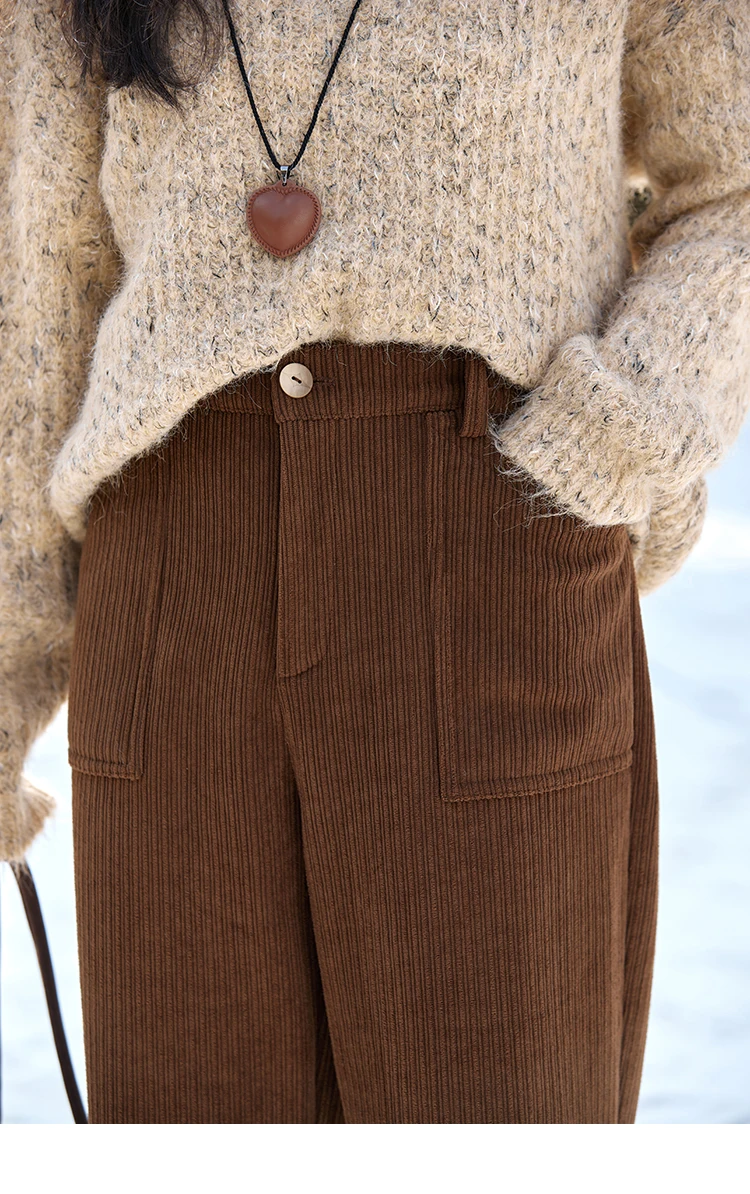 MISHOW Corduroy Pants High Waist Straight Pants Pocket Design Velvet Inside Comfortable Touch Slim Fit Office Lady MXD55K0813