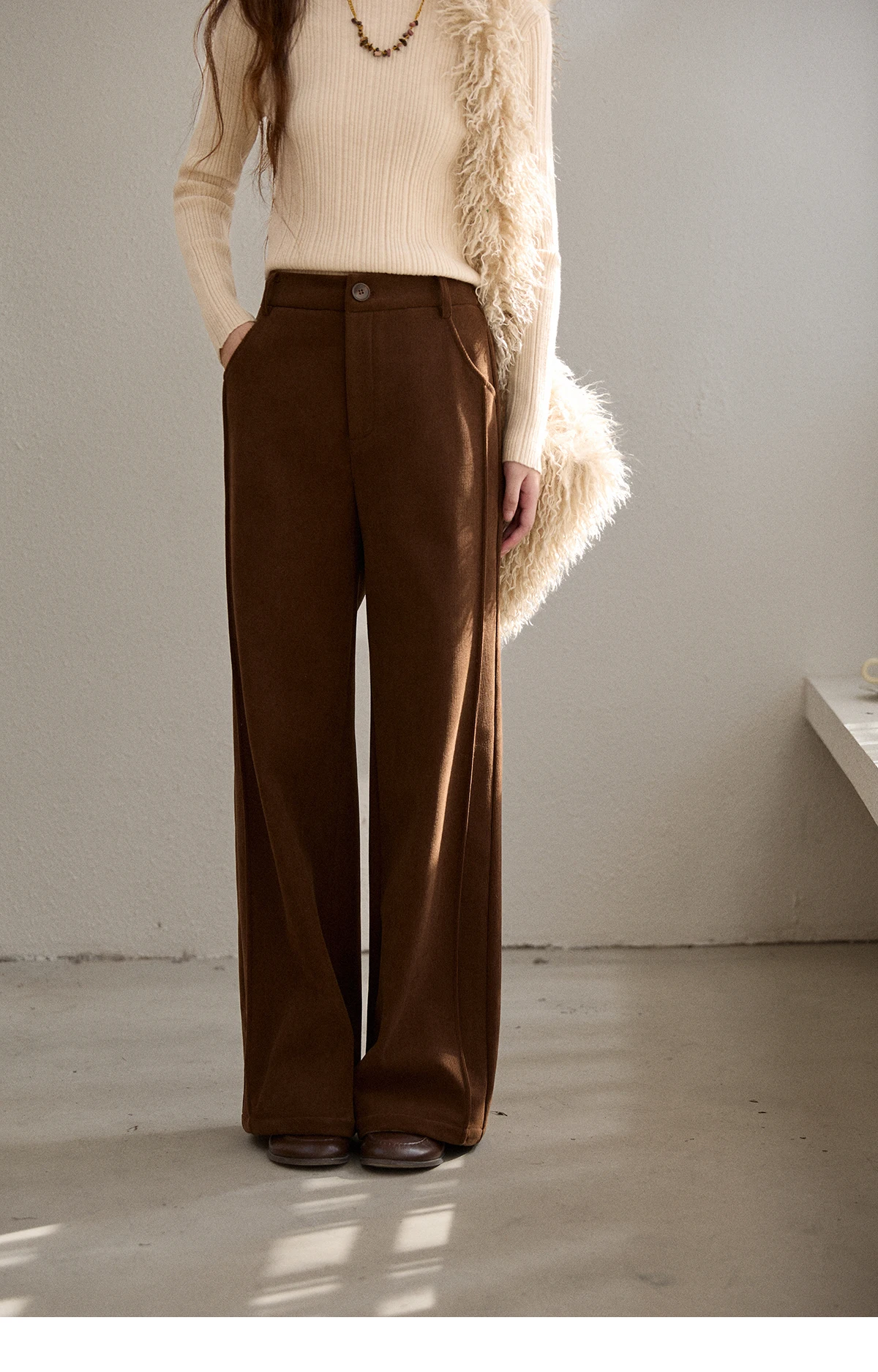 MISHOW Corduroy Straight Leg Pants for Women 2025 Winter Silver Fox Velvet Commuter Trousers Solid Casual Warm Pants MXE91K1125