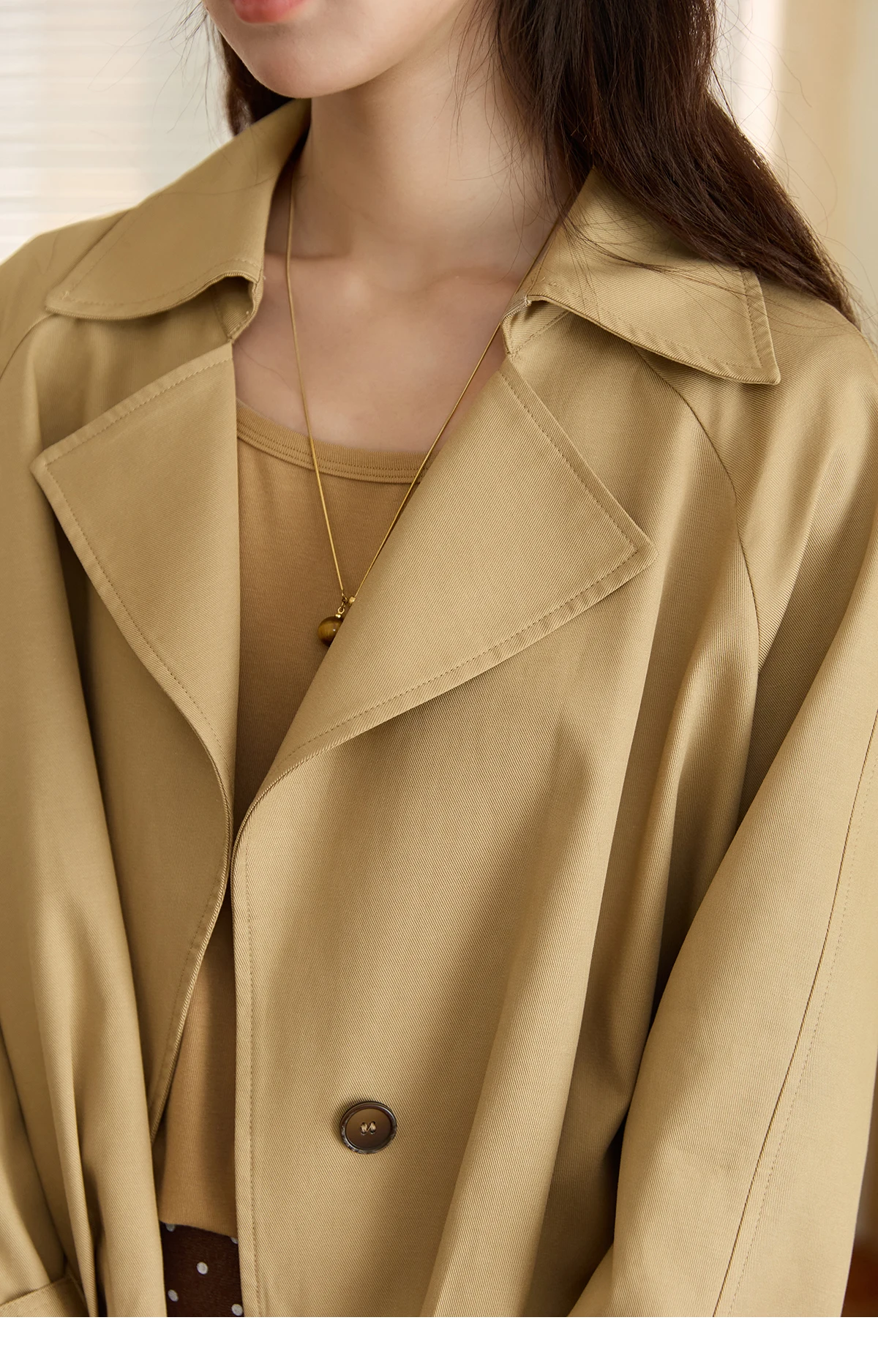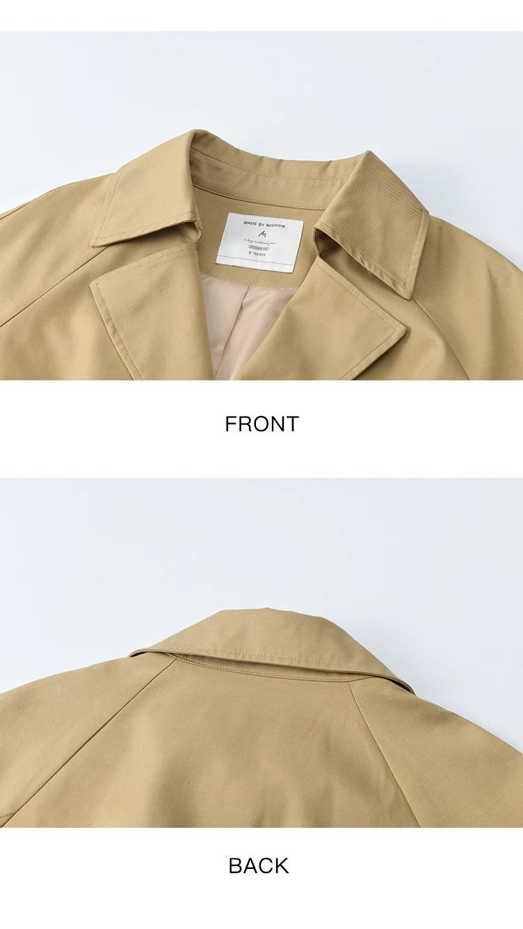 MISHOW Cotton Trench for Women 2025 Autumn Khaki Handmade Pleated Short Jacket Lapel Two Buttons Trench Office Lady MXE43W0804