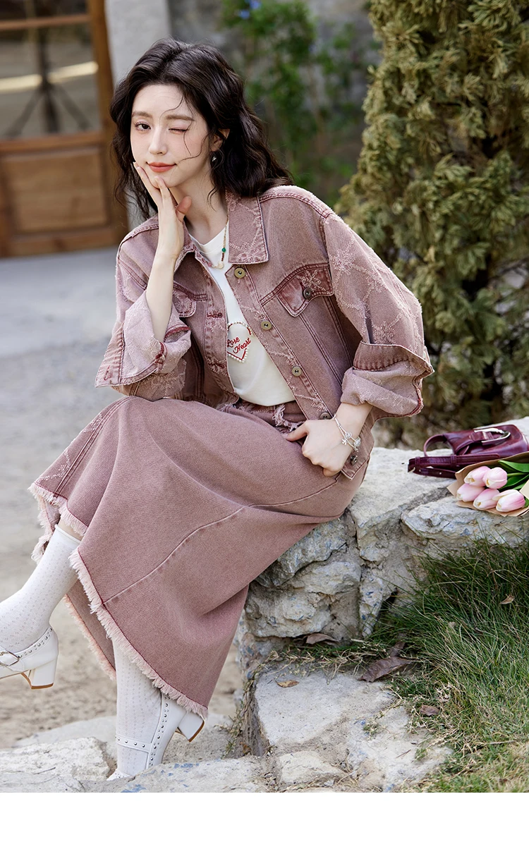 MISHOW Cowboy Skirts Separately For Women 2025 Spring New Gentle Sweet Thick Jacquard Short Jacket Mid Long Skirt MXE14W0754