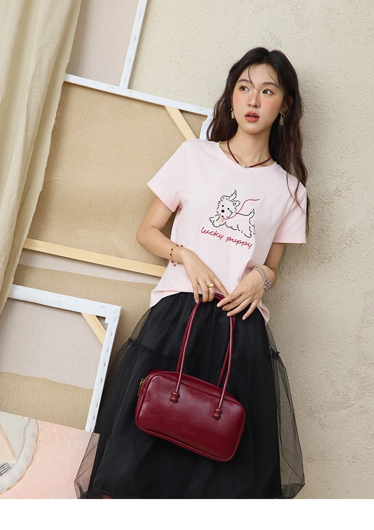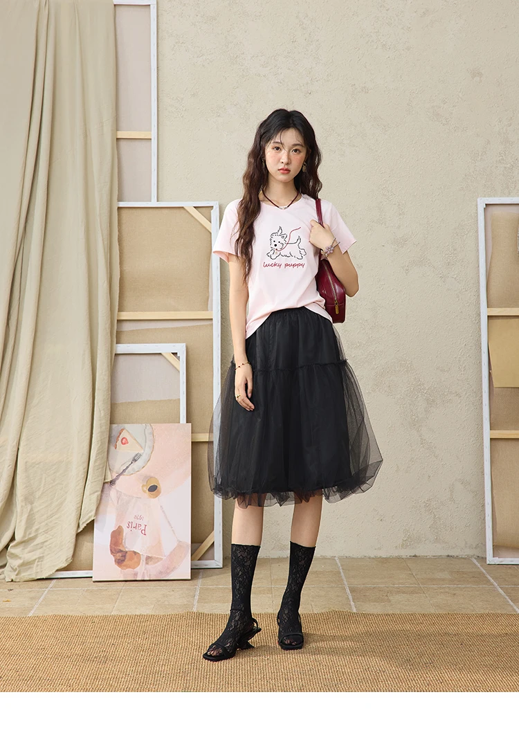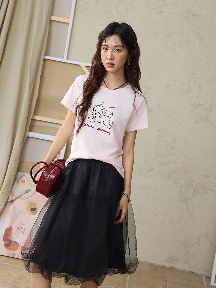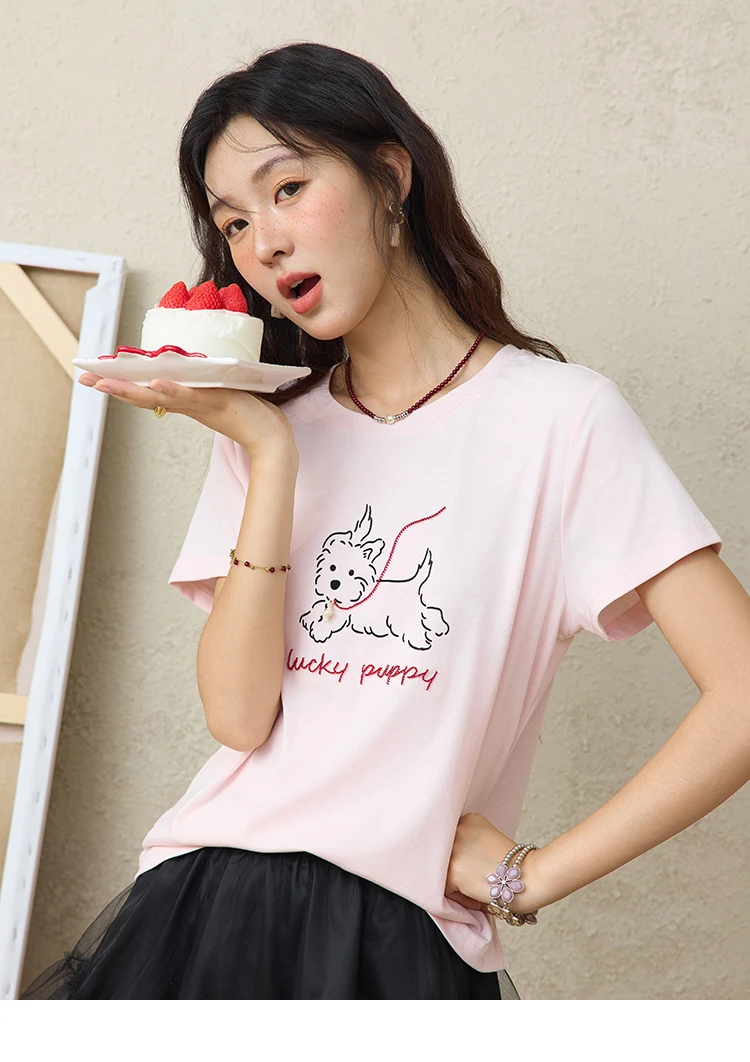 MISHOW Cute Printed Puppy Short Sleeve T-shirt 2025 Summer Round Neck Short Sleeved T-shirt Cotton Blend Casual Tees MXE36T0640
