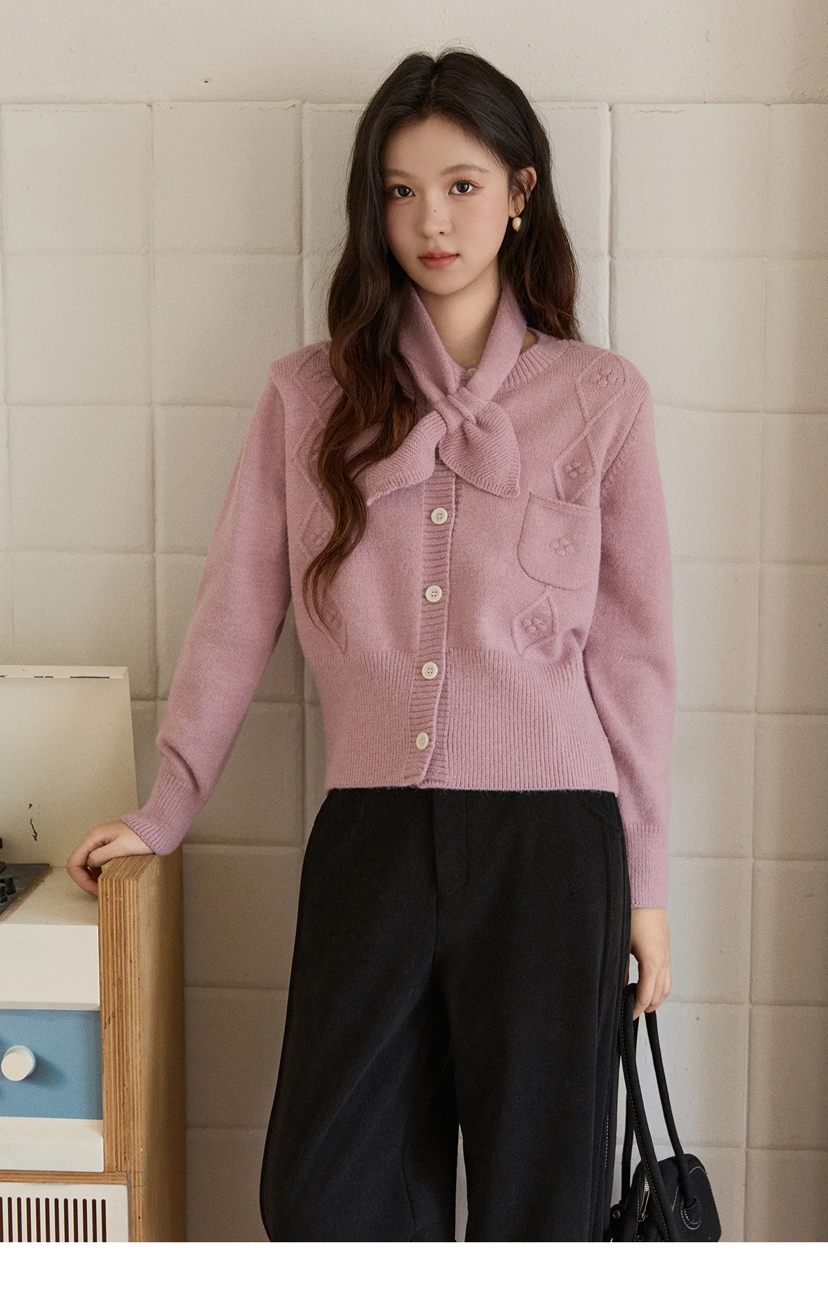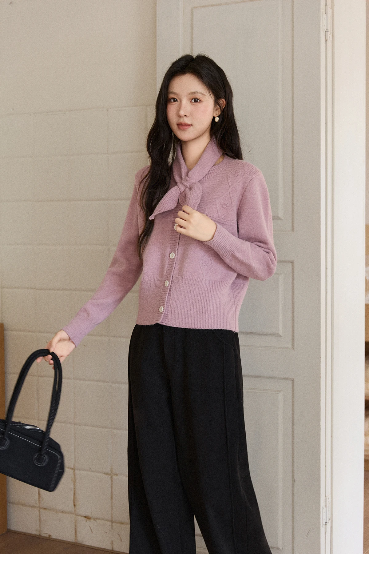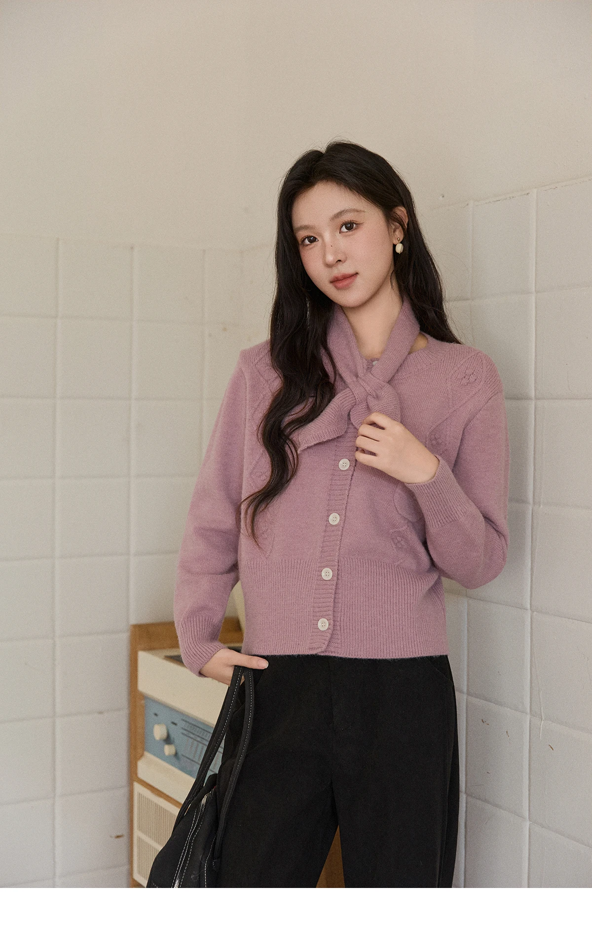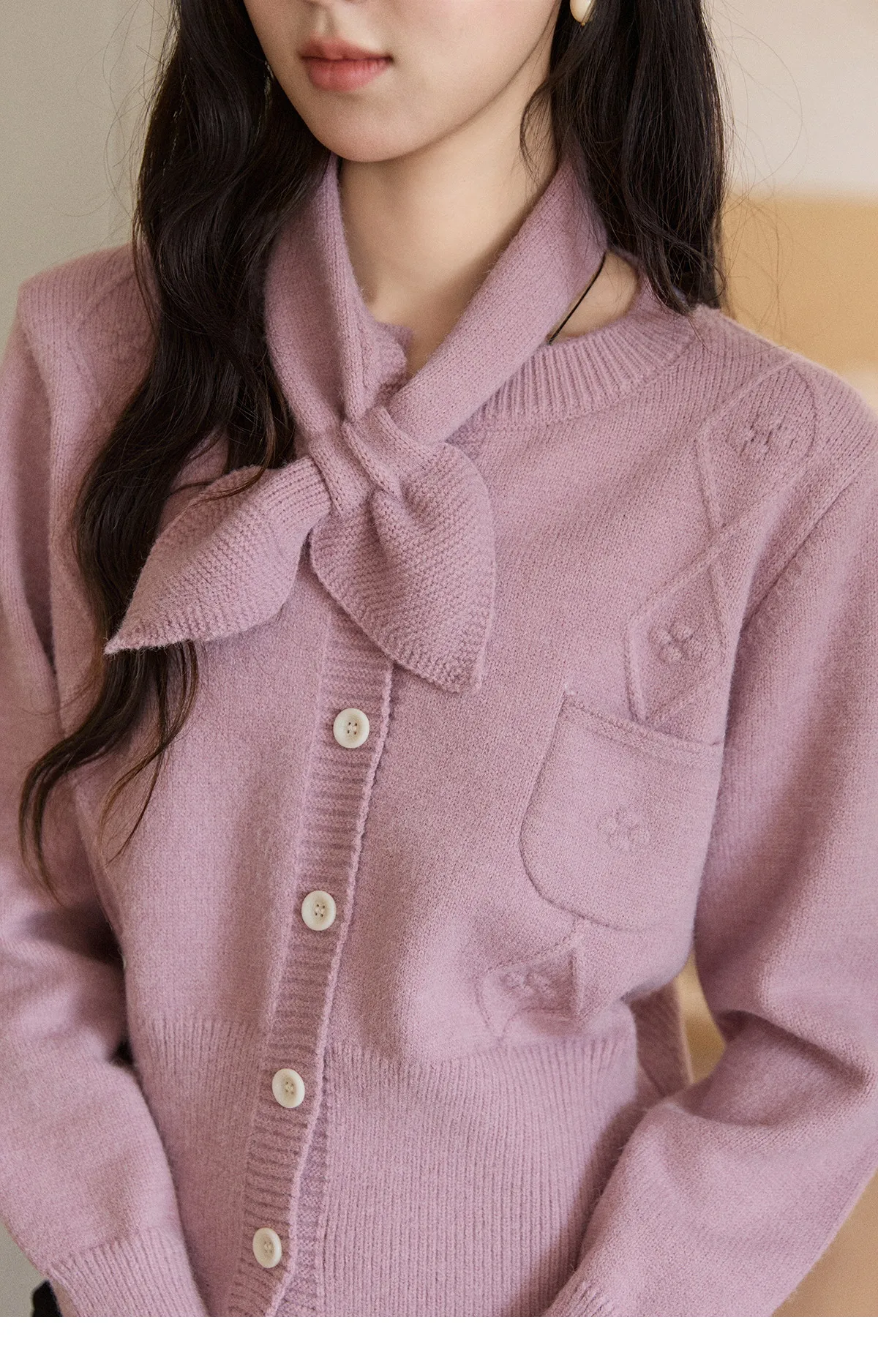 MISHOW Detachable Scarf Sweater for Women 2025 Autumn Winter Taro Purple Casual Warm Tops Soft Thick Knitted Sweater MXE91Z2825