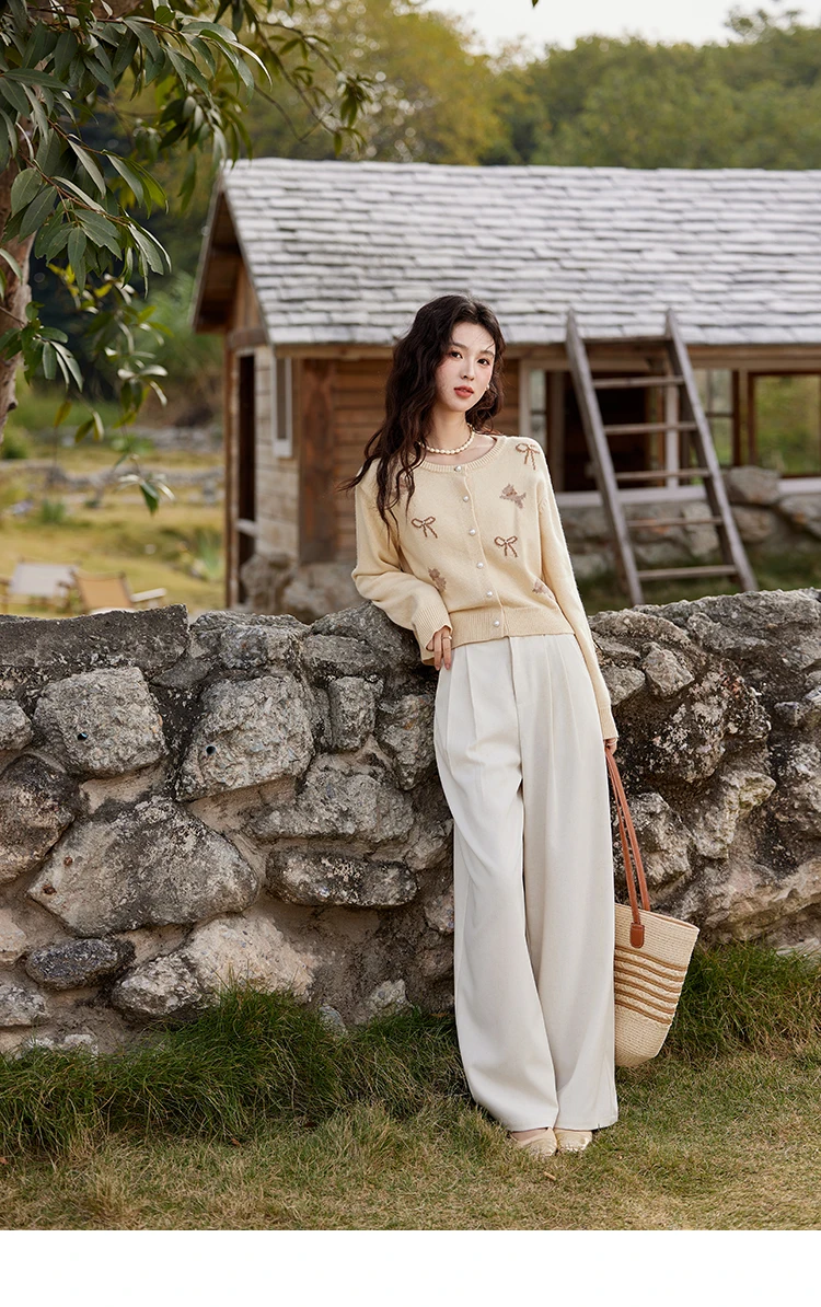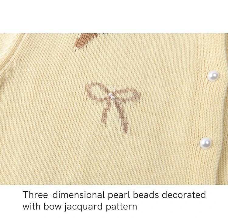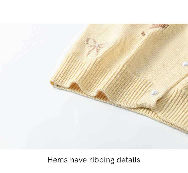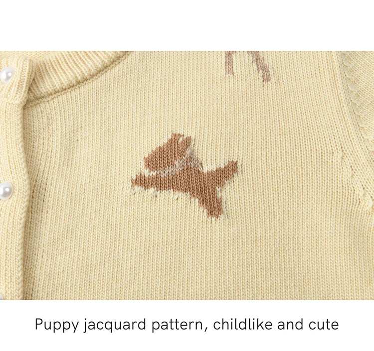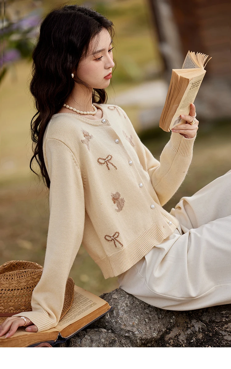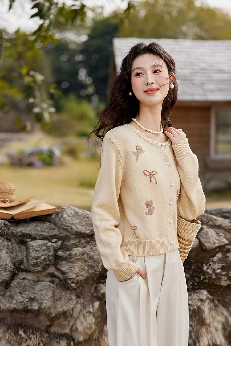 MISHOW Dog Bow Jacquard Knitted Sweater 2025 Spring Yellow Single Row Pearl Button Top Round Neck Elegant Sweaters MXE13Z1197