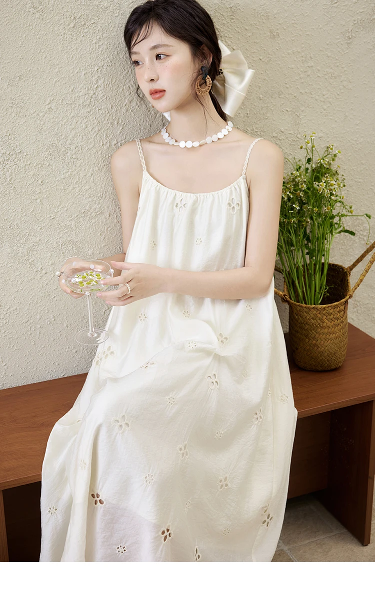 MISHOW Elegant Summer Camisole Dress Women 2025 New Sleeveless Hollow Embroidery Slim Dresses Female Fashion Romantic MXE15L2142