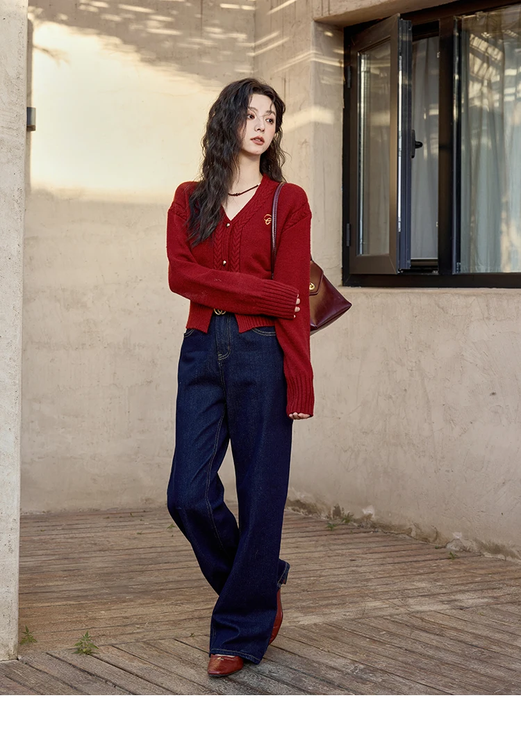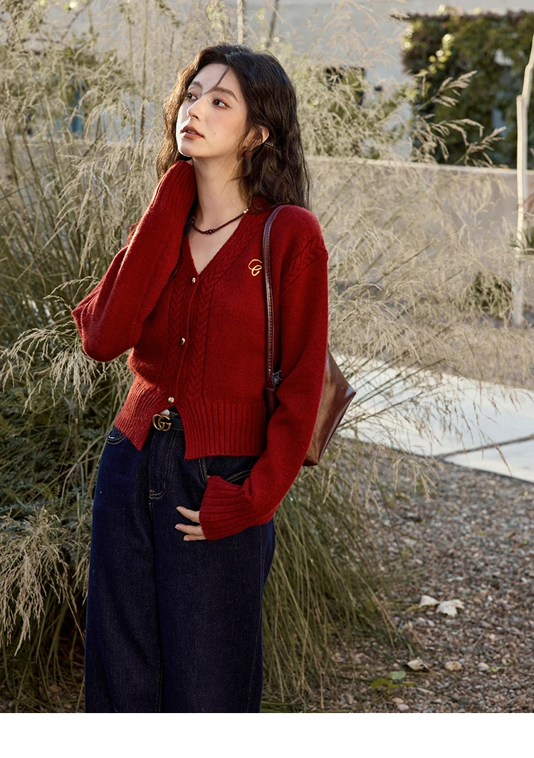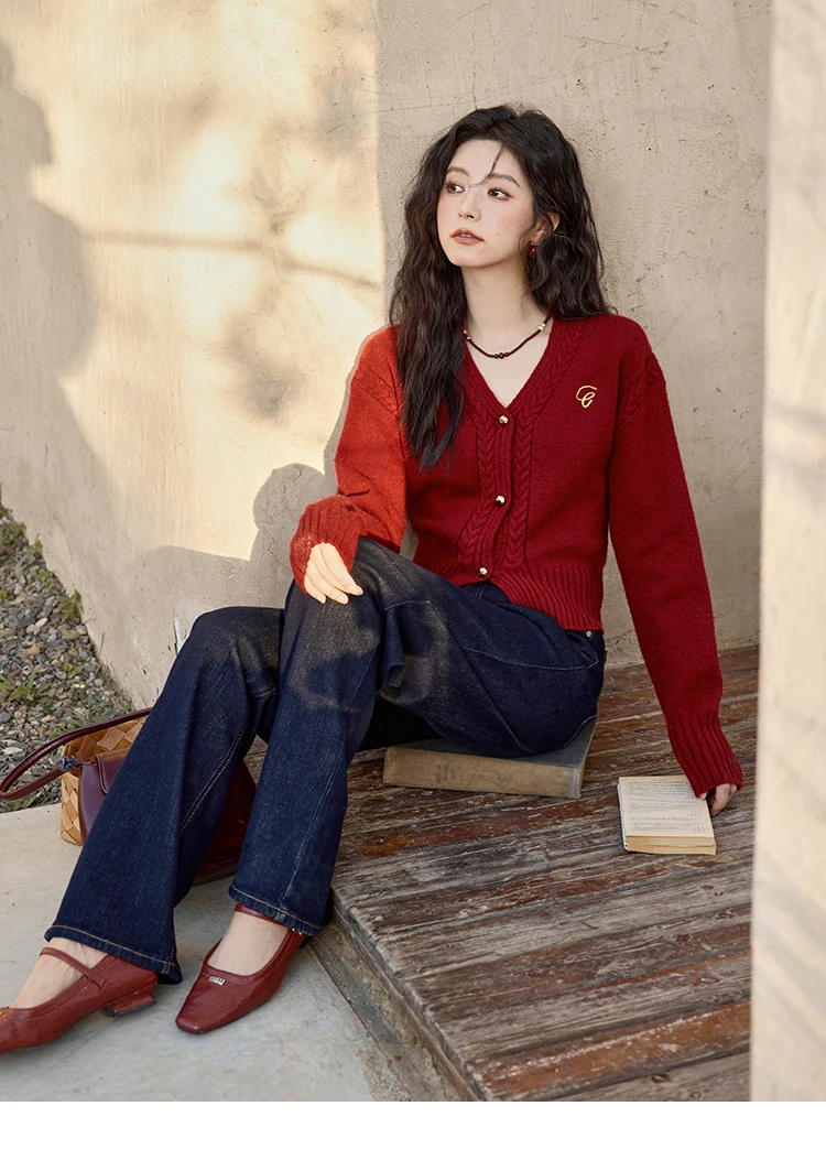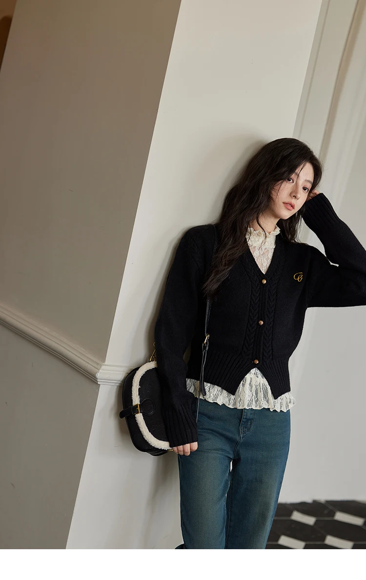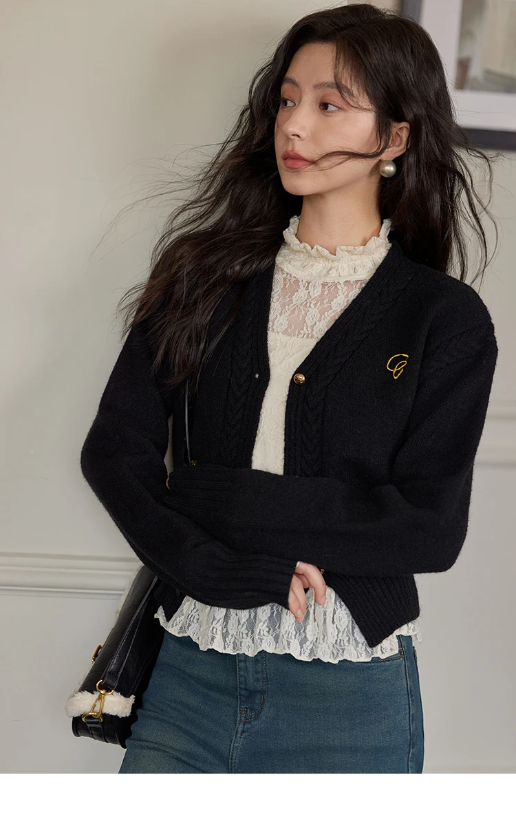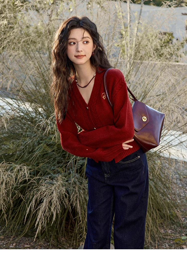 MISHOW Elegant V-neck Sweater Women's Long-sleeved Knitted Jacket 2025 Fall Winter New Korean Vintage Short Cardigan MXD48Z0848