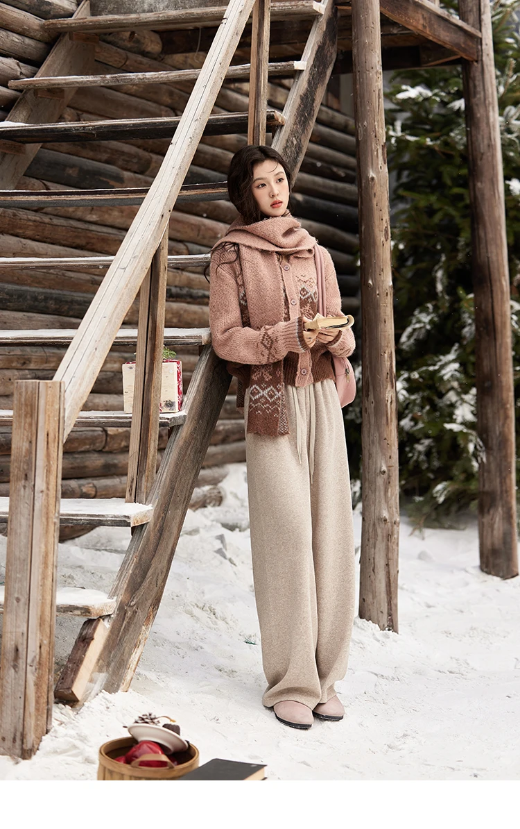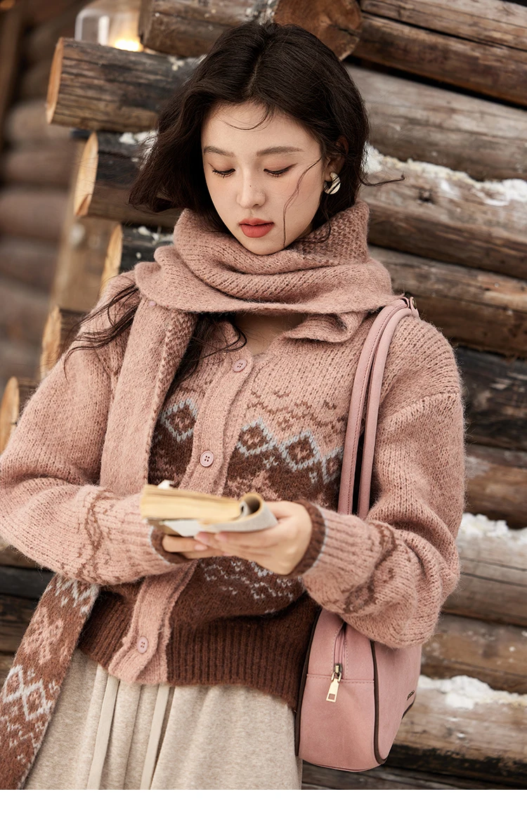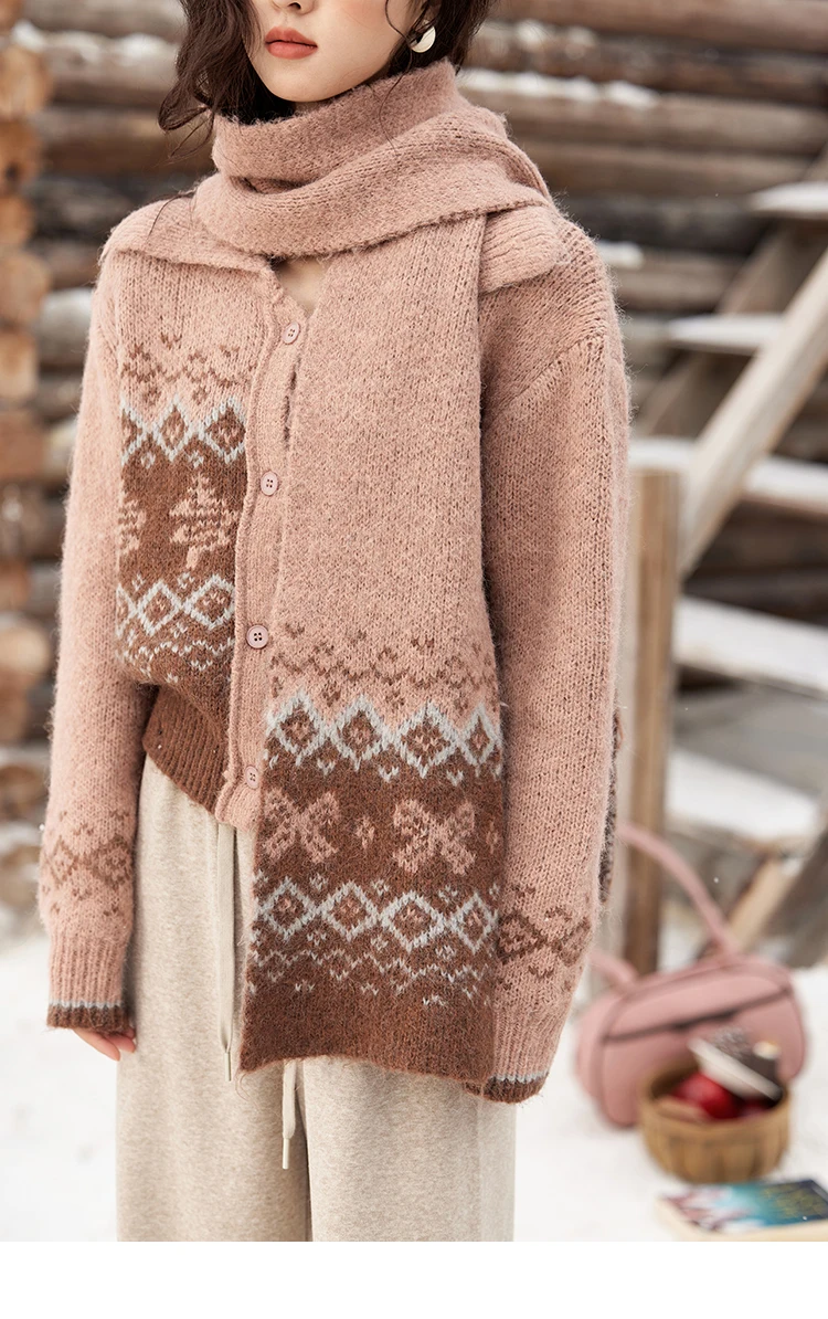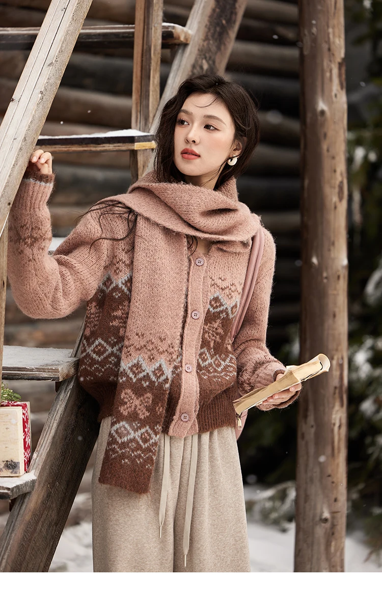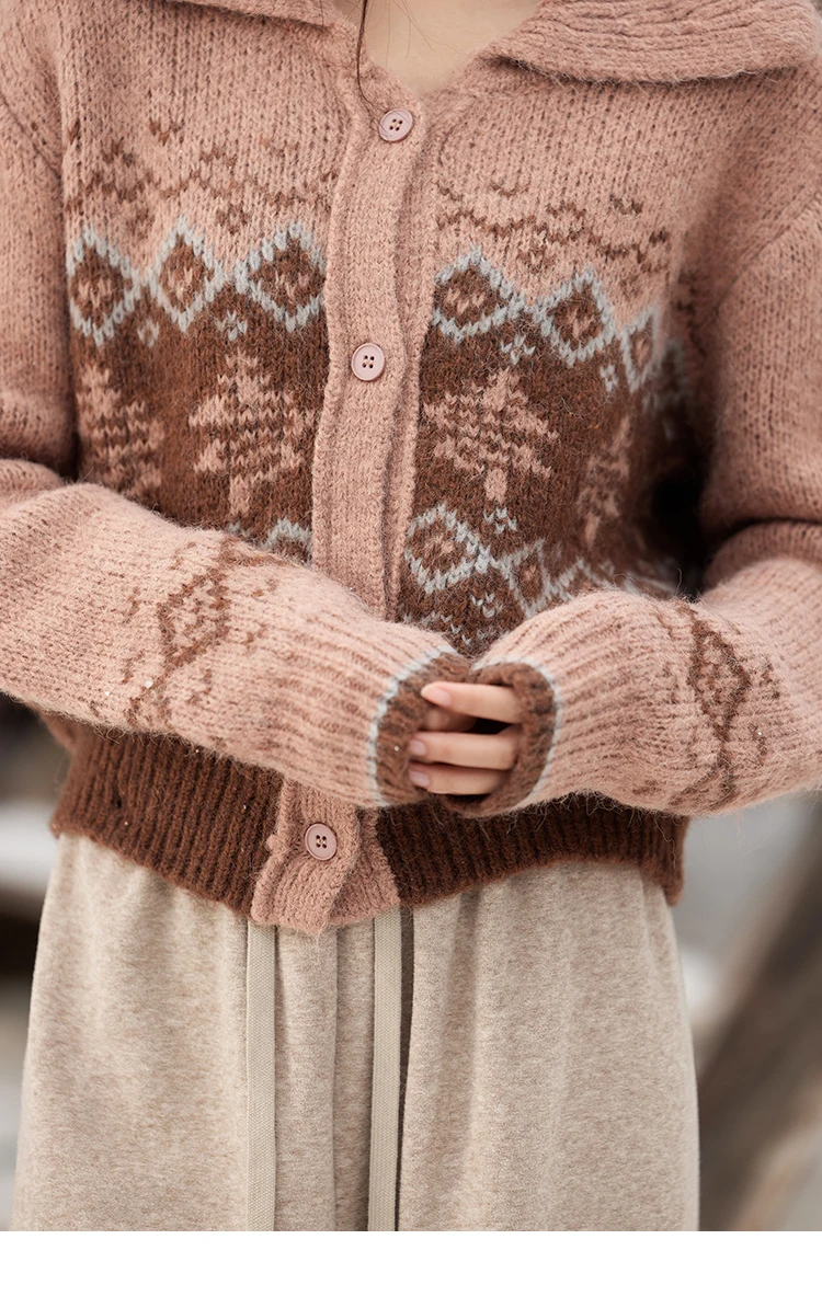 MISHOW Fair Isle Knitting Sweater Christmas Retro Cardigan Women Temperament Turn Down Collar Soft Warm Knitted Coat MXD58Z1036