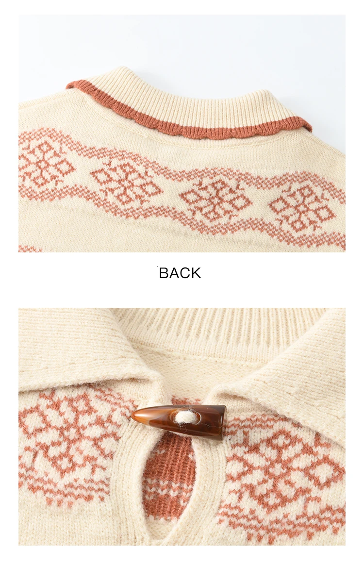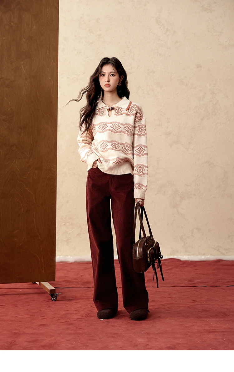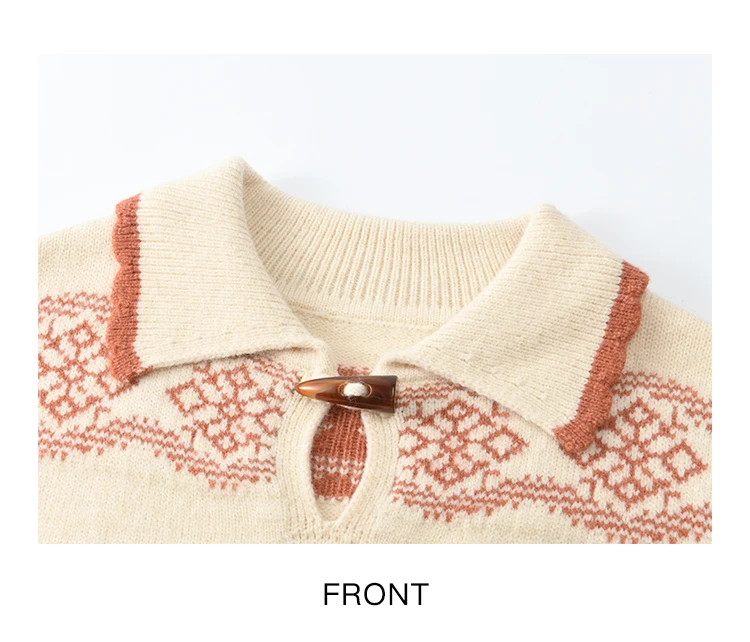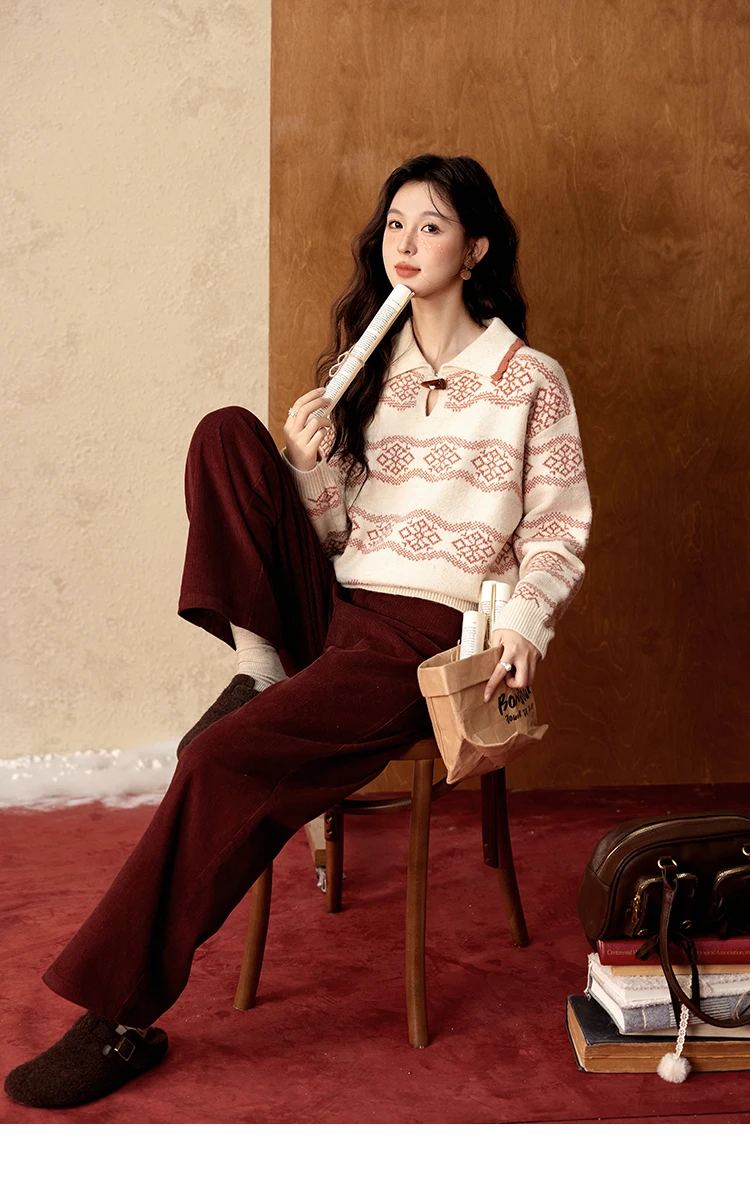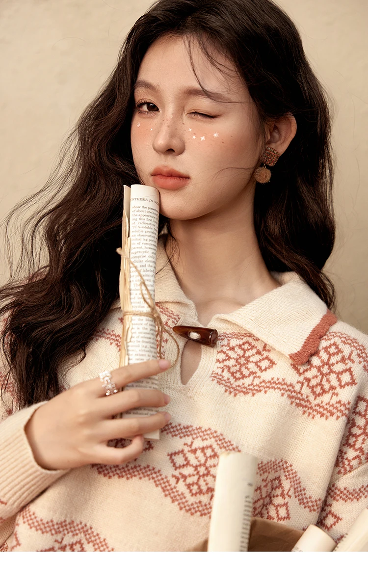 MISHOW Fair Isle Knitting Sweater Women Christmas Turn Down Collar Pullovers Versatile Soft Warm Office Lady Warm Top MXD59Z1042
