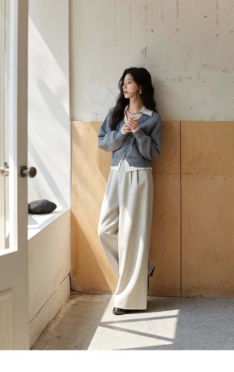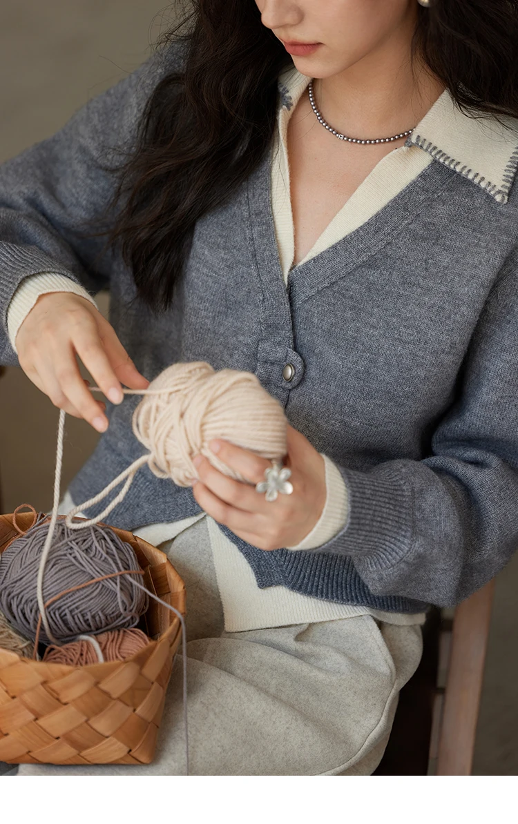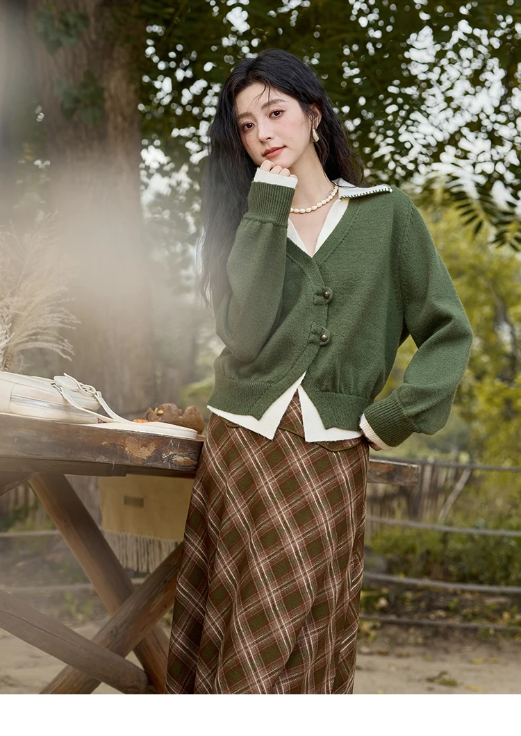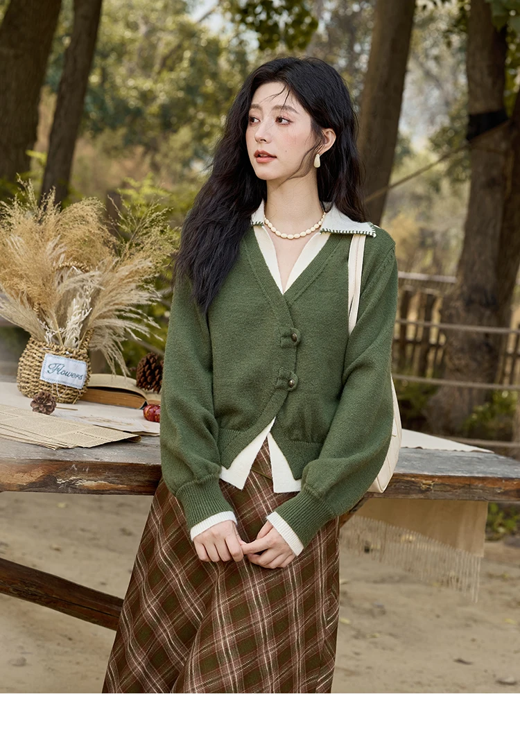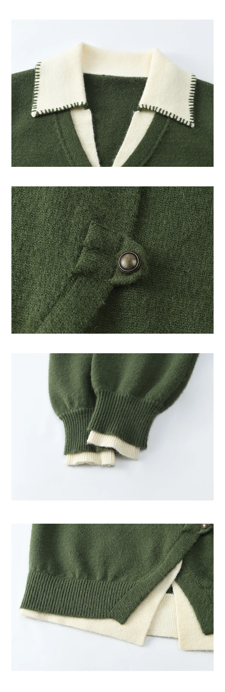 MISHOW Fake Two-piece Sweater Women Fashion Splicing Lapel Knitwear 2024 fall winter New Design Retro V-neck Cardigan MXD41Z0712