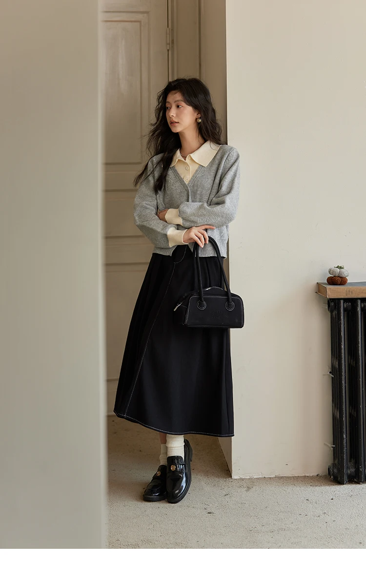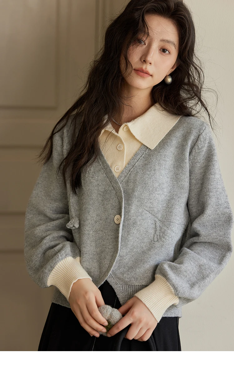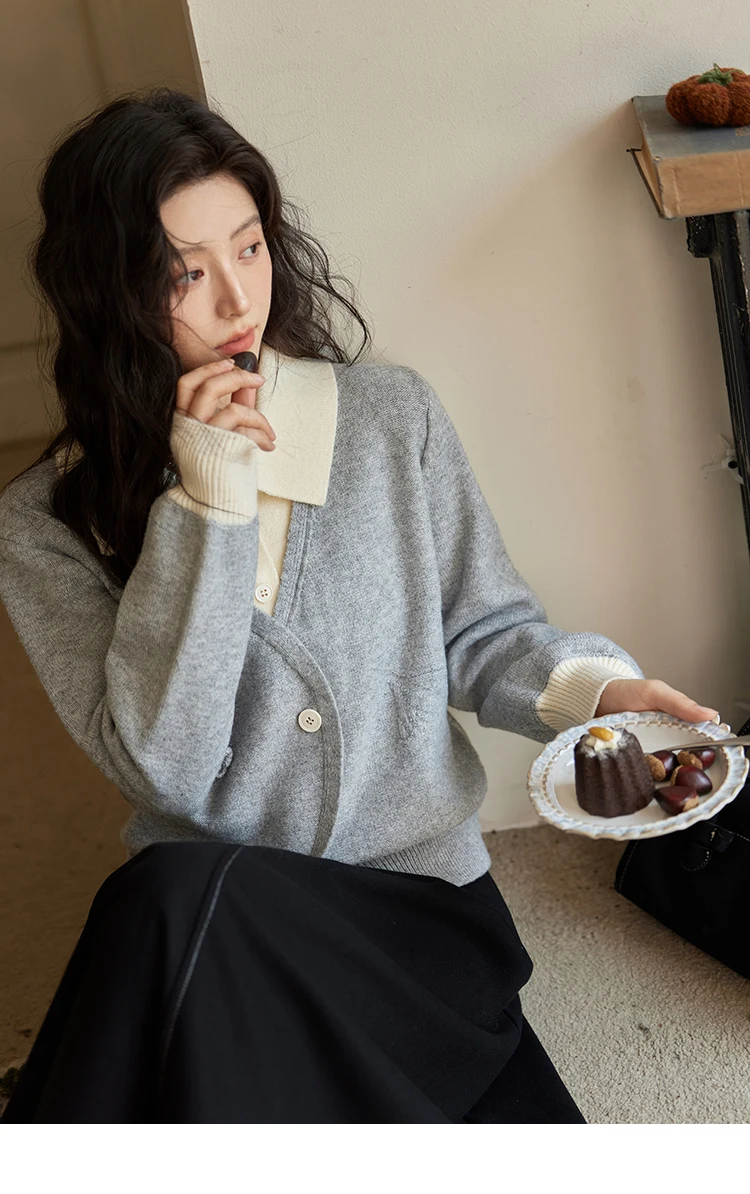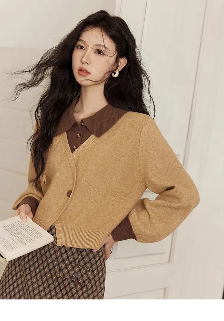 MISHOW Fake Two-piece Sweater Women French Retro Splicing Top 2024 Fall Winter New Korean Design Thin Knitwear MXD46Z0804