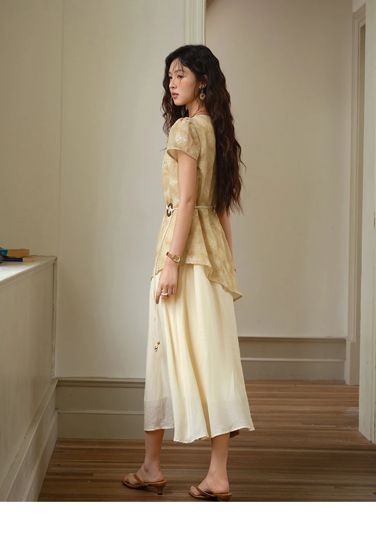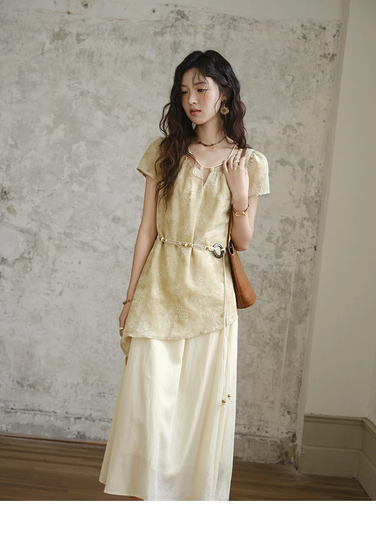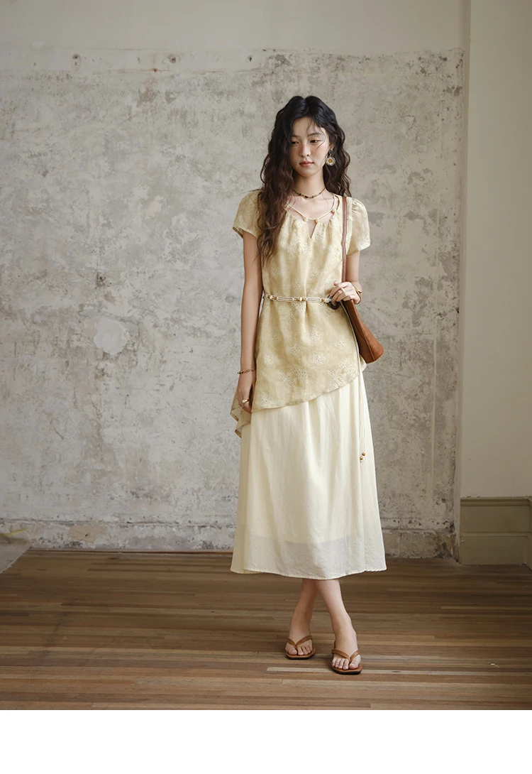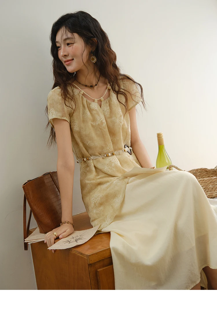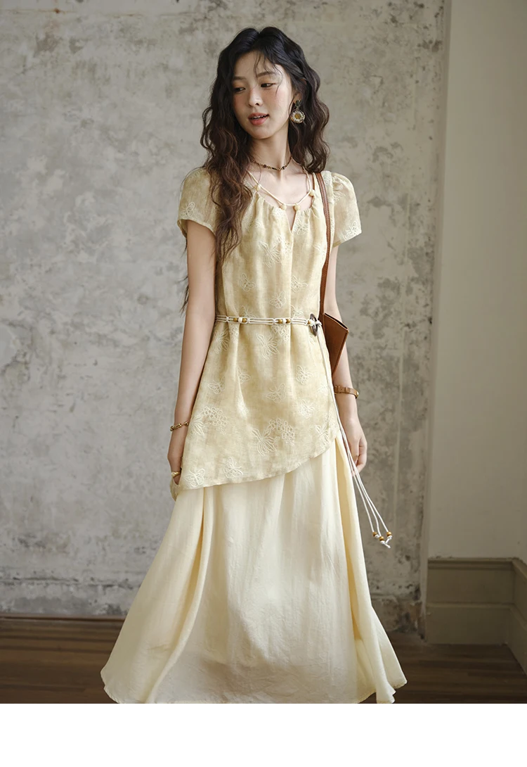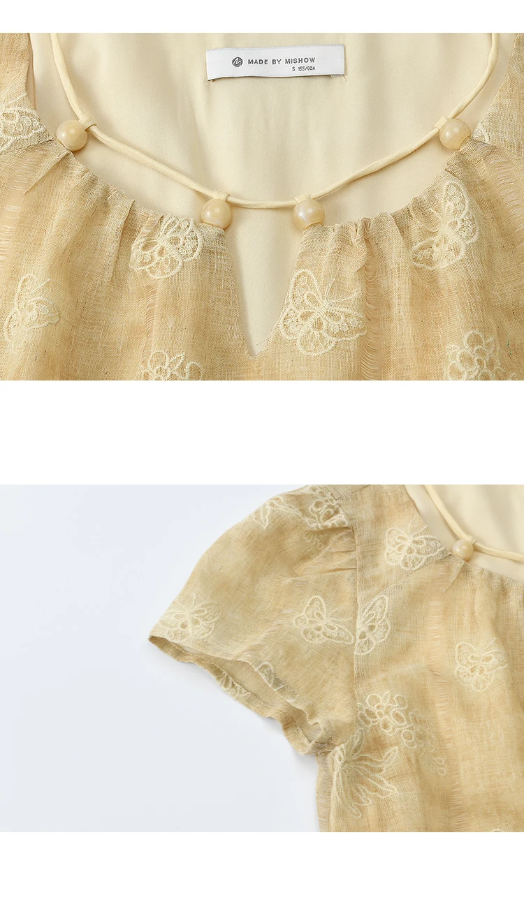 MISHOW Fashion Butterfly Embroidery Dress 2025 Summer Splicing Beaded Collar Comes with Retro Belt Dresses MXE36L2250