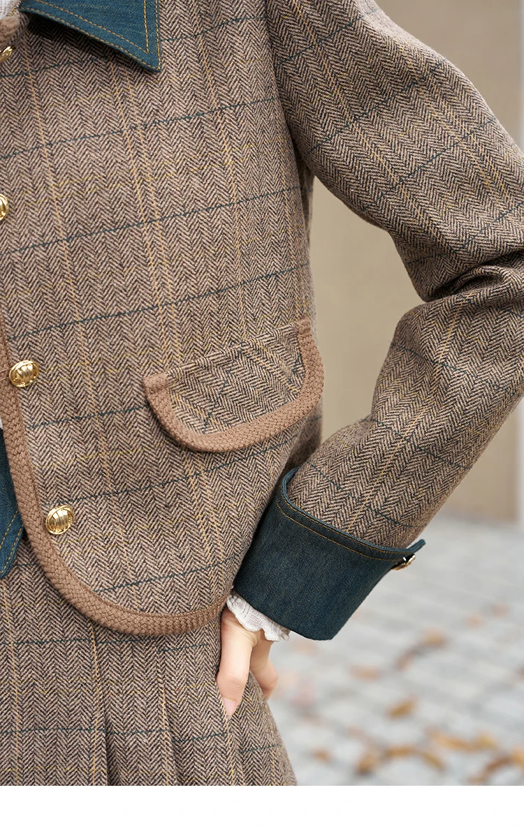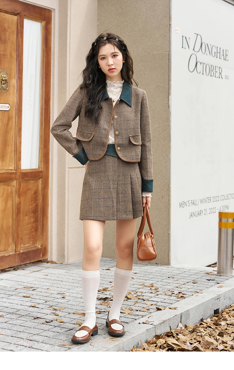 MISHOW Fashion Retro Plaid Coat Half pleated Skirt Separately 2024 Autumn Wool Jacket Retro Skirt Office Lady MXC47W0154