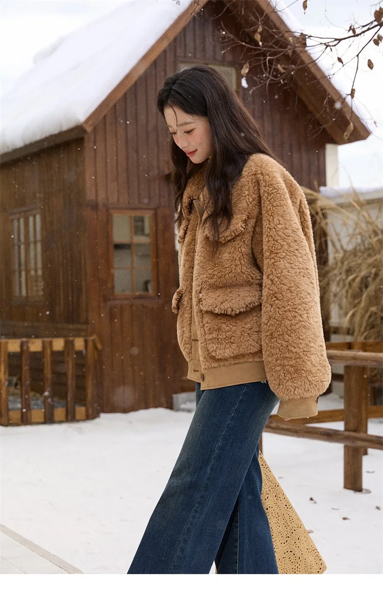 MISHOW Faux Lambskin Coat Women 2025 Winter Retro Turn-down Collar Brown Coat Office Lady Loose Warm Casual Jackets MXE89W0896