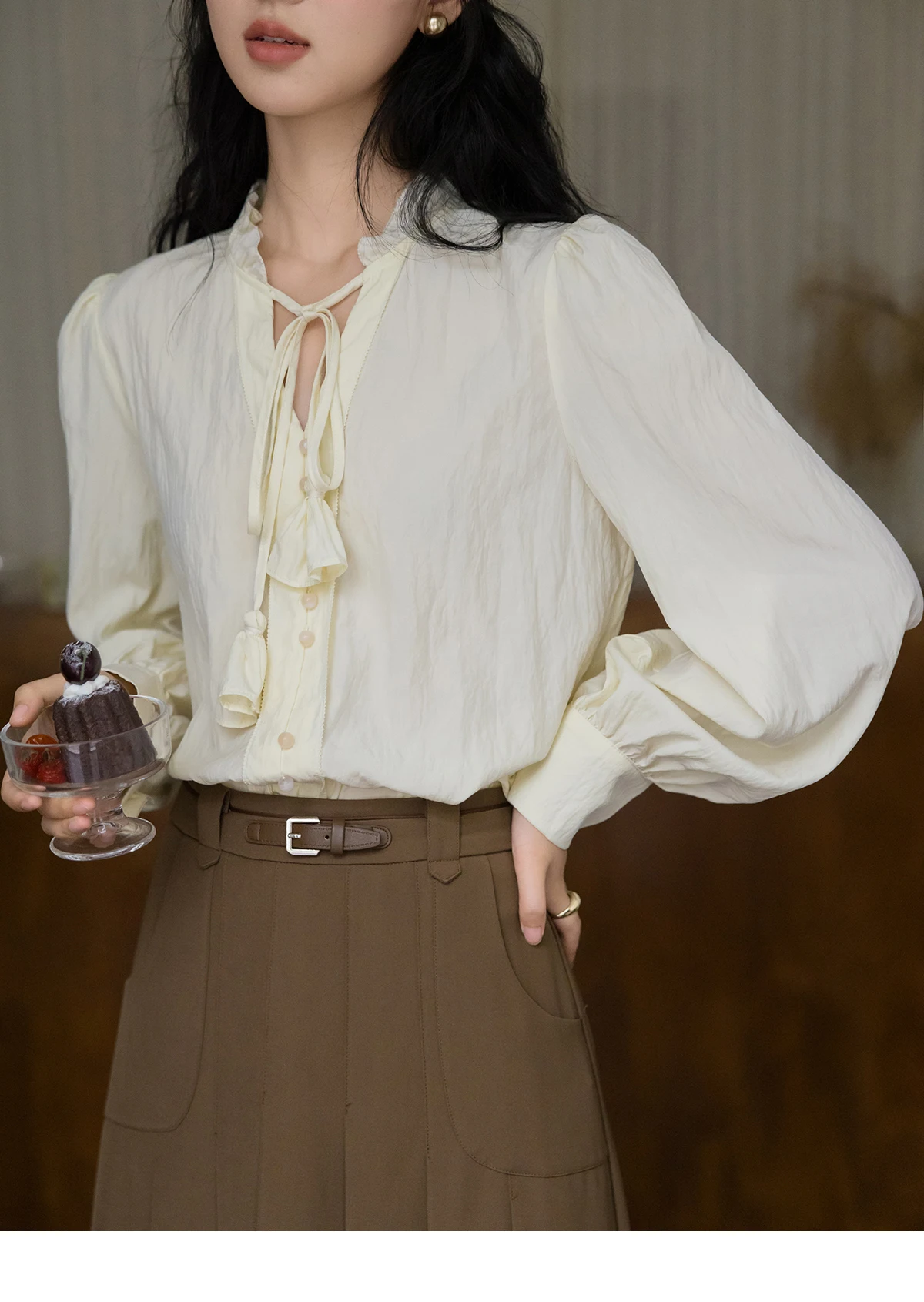 MISHOW Flower Bud Tie Lyocell Shirt for Women Autumn 2024 Temperament Solid Long Sleeve Pullover Tops Office Lady MXD42X1640
