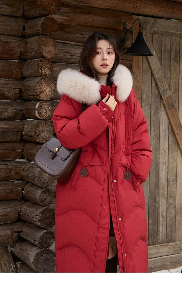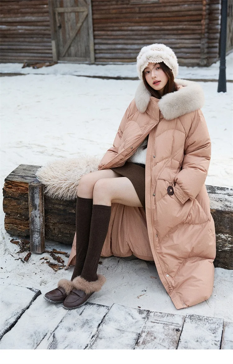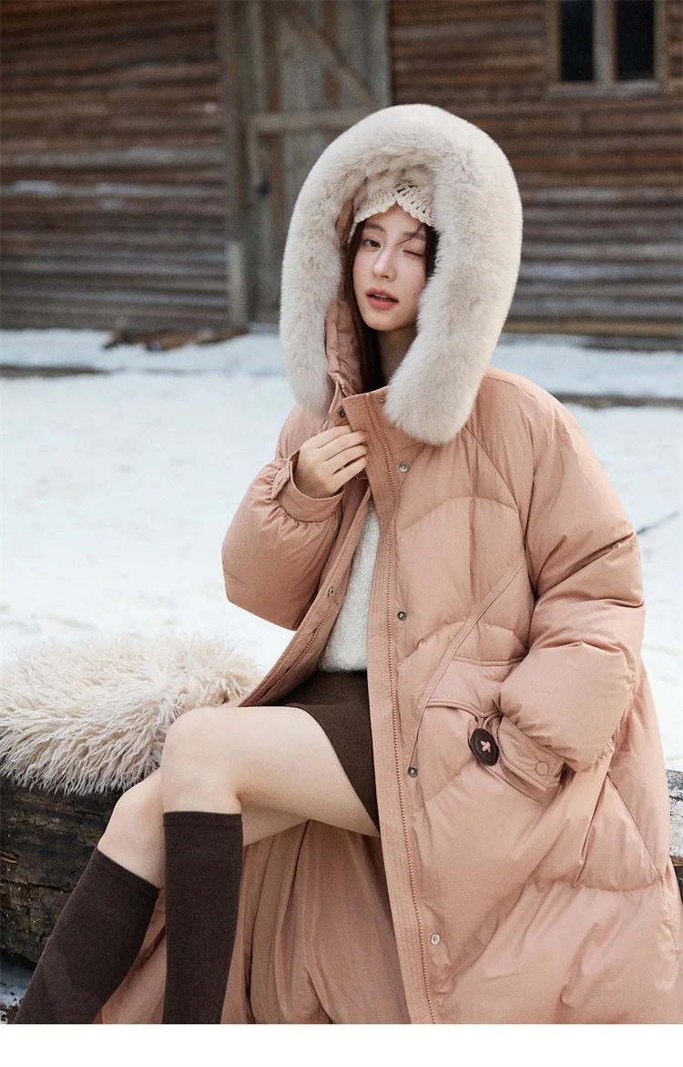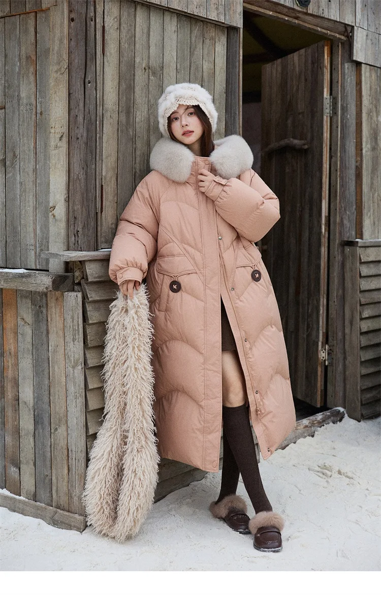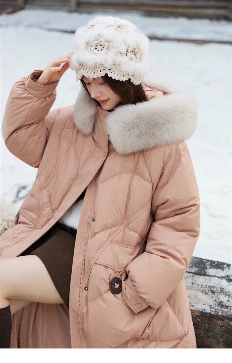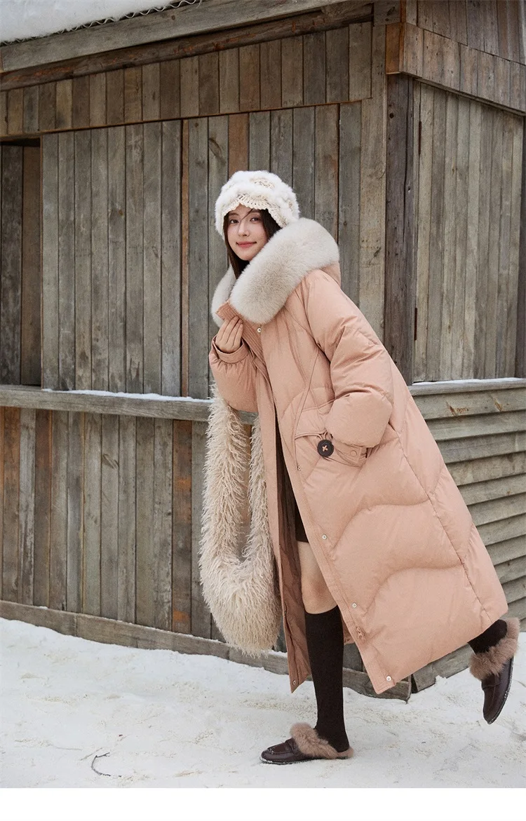 MISHOW Fox Fur Collar Down Jacket for Women 2025 Winter Fashion 90% White Duck Down Thickened Coat Warm Long Coat MXE51Y0082