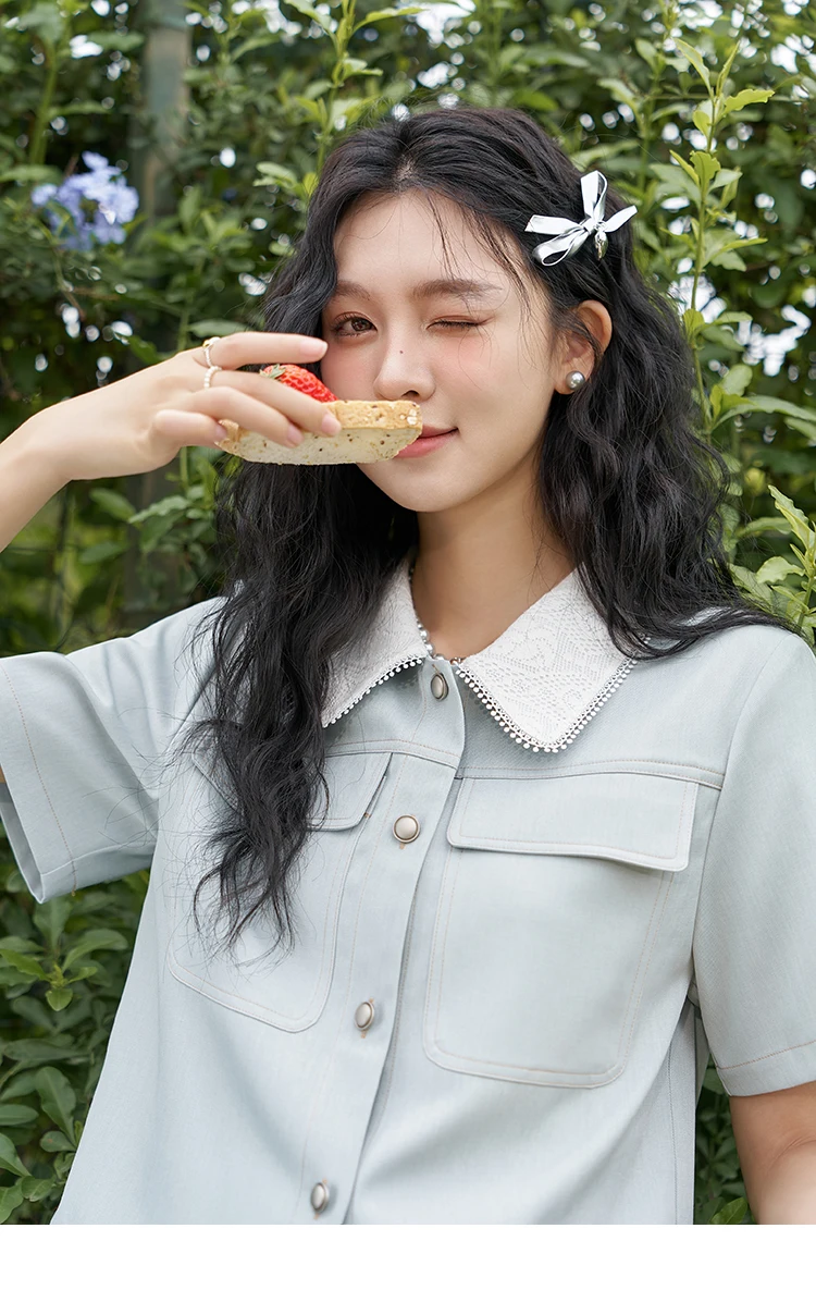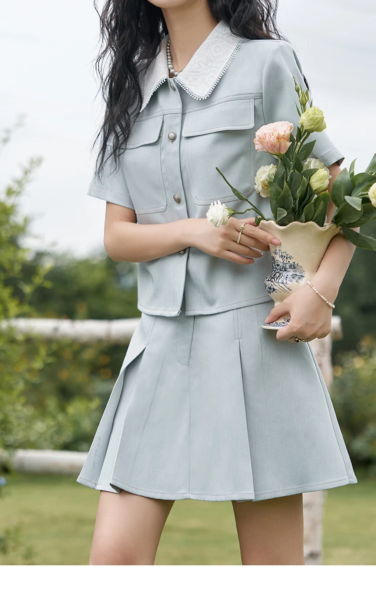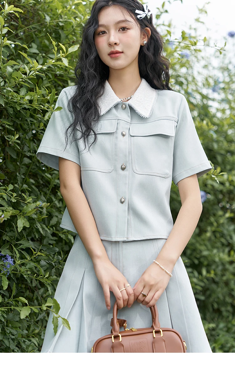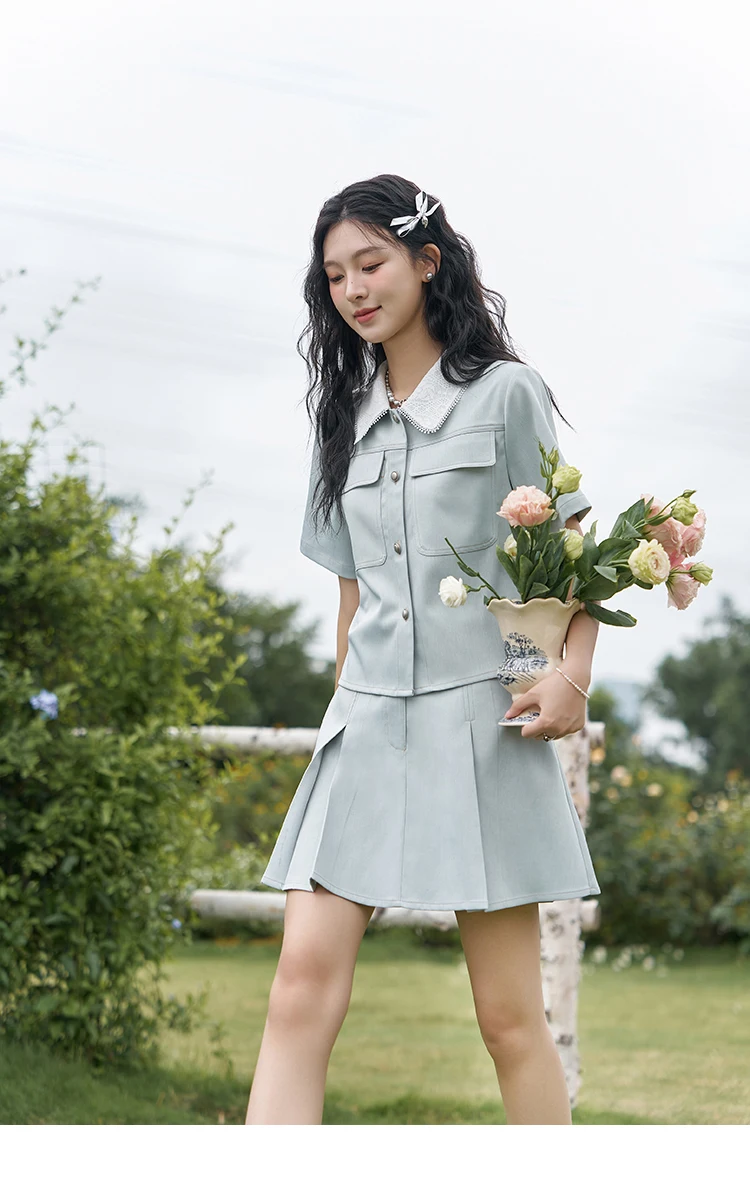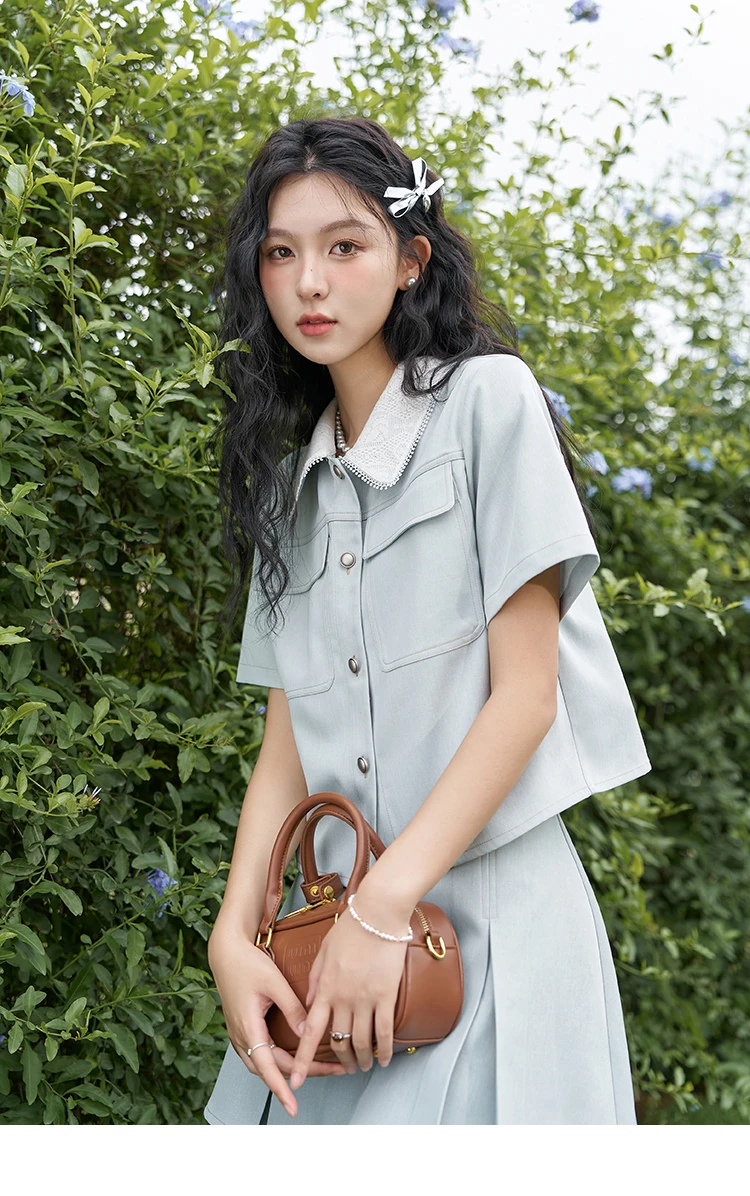 MISHOW French Fragrance Top Pleated Skirt Separately 2024 Lapel Neck Single Breasted Shirt High Waist A-line Skirts MXD24C0201