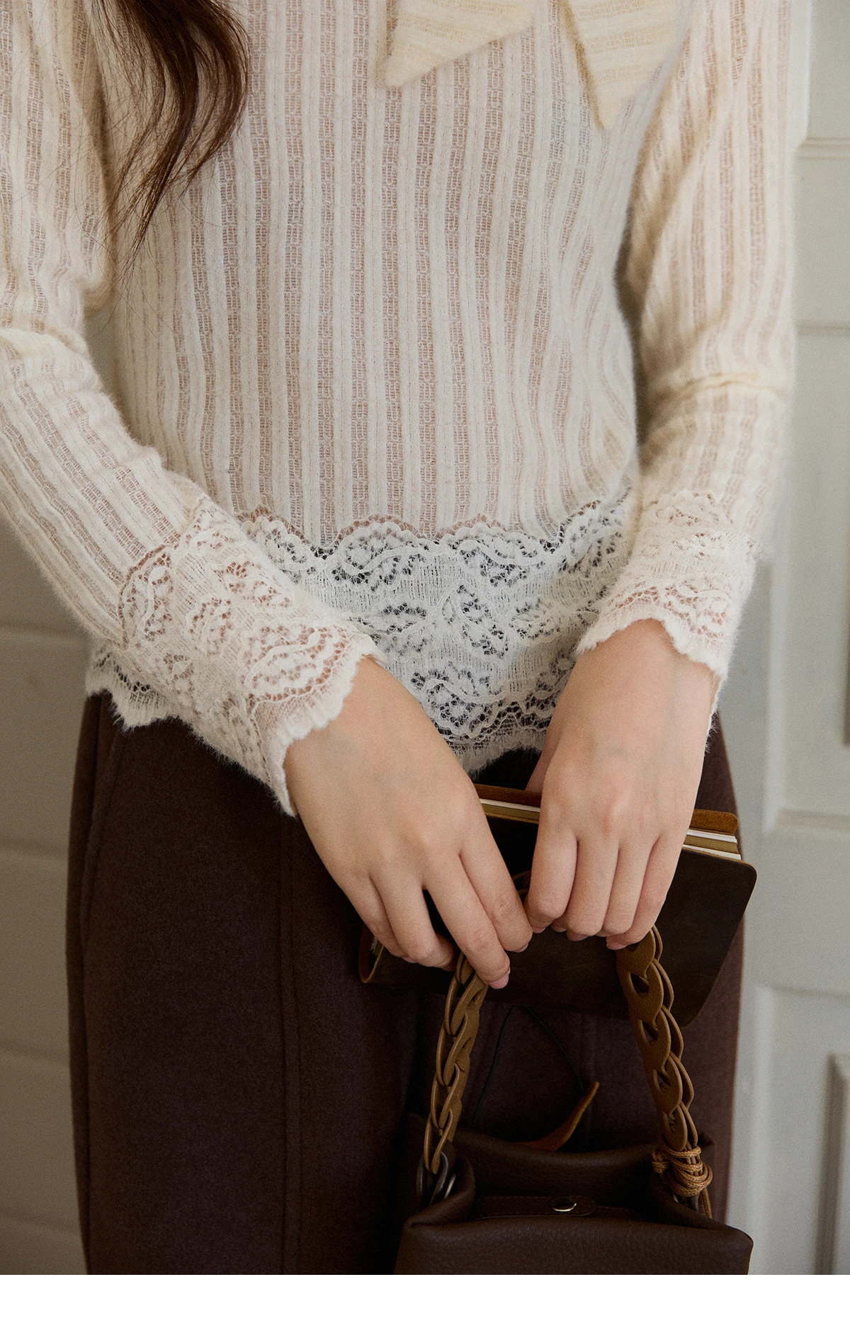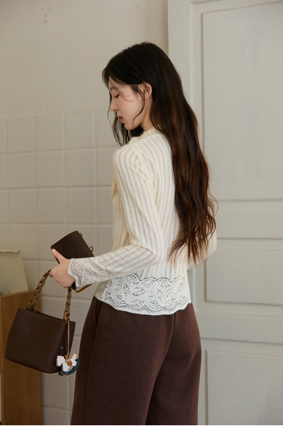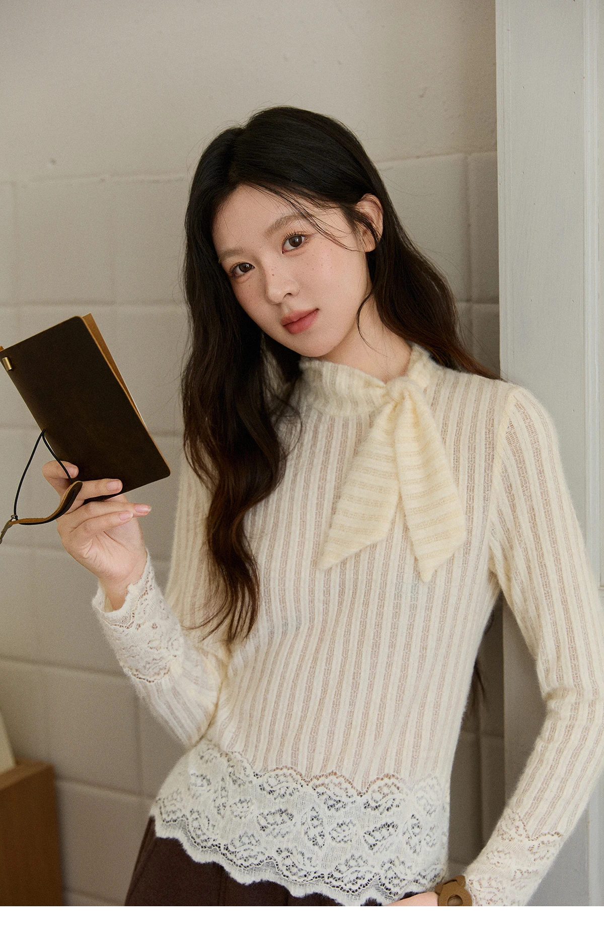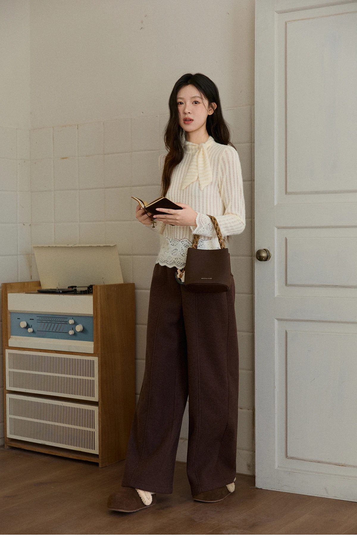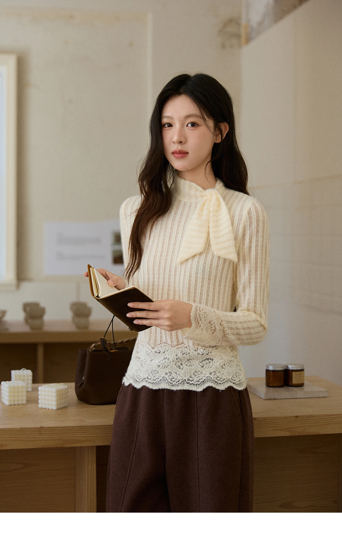 MISHOW French Lace-up Bottom Tops Women Autumn Winter 2025 Korean Vertical Stripe Knitted Top Thickened Interior Tops MXE92Z2797
