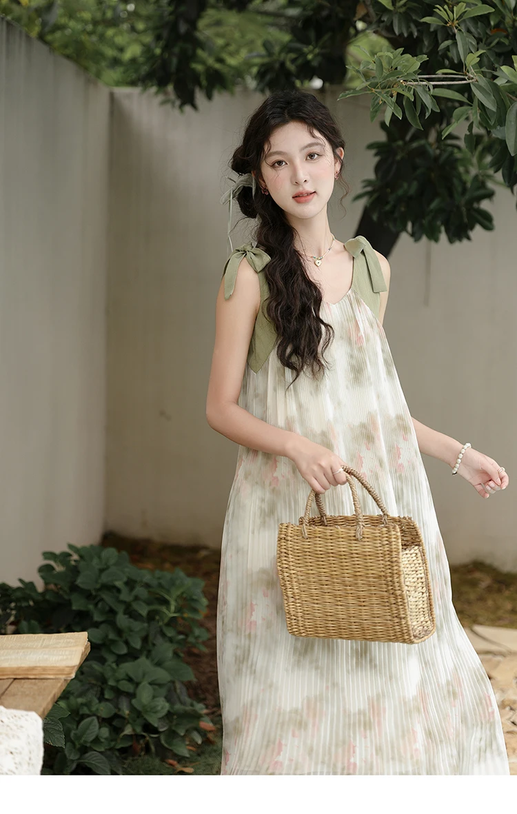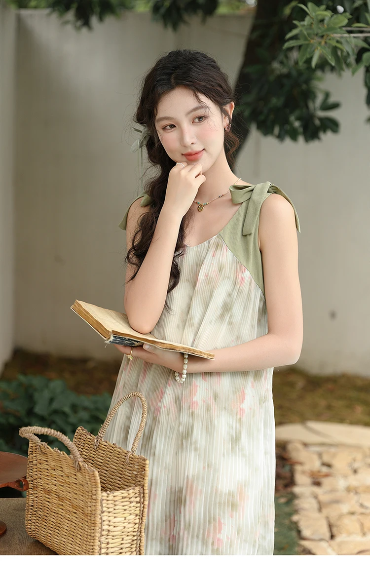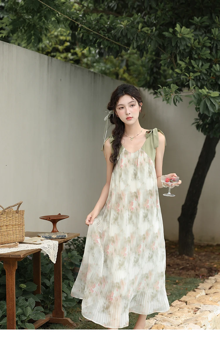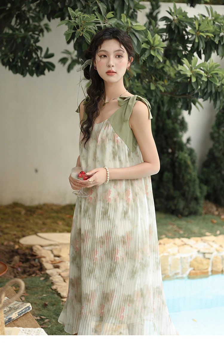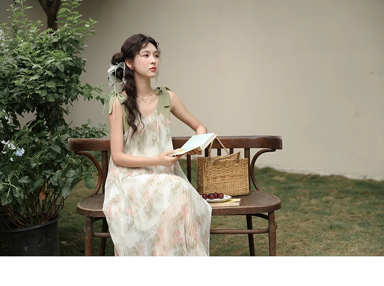 MISHOW French Lazy Suspender Floral Chiffon Dress 2024 Summer Fairy Seaside Vacation Dress V Neck A-LINE Dresses MXD28L1862