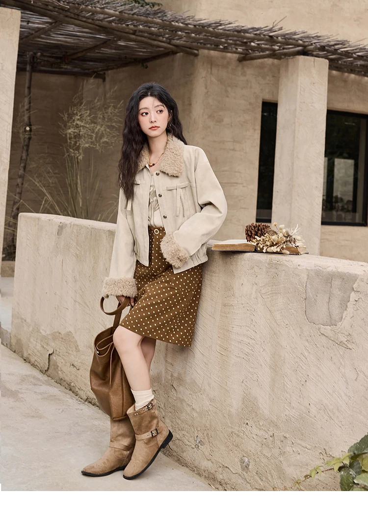 MISHOW French Polka Dot Skirt Women 2024 Winter American Retro High Waist A-line Skirt Symmetrical Side Pockets Skirt MXD34B0576