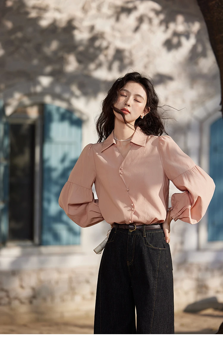 MISHOW French Polo Neck Long Sleeve Shirt Women's Spring Summer 2025 Elegant Sweet Cute Casual Tops Solid Shirts MXE11C0388