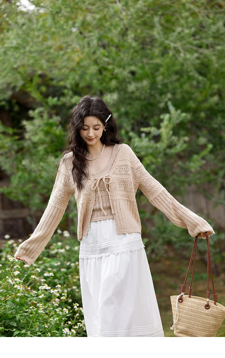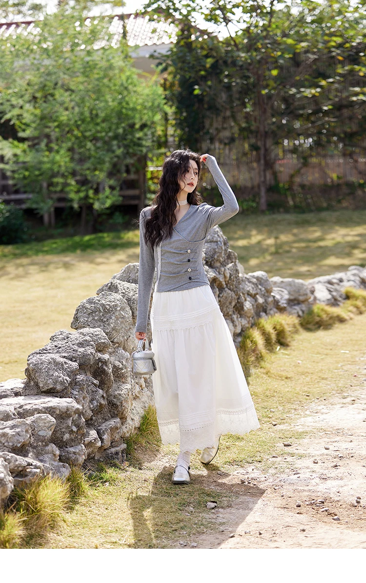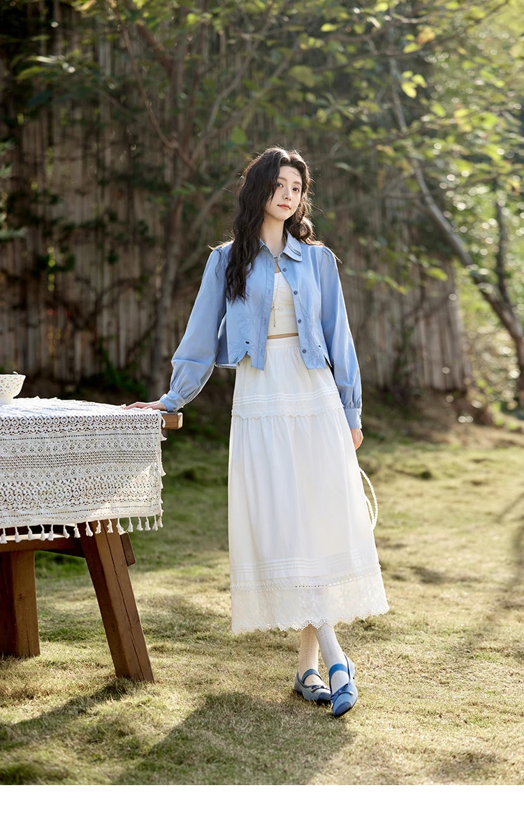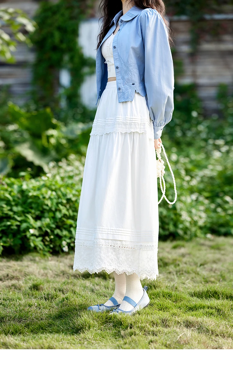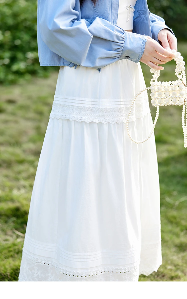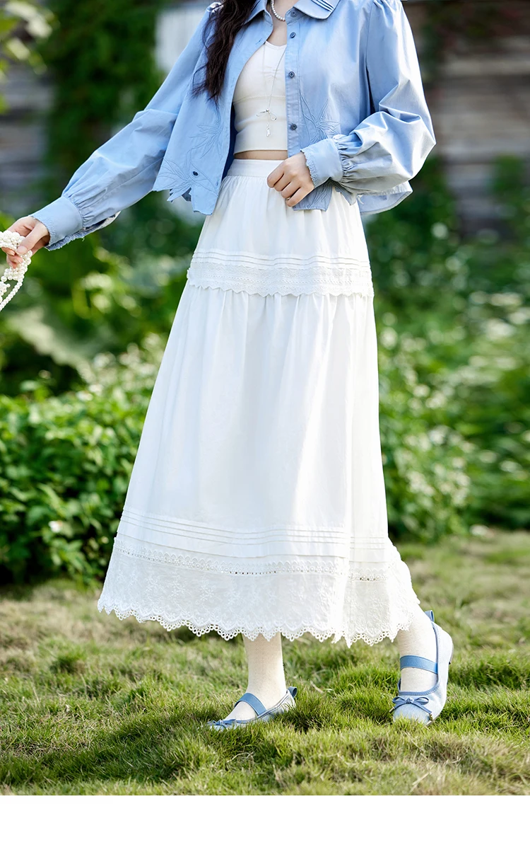 MISHOW French Retro Hollow Lace Skirt for Women Spring 2025 Elegnat 100 Cotton A-line Skirt High Waist Sweet Skirts MXE12B0643