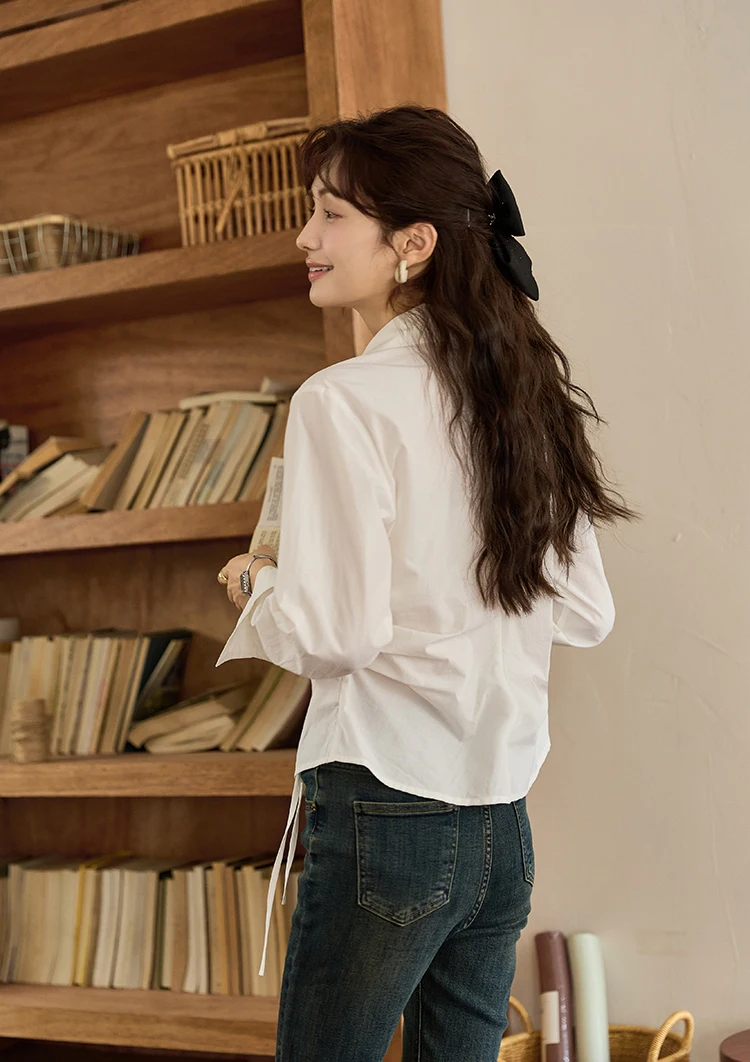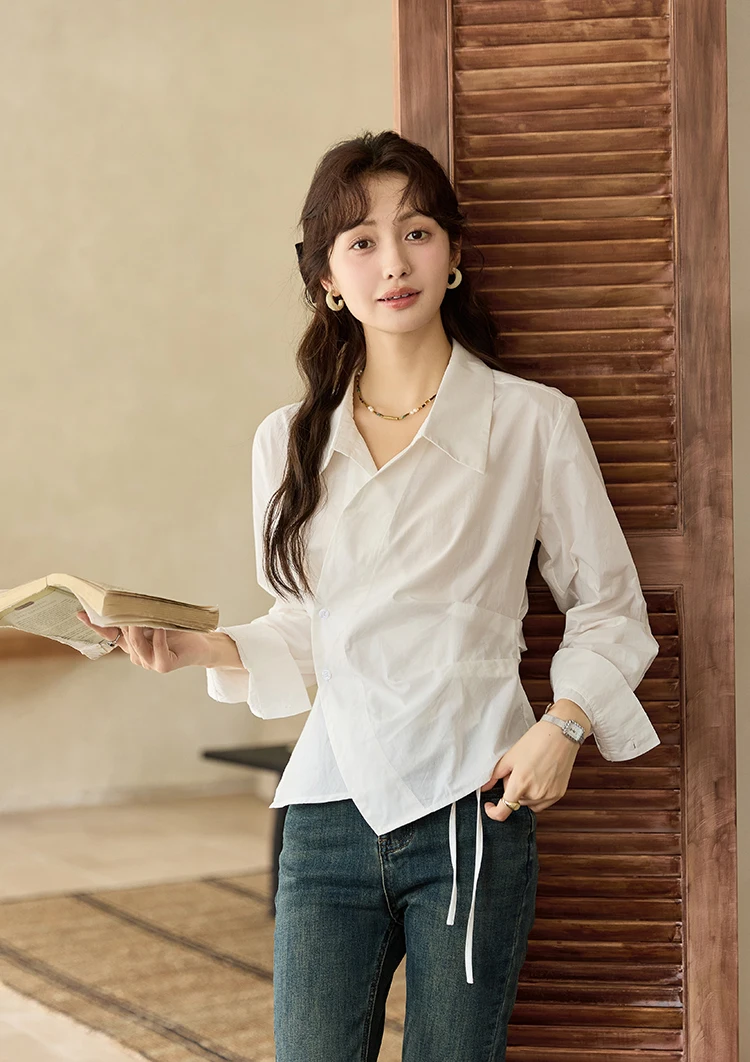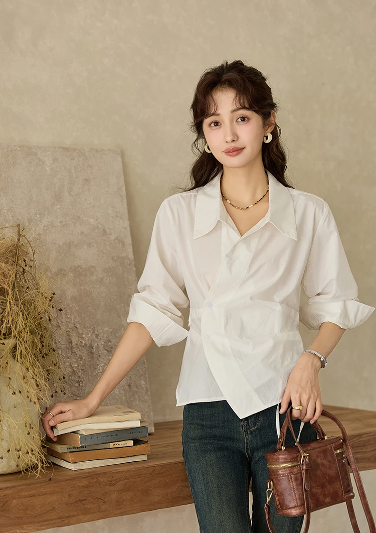 MISHOW French Side Placket Asymmetric Shirt Autumn 2025 Pleated Waist Lapel Shirts Long Sleeve Loose Commuter Tops MXD45C0357