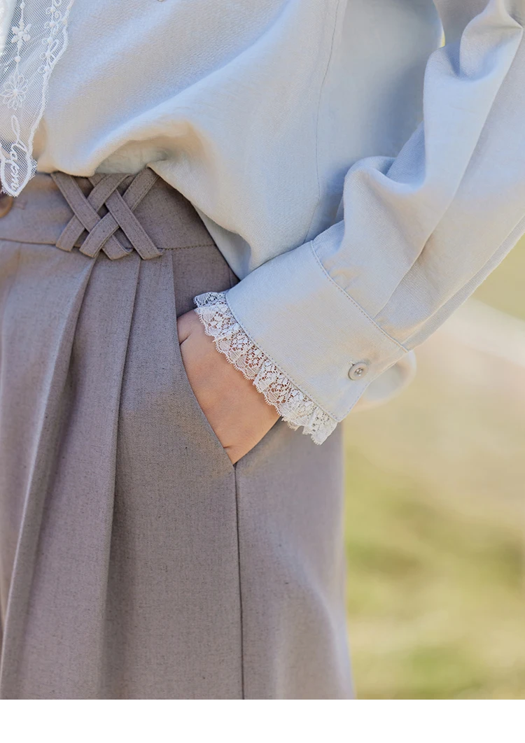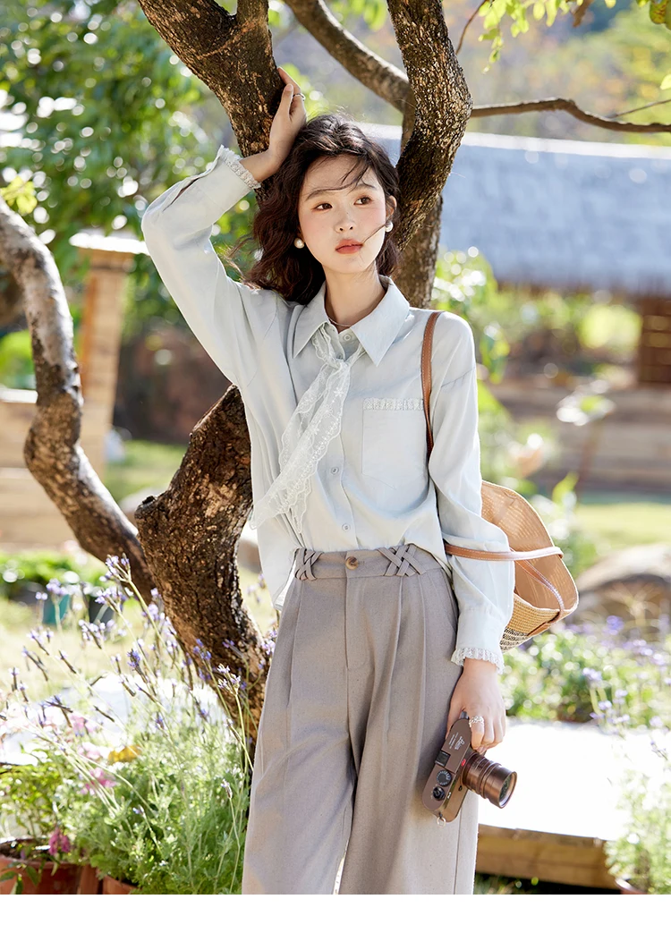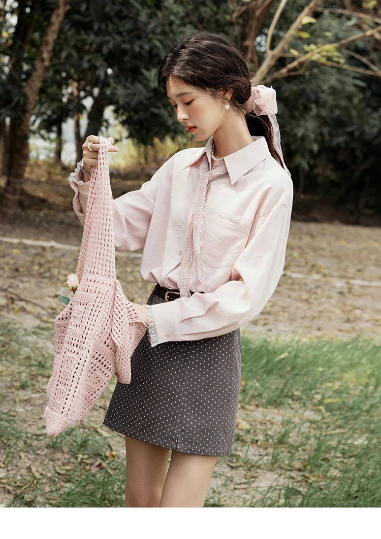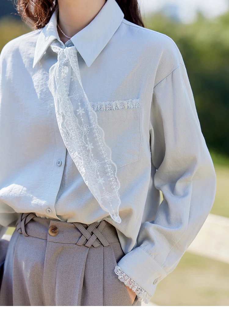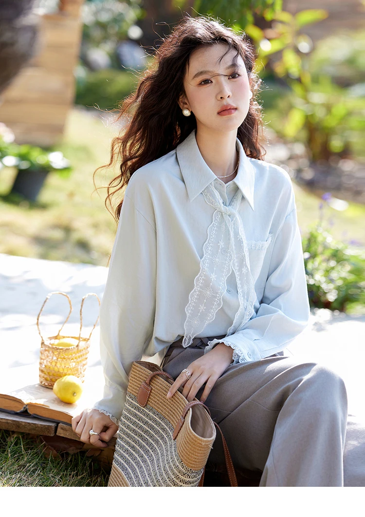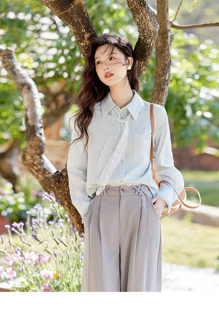 MISHOW French Spring Blouses Women 2025 New Long Sleeve Turn-down Collar Loose Shirts Female Fashion Lace Casual Tops MXE16C0760