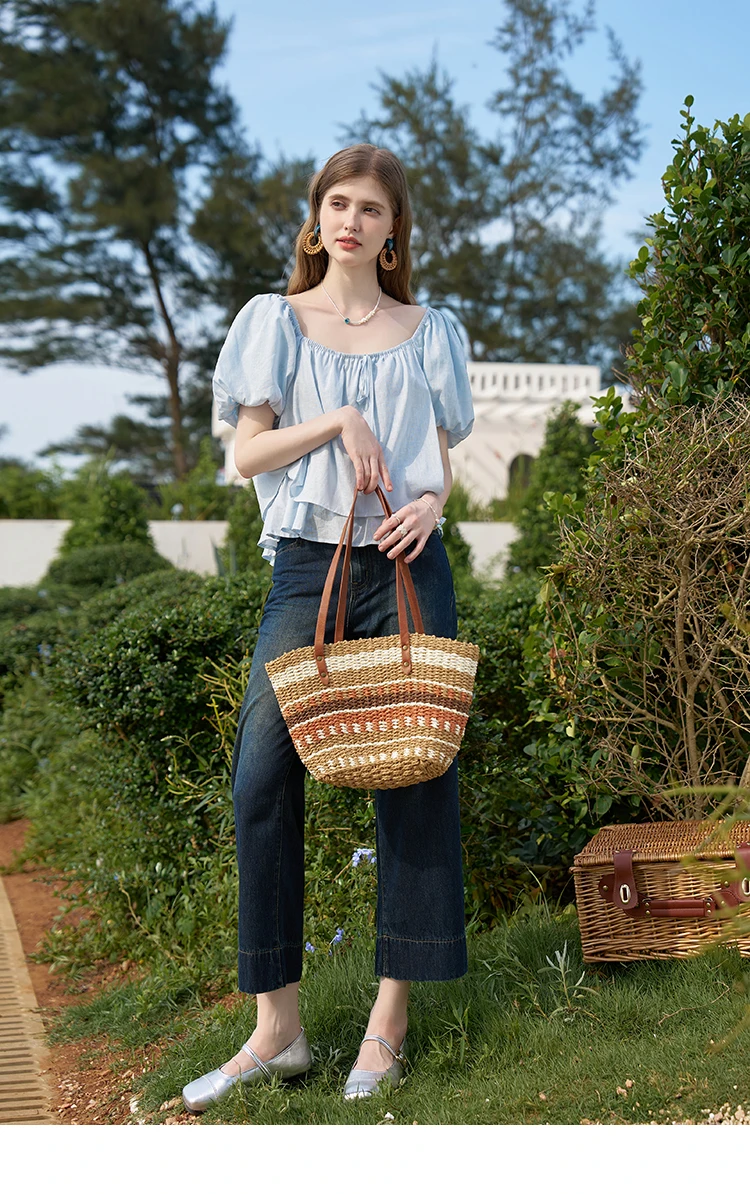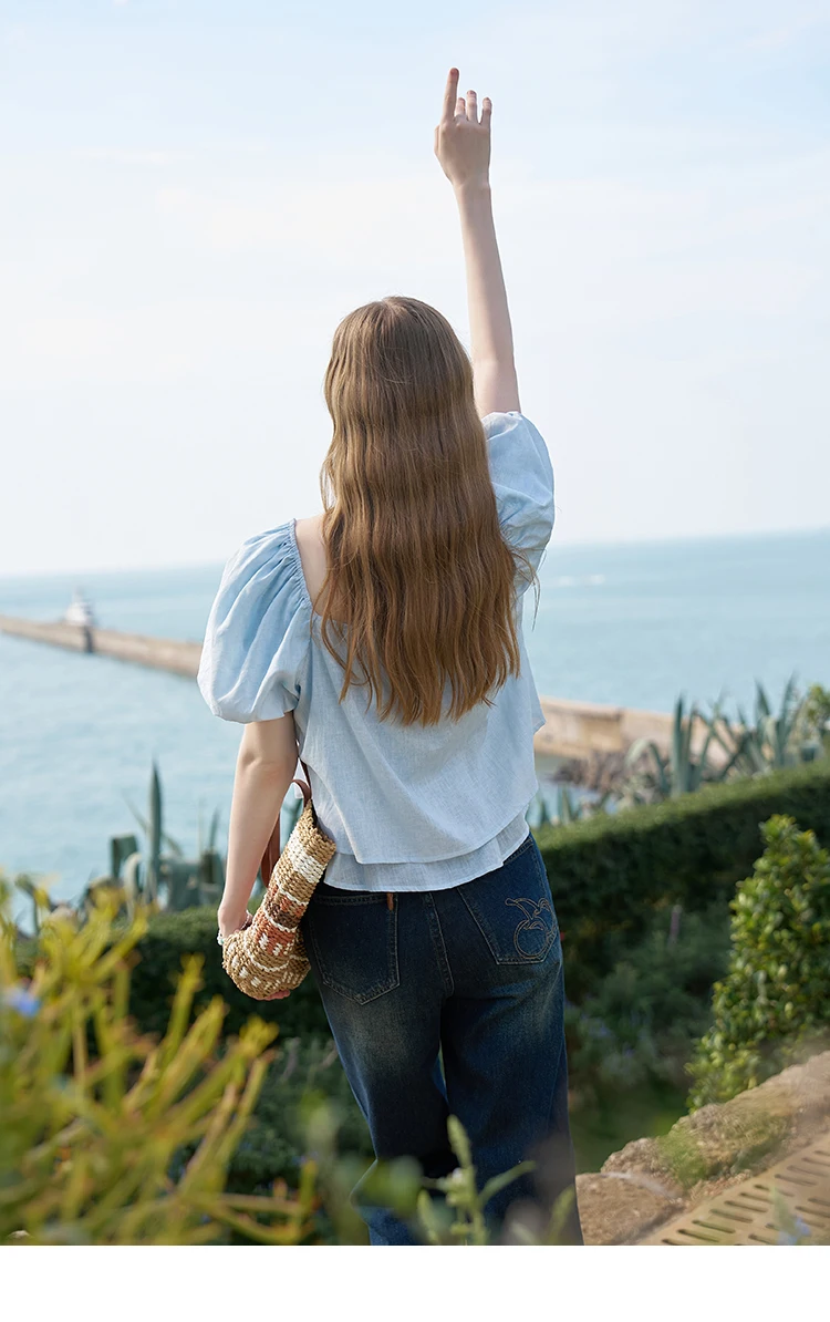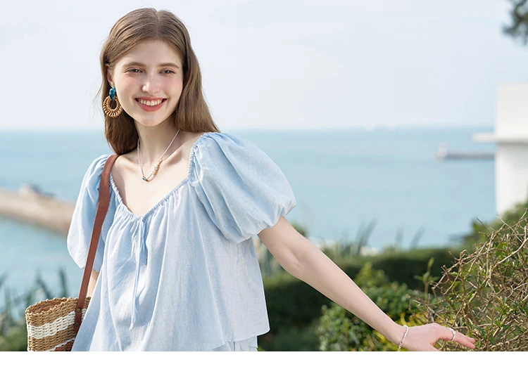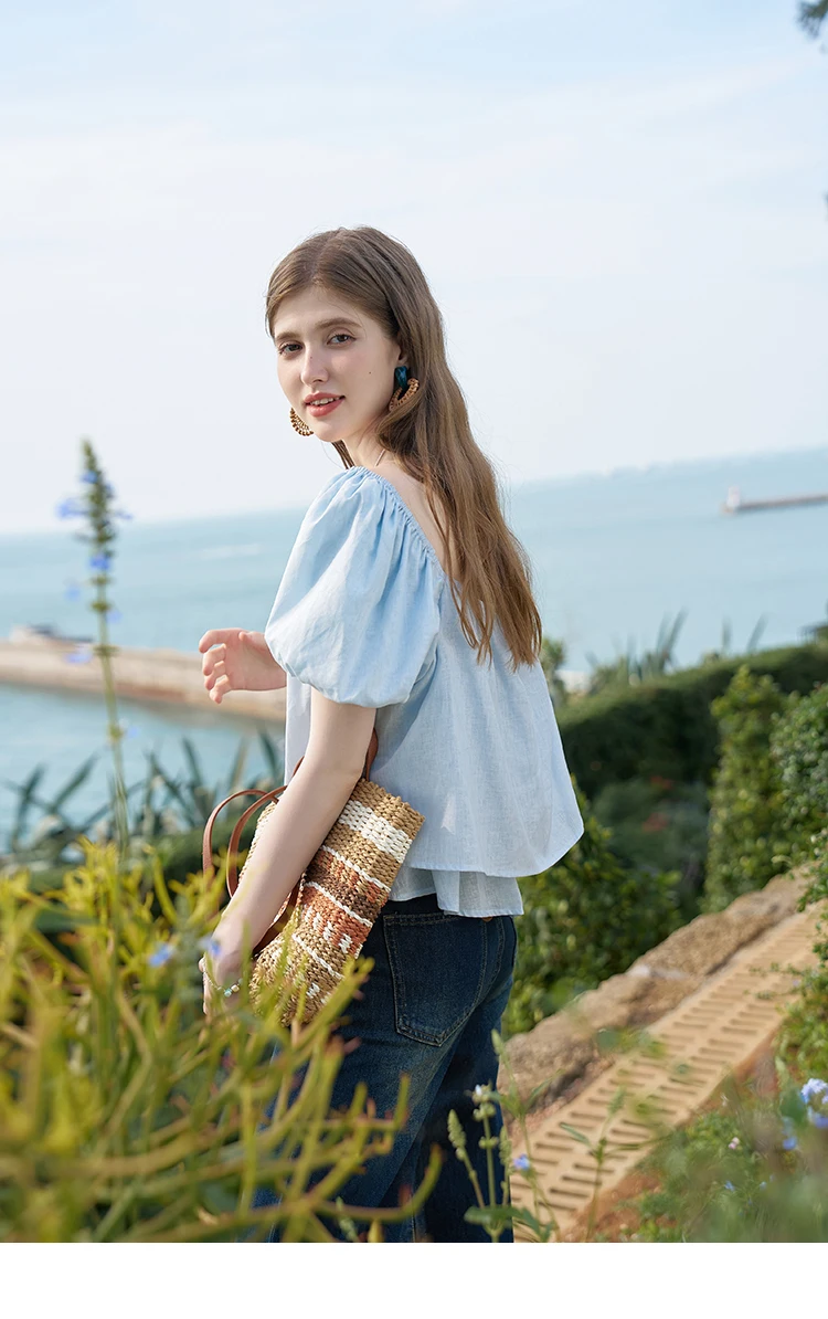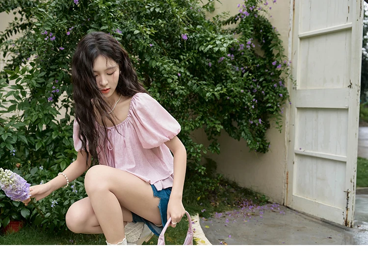 MISHOW French Square Neck Tied Lantern Sleeve Blouses 2025 Summer Double Layered Hem Puff Sleeve Solid Sweet Tops MXD26X1551