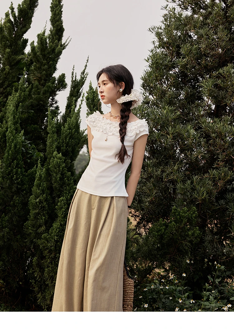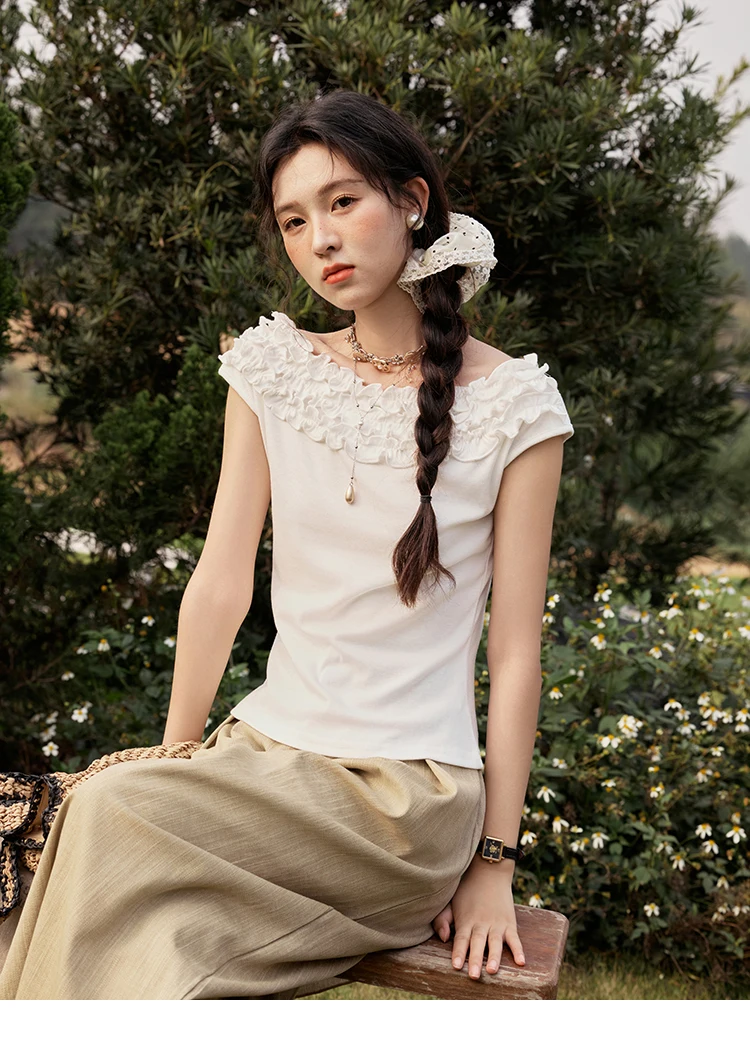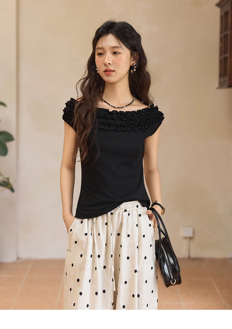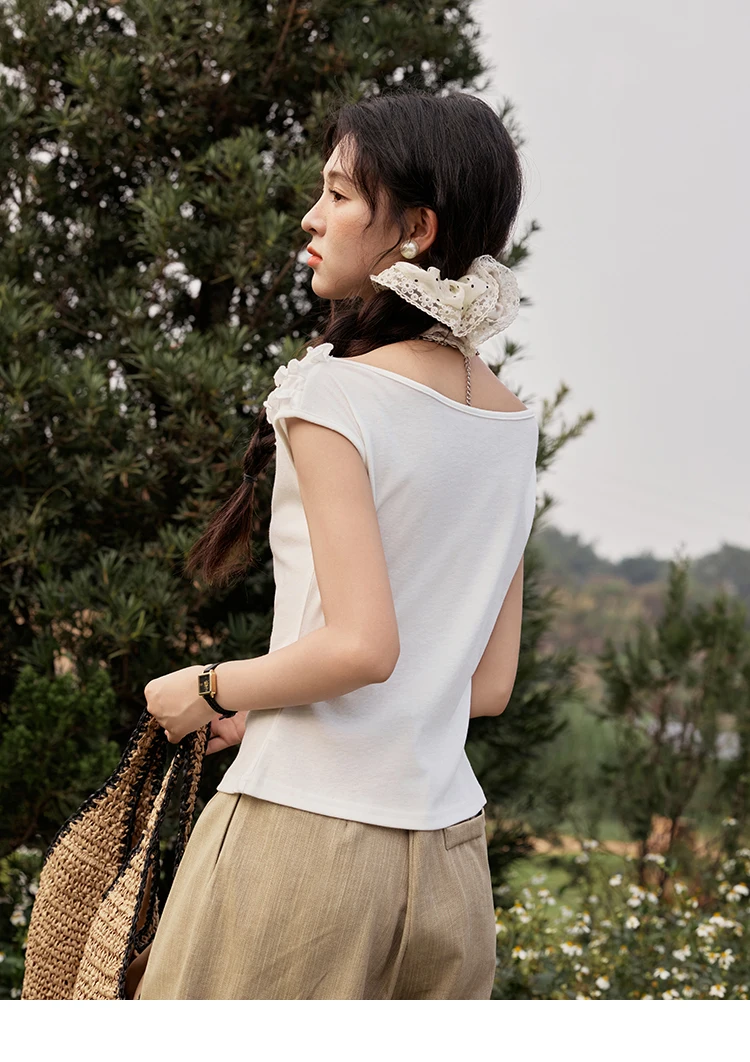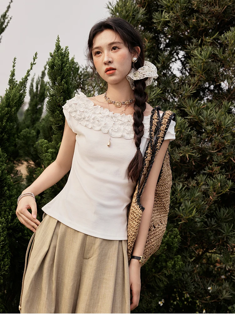 MISHOW French Stringy Selvedge One Neck T-shirt for Women Summer 2025 Raglan Sleeves Wool Short Top Sexy Solid Tees MXE34T0605