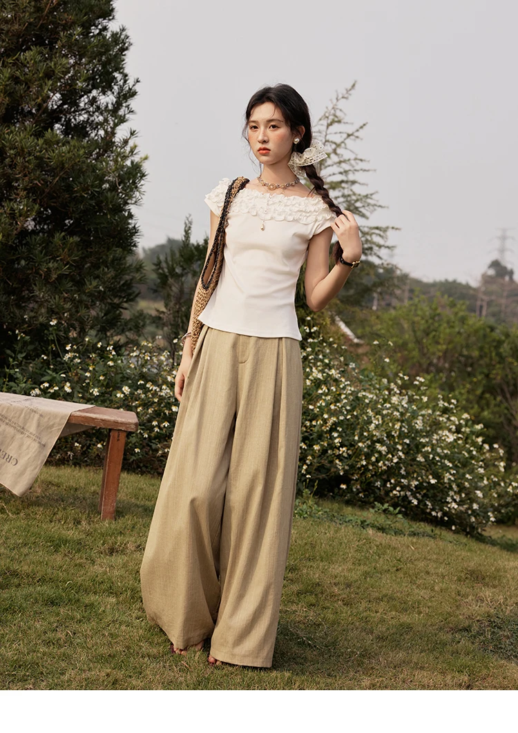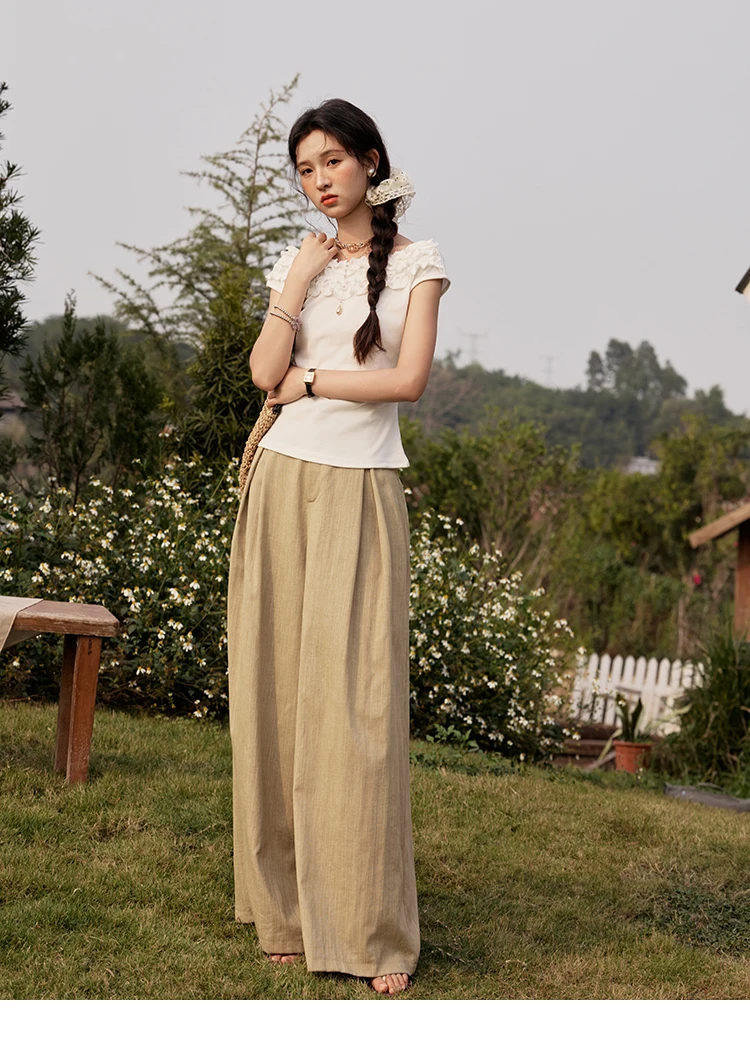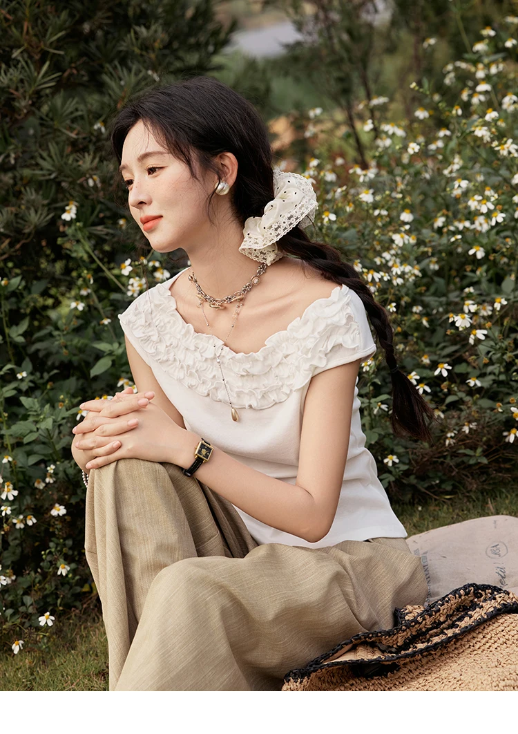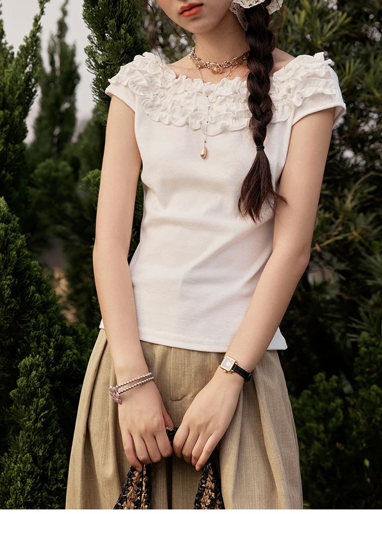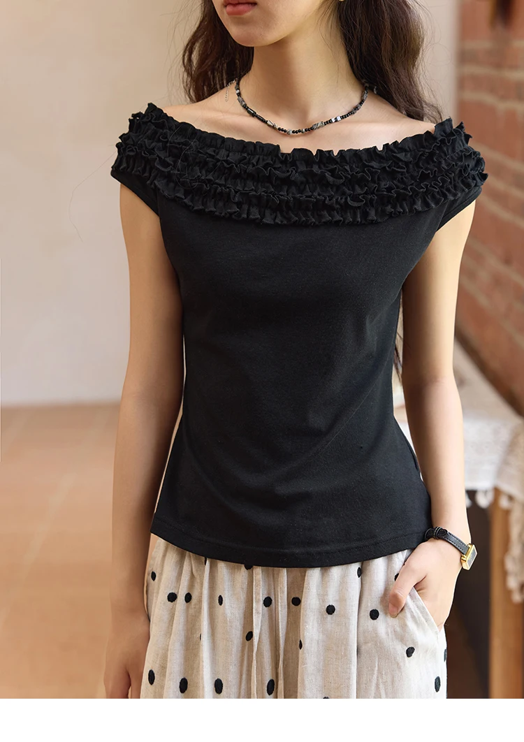 MISHOW French Stringy Selvedge One Neck T-shirt for Women Summer 2025 Raglan Sleeves Wool Short Top Sexy Solid Tees MXE34T0605
