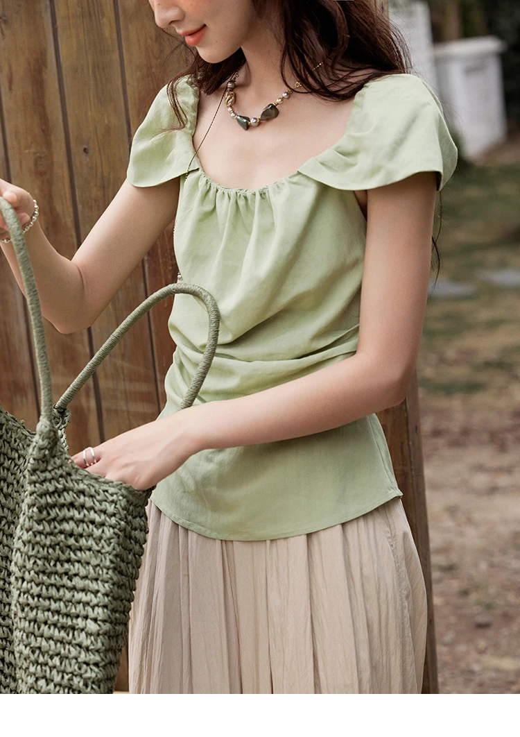 MISHOW French Summer Shirt Women 2025 New Short Flying Sleeve Square Collar Solid Slimming Blouses Female Versatile MXE34X1804