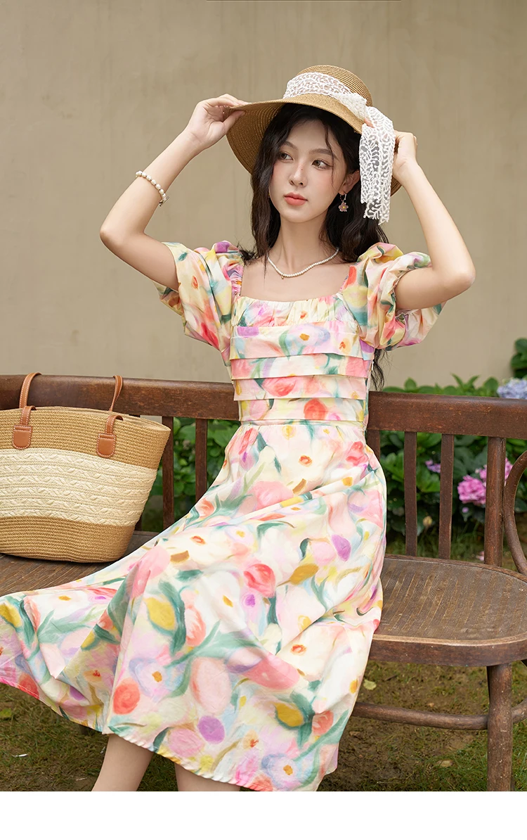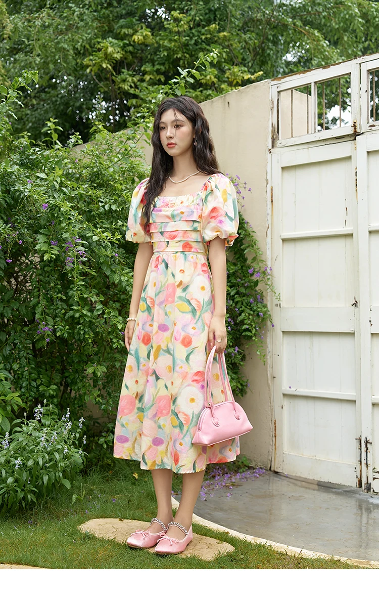 MISHOW French Tulip Fragmented Flower Dresses for Women 2024 Summer Beach Vacation Puff Sleeve Sweet Elegant Dresses MXD28L1896
