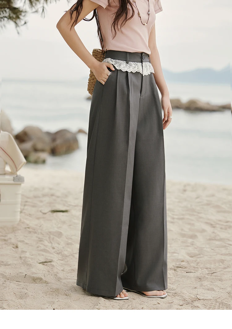 MISHOW Gray Suitable Pant Women 2025 Summer High Waist Retro Long Wide Leg Pants Woman Fashion Office Lady Trousers MXE32K0921