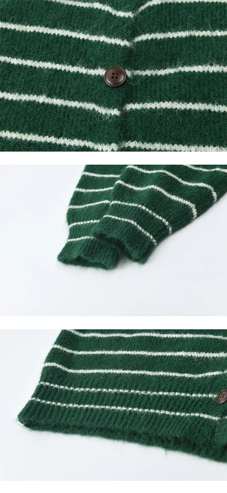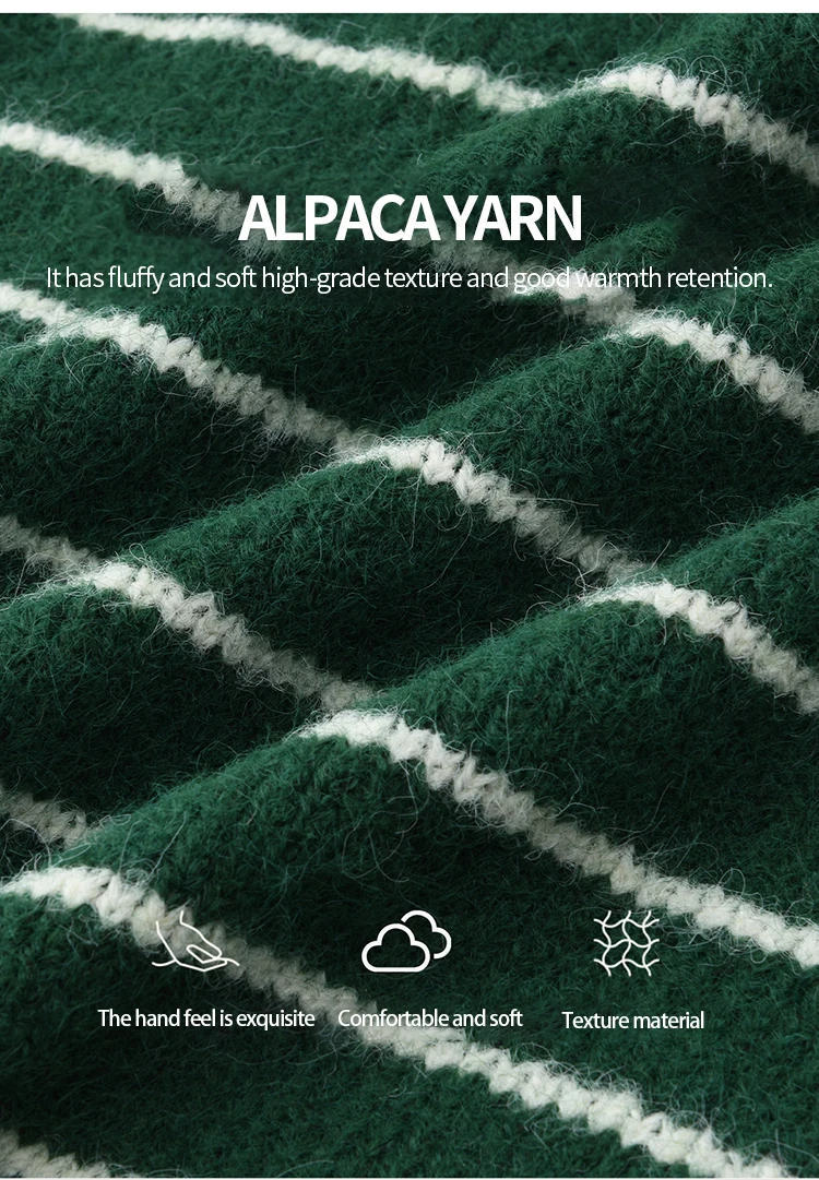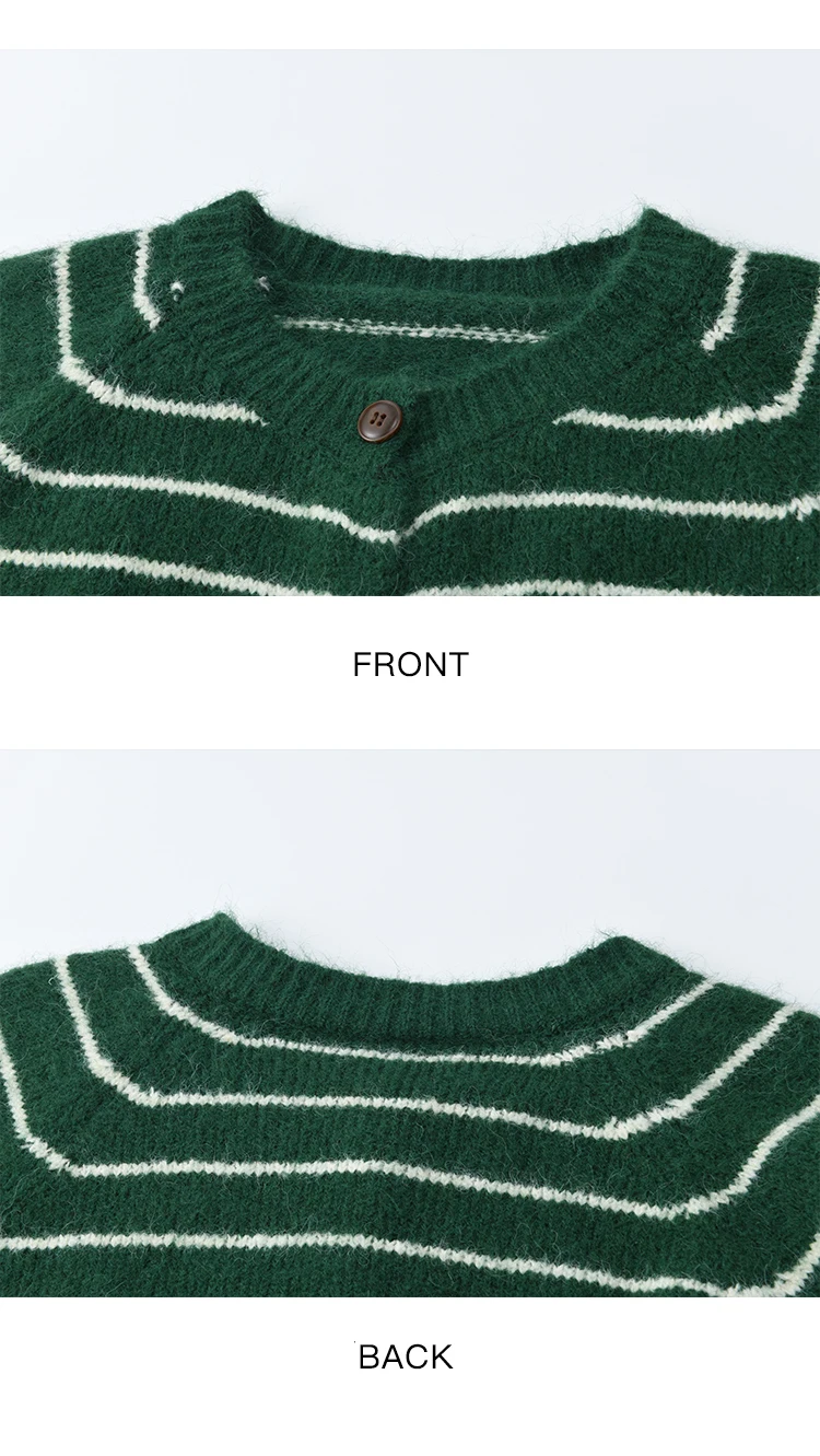 MISHOW Green Striped Cardigans for Woman 2025 Winter Knitted Cardigan Wool Blend Loose Retro Crew Neck Knit Sweater MXE86Z2735