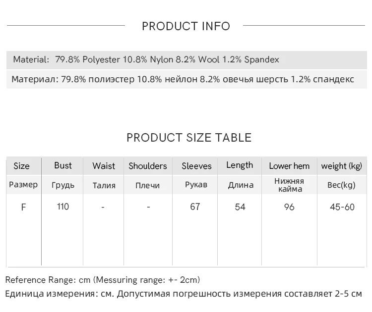 Material Composition: 79.8% polyester fiber 10.8% nylon 8.2% sheep wool 1.2% spandex