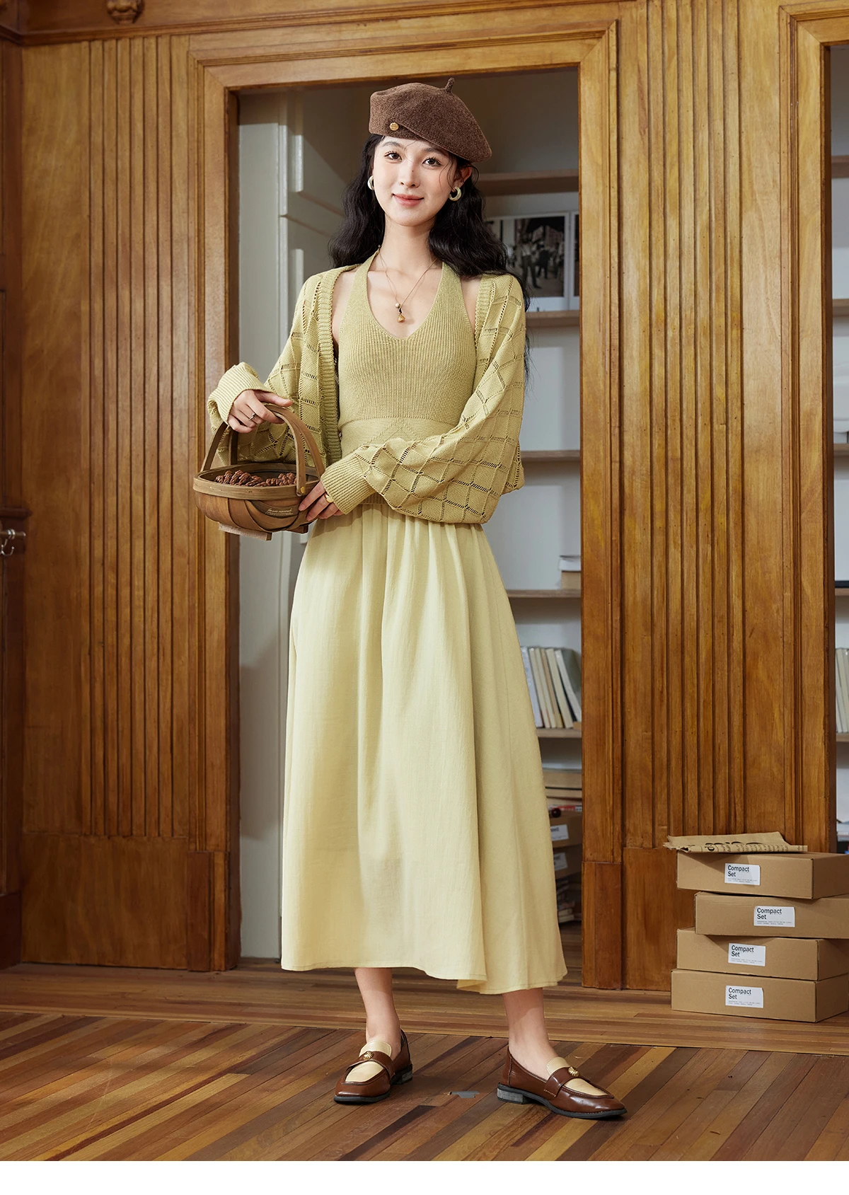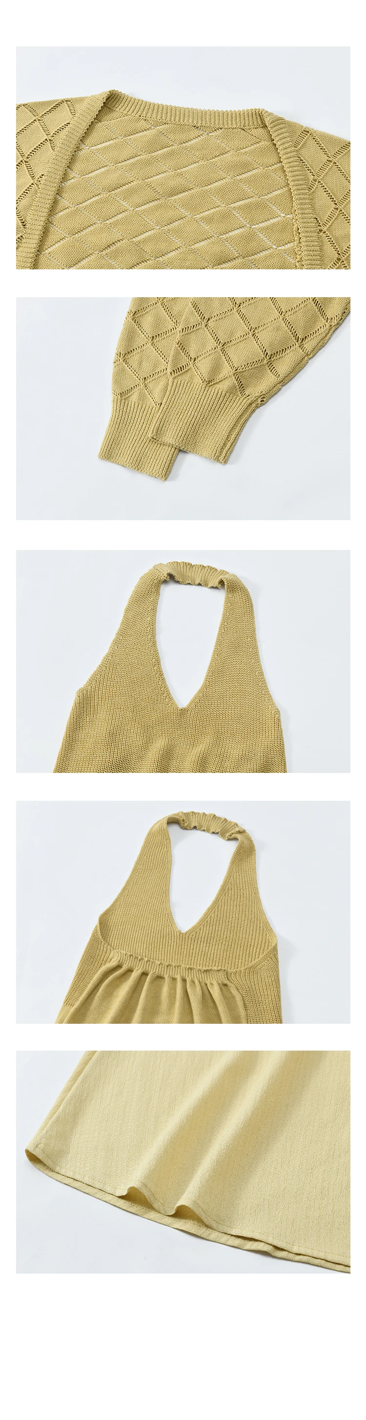 MISHOW Hanging Neck Dress Knitted Cardigan Separately 2024 Autumn Hollow Short Top Knitted Patchwork Sleeveless Dress MPD42L2040