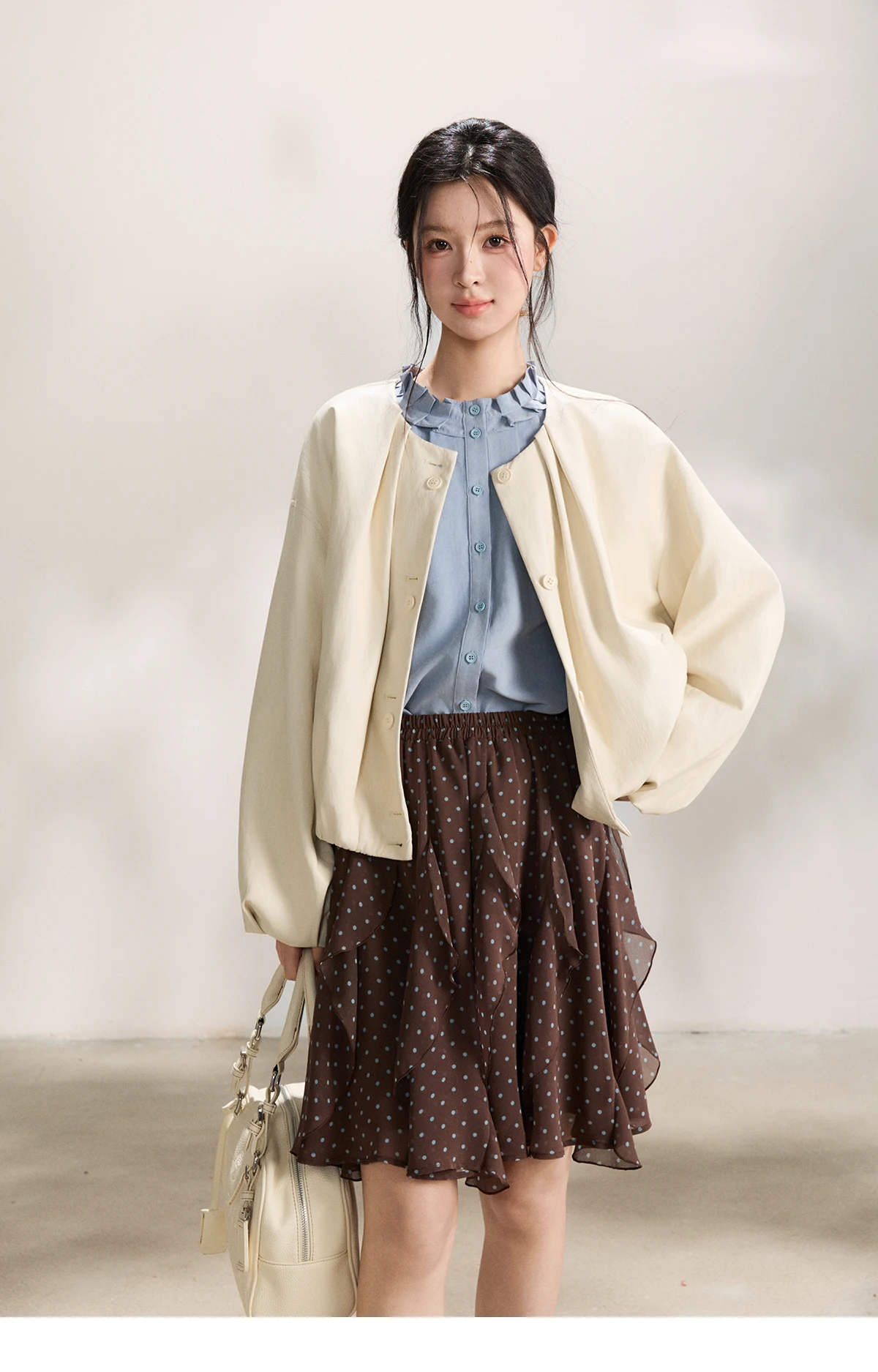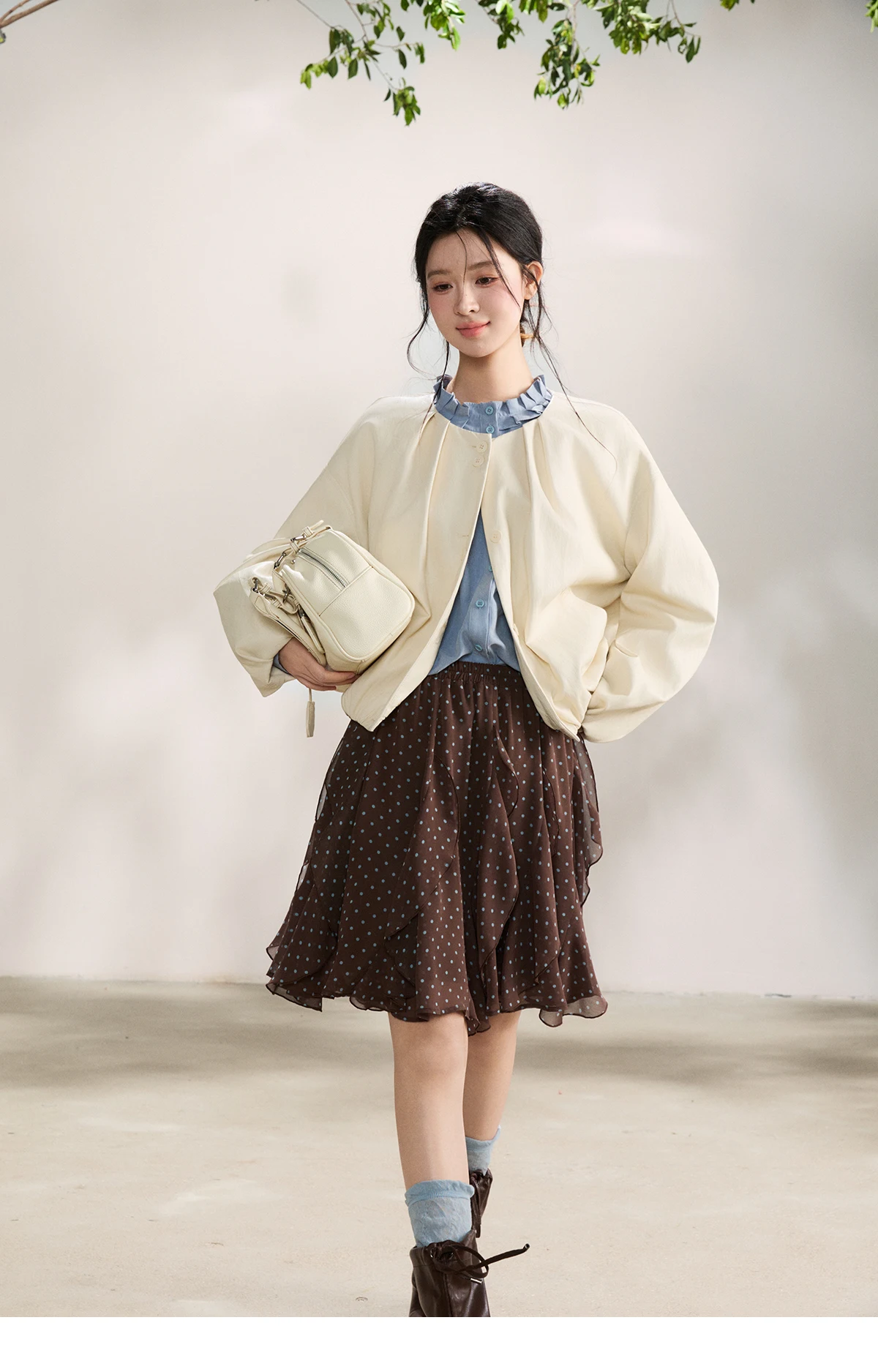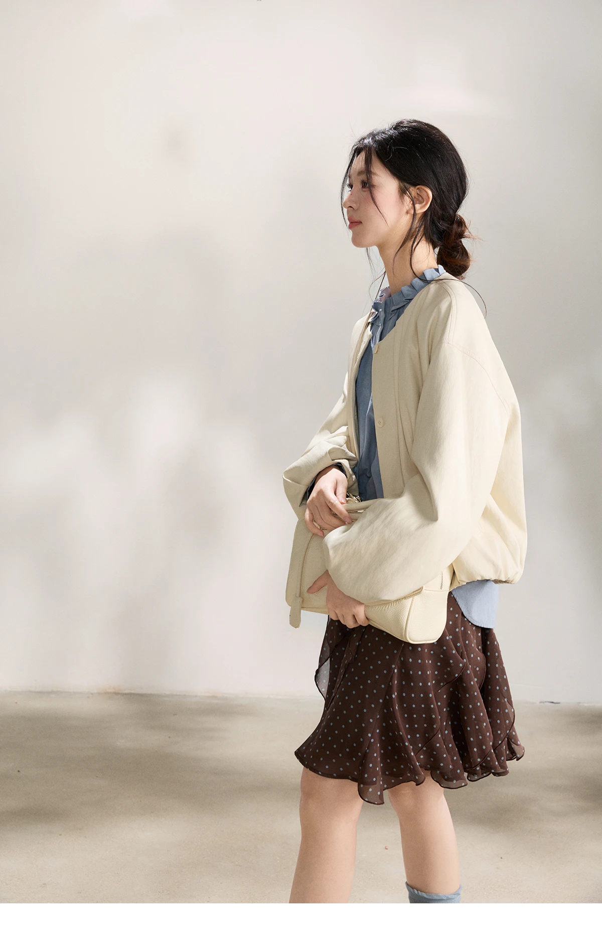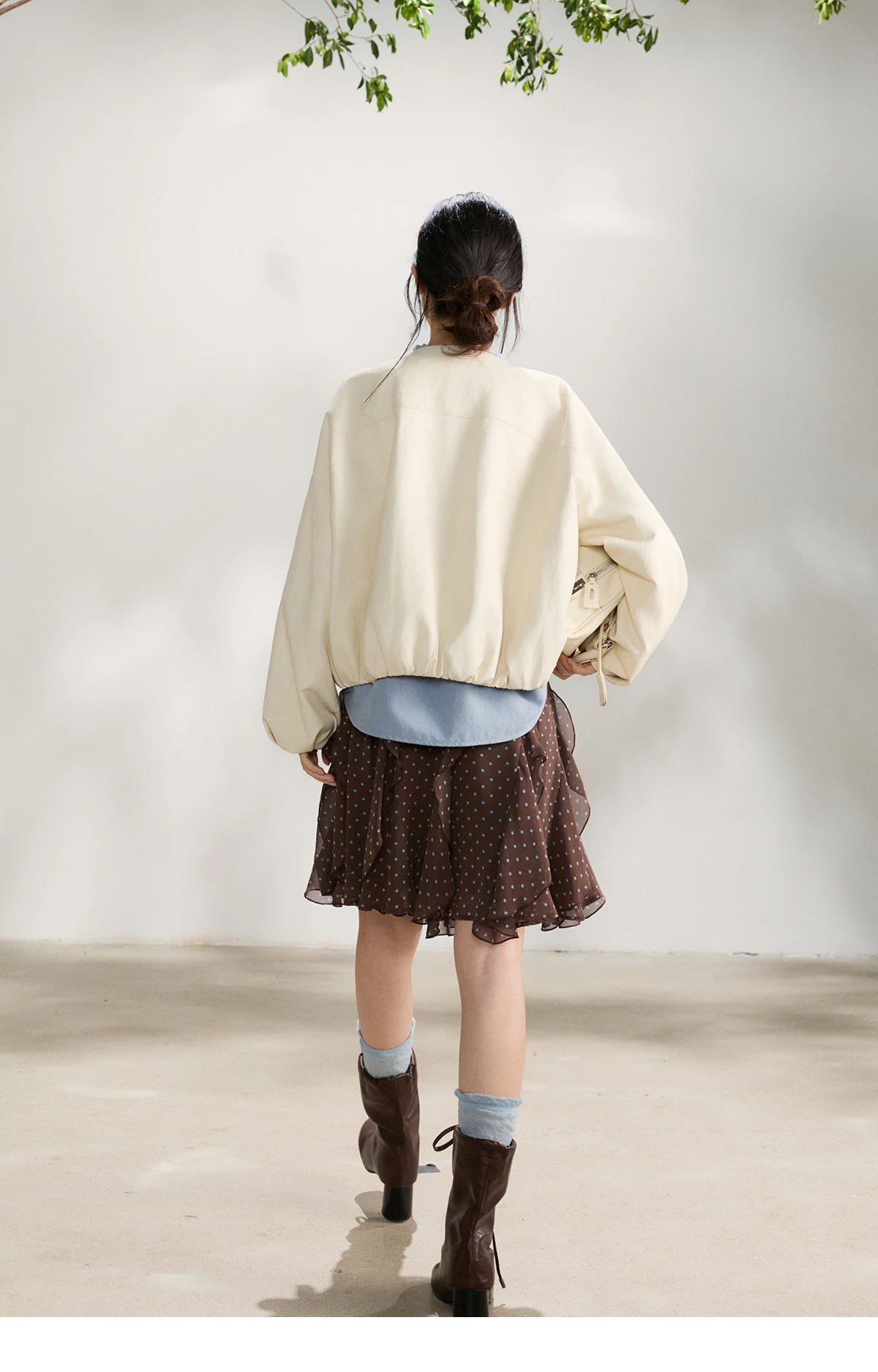 MISHOW Imitation Protein Skin Short Flower Bud Leather Jacket 2026 Spring Ruffled Collar Casual Loose Button-Up Coat MXF108W1019