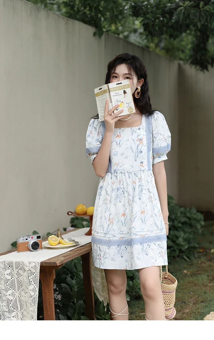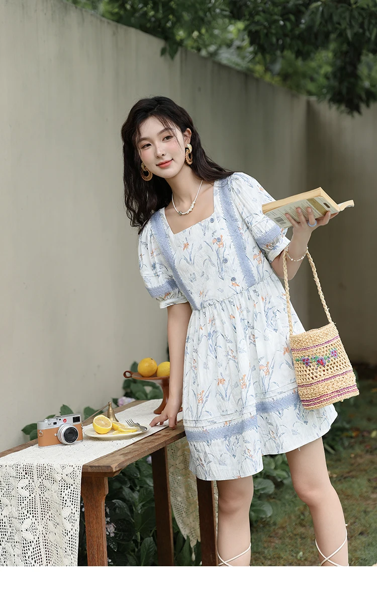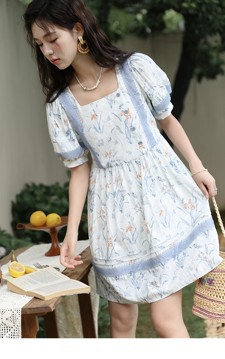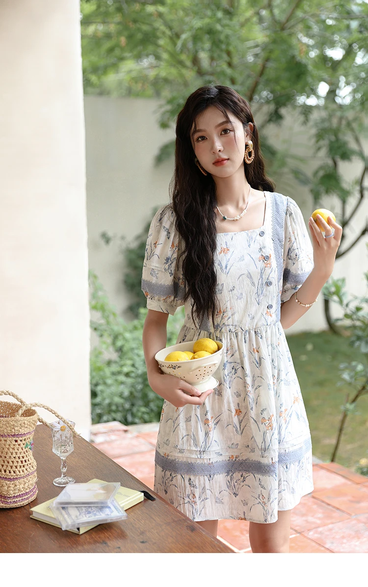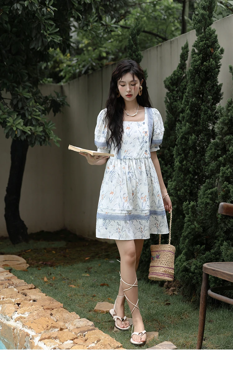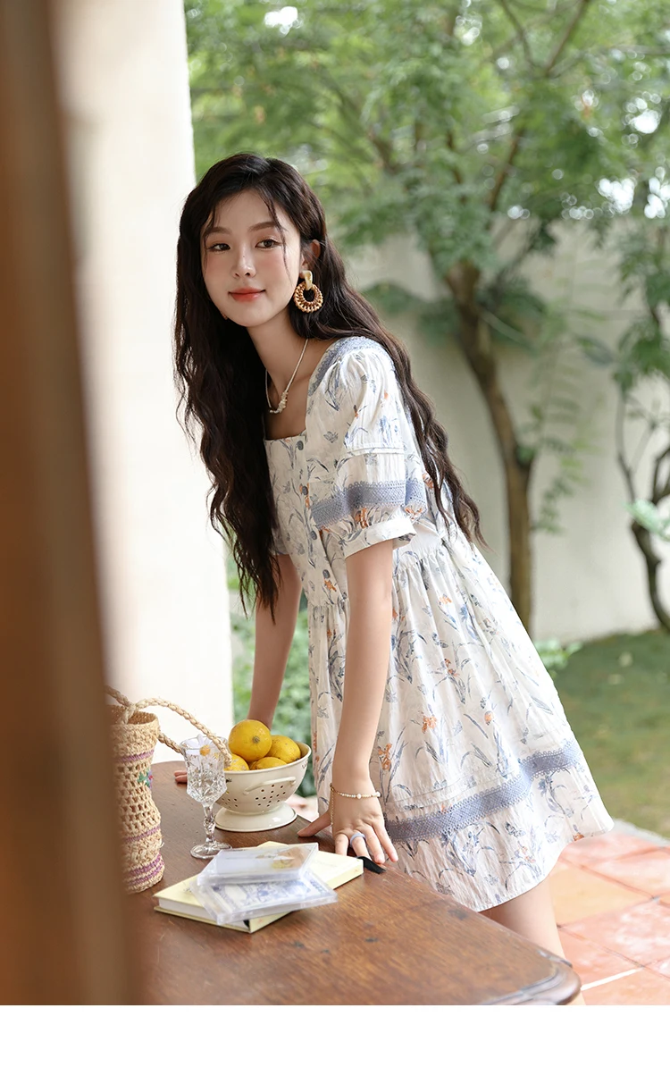 MISHOW Ink Wash Printed Fabric Dress for Women 2025 Summer French Oil Painting Square Neck Splicing Lace Doll Dresses MXD29L1932