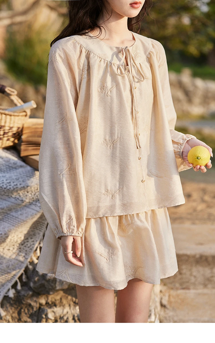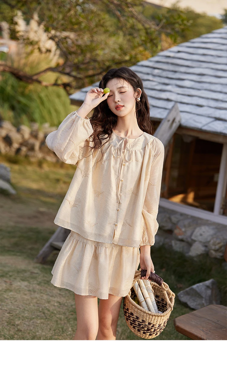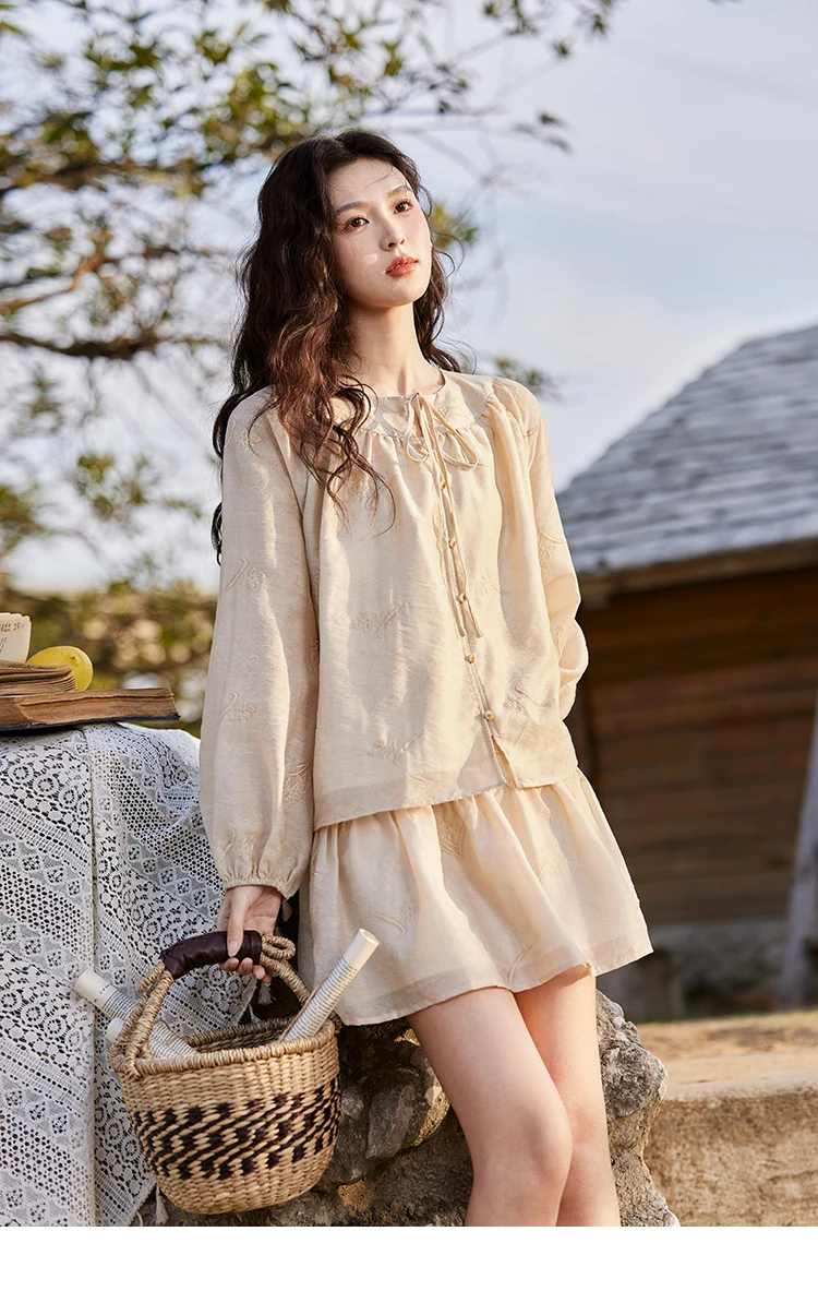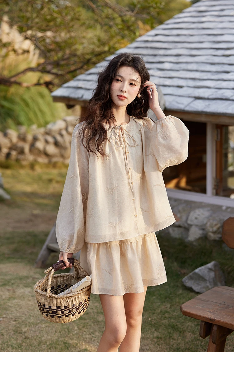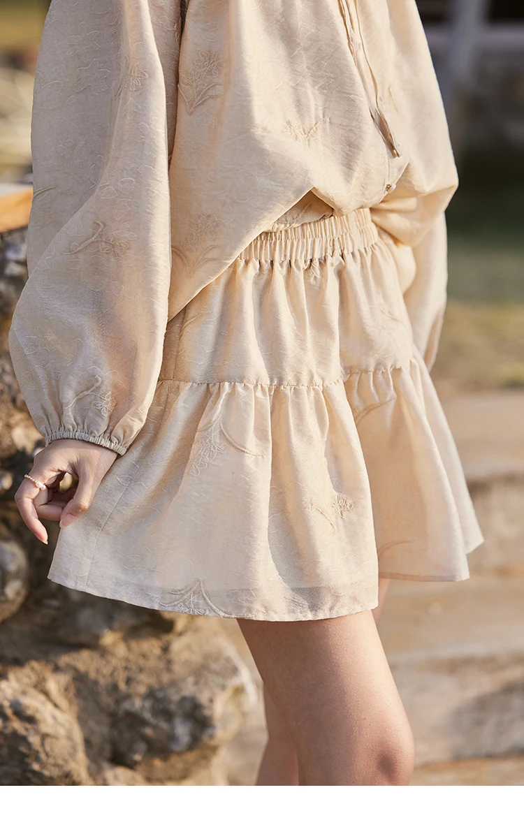 MISHOW Iris Embroidery Blouse Elastic Waist Skirt Set for Women Spring Summer 2025 Jacquard Commuting Slim Two Pieces MXE13T0454