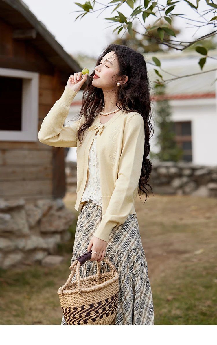 MISHOW Iris Embroidery Round Neck Cardigan for Women Spring 2025 Loose Knitted Thin Bow Design(Not Include Lace Vest) MXE13Z1142