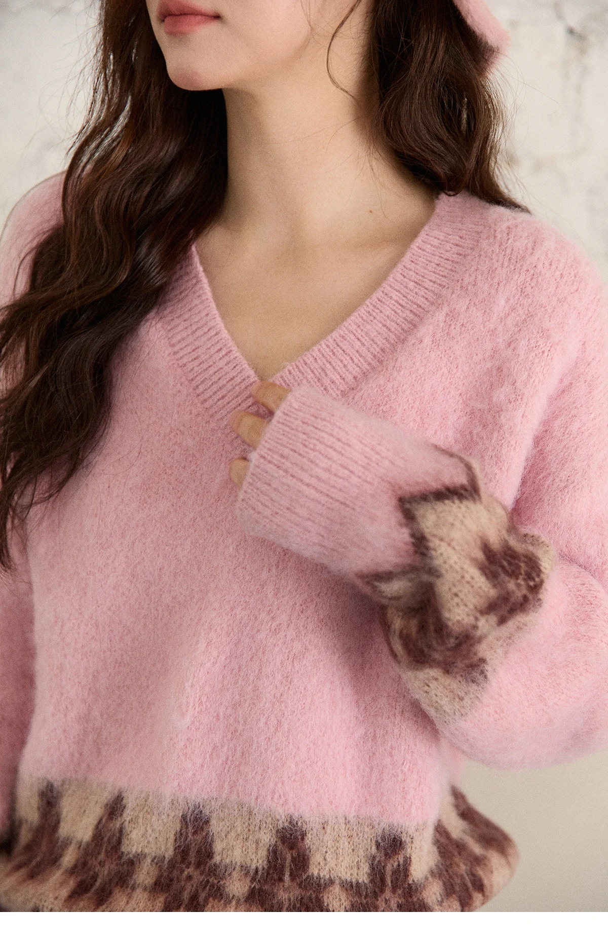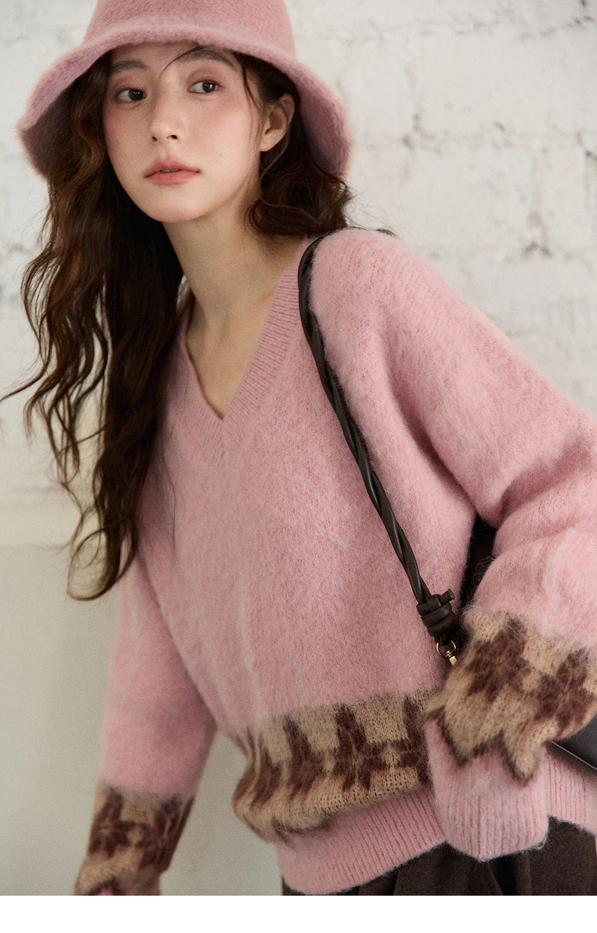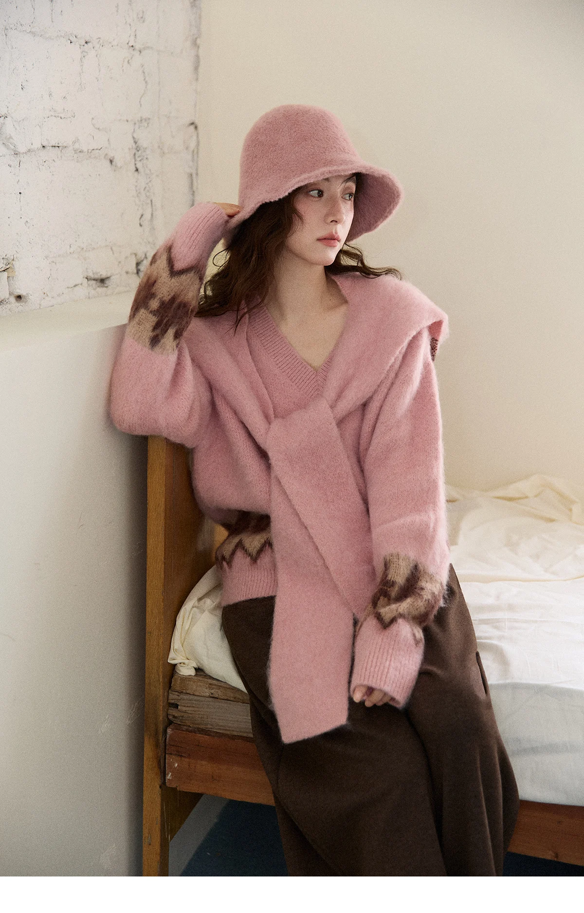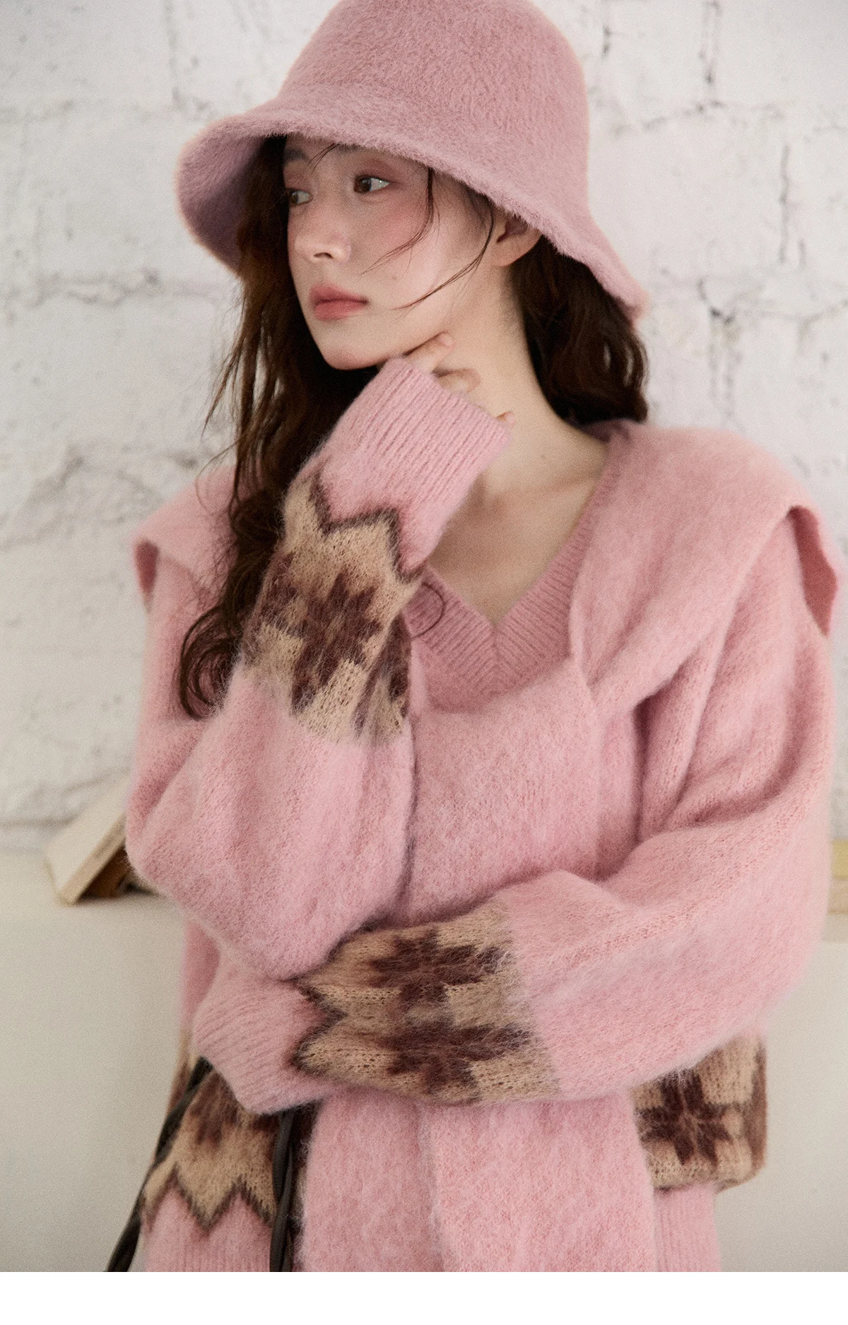 MISHOW Jacquard Pullovers for Women 2025 Winter Fashion Retro Geometric Pattern V-Neck Knitted Sweater with Shawl MXE86Z2654