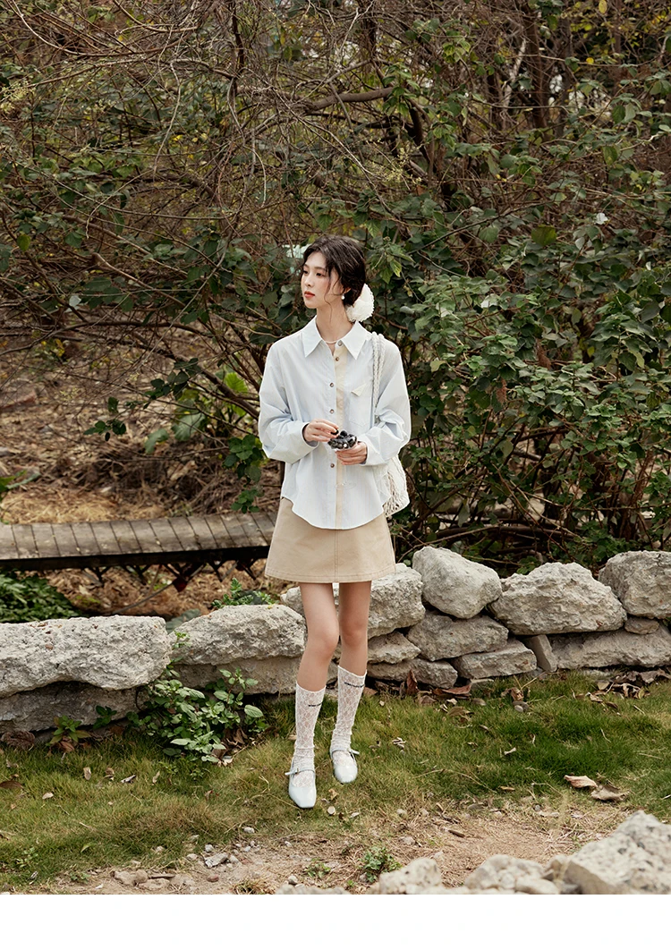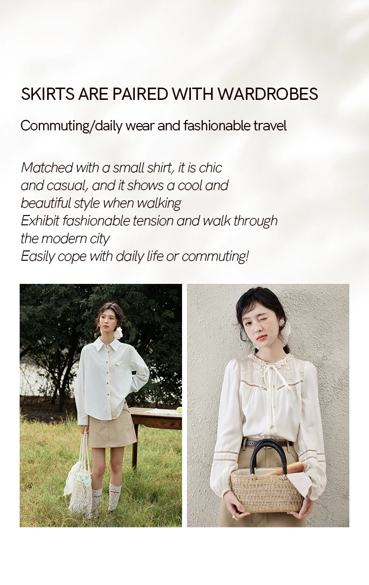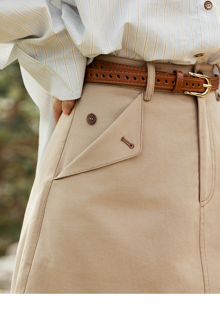 MISHOW Khaki A-line Short Skirt Spring 2025 100Cotton High Waist Versatile Skirt Zipper Pockets Skirt (Not with Belt) MXE15B0696