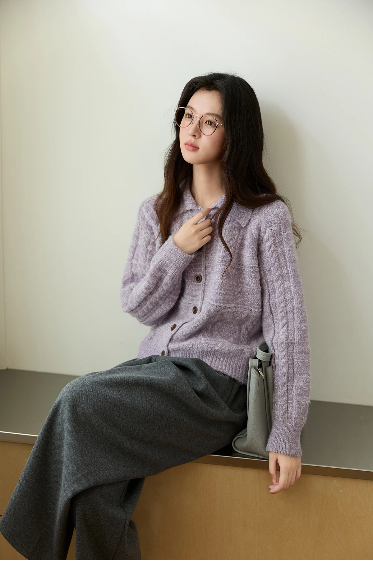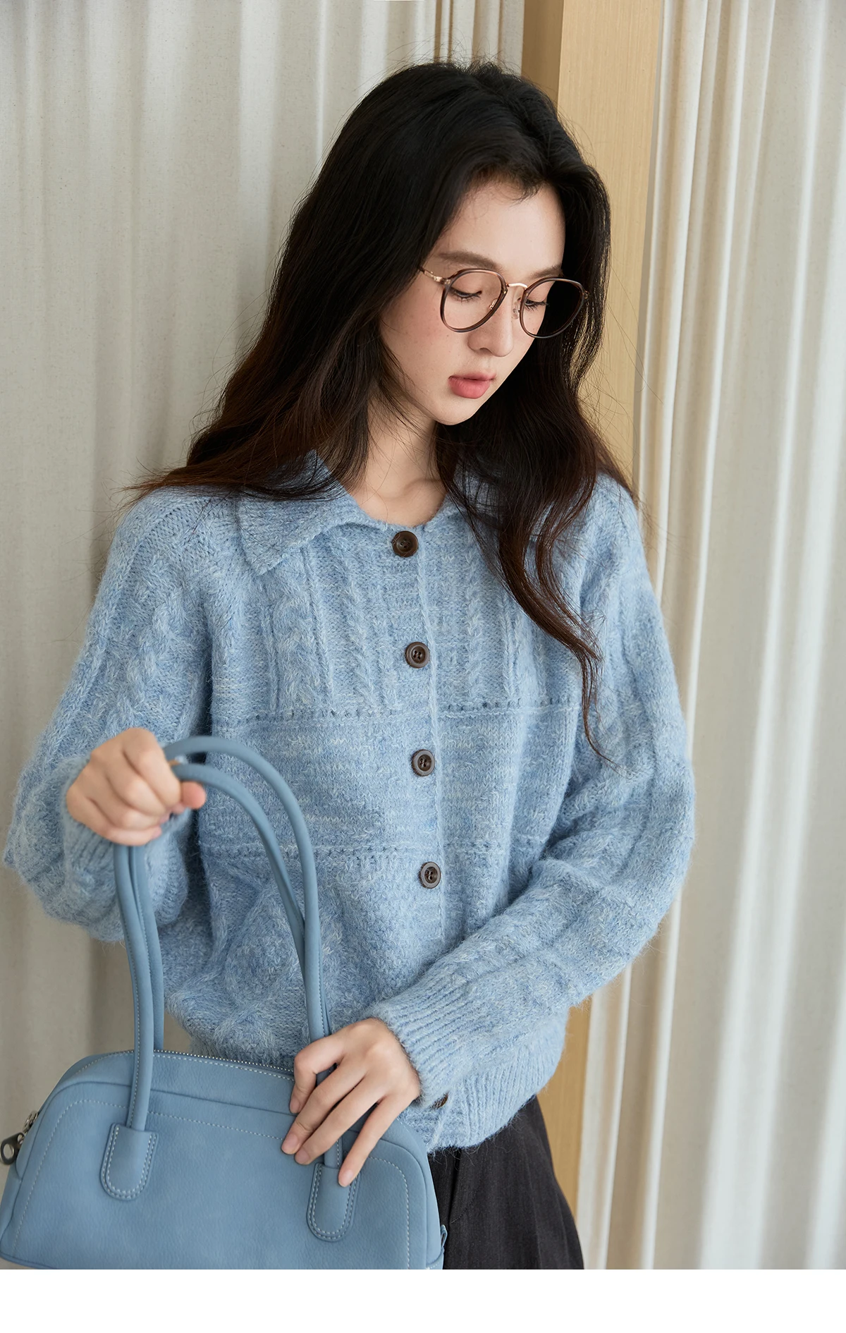 MISHOW Knitted Cardigan Women 2025 Autumn Winter Simple Turn-down Collar Loose Comfortable Single-breasted Sweater MXE48Z2611