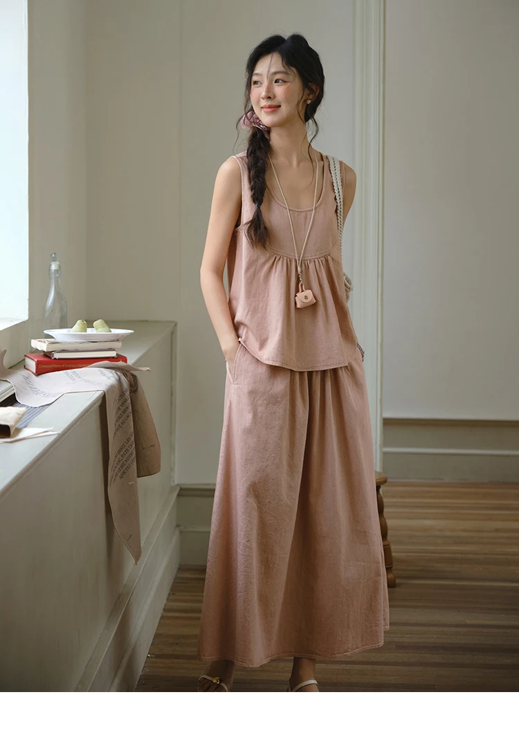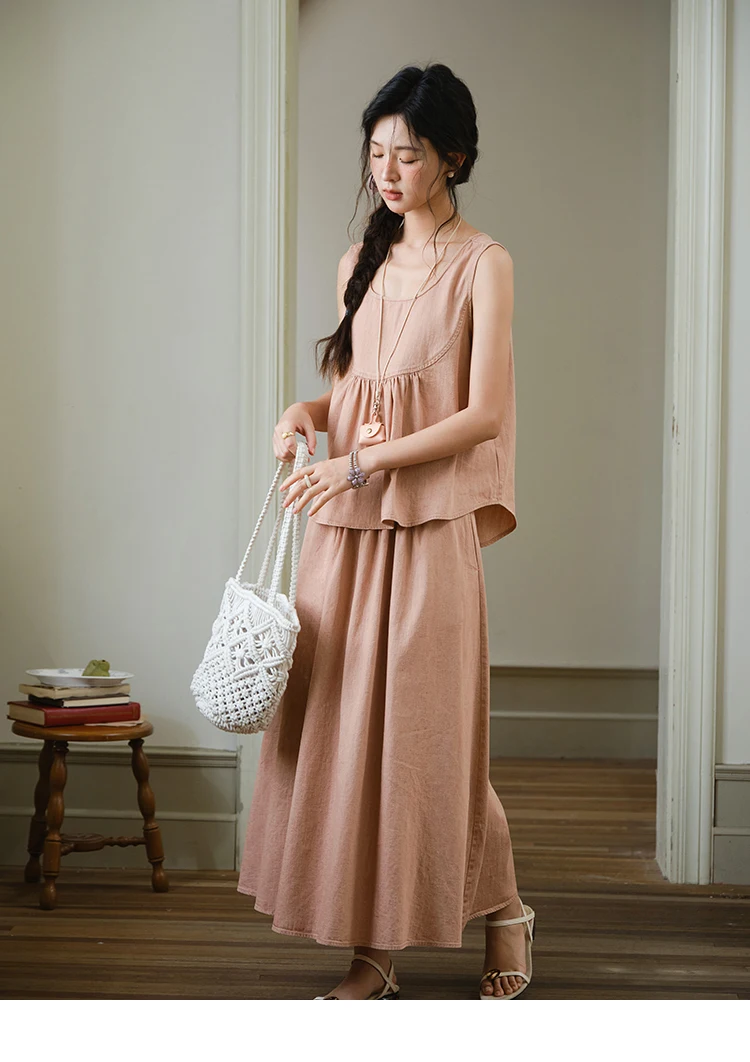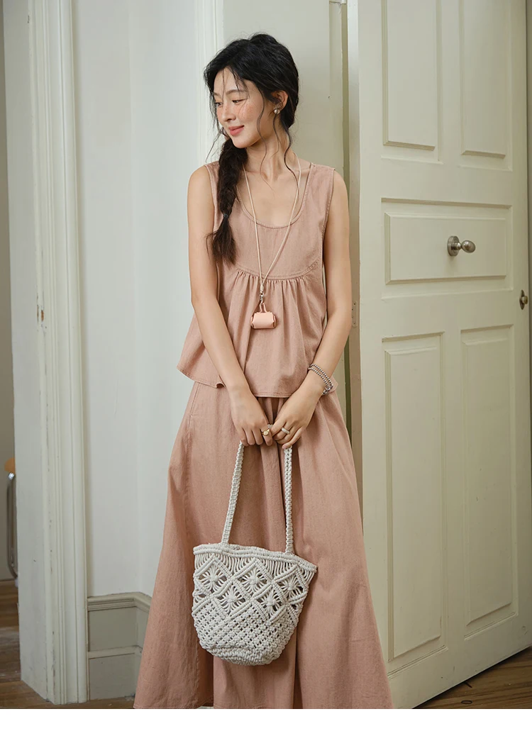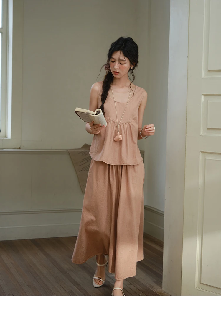 MISHOW Ladies 2 Pieces Set 2025 Summer New U-shaped Collar Sleeveless Top Fashion A-line Skirt Set Women's Clothing MXE35T0606