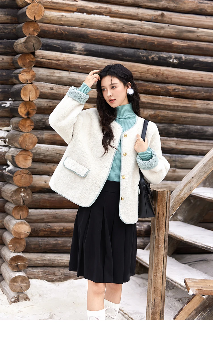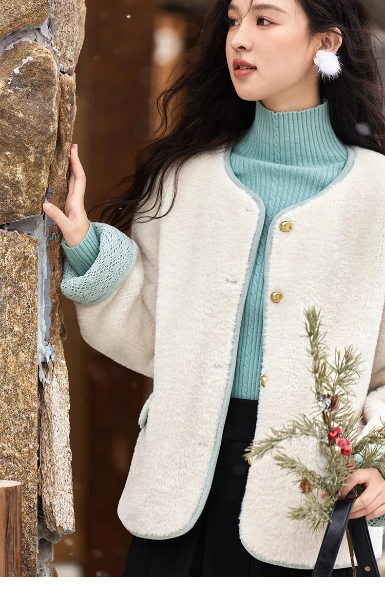 MISHOW Lamb Wool Jacket Women Cuffs Spliced Lace Metal Buttons Design Suede Plush Soft Warm Solid Leather Fur Coats MXD58W0740