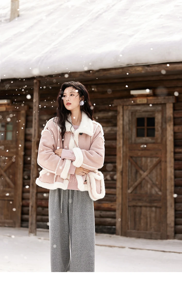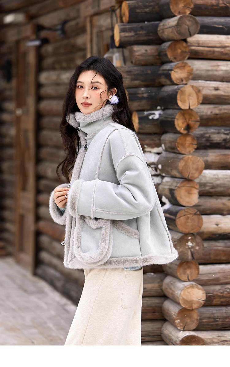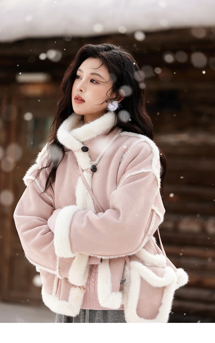 MISHOW Leather Fur Coat Fur Collar with Bag Women Winter Clothes Suede Plush Jacket Pocket Soft Thickened Warm Tops MXD57W0737
