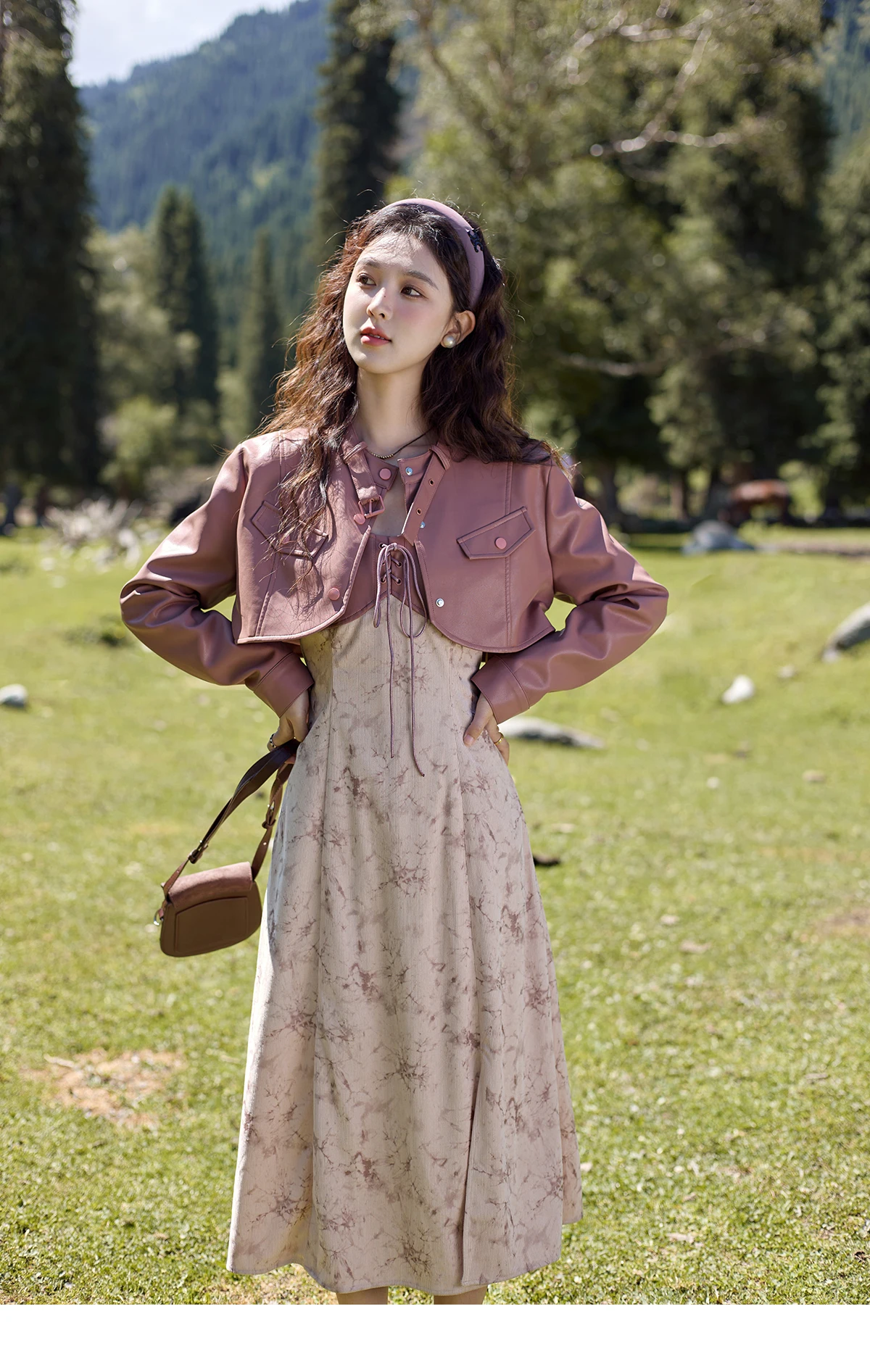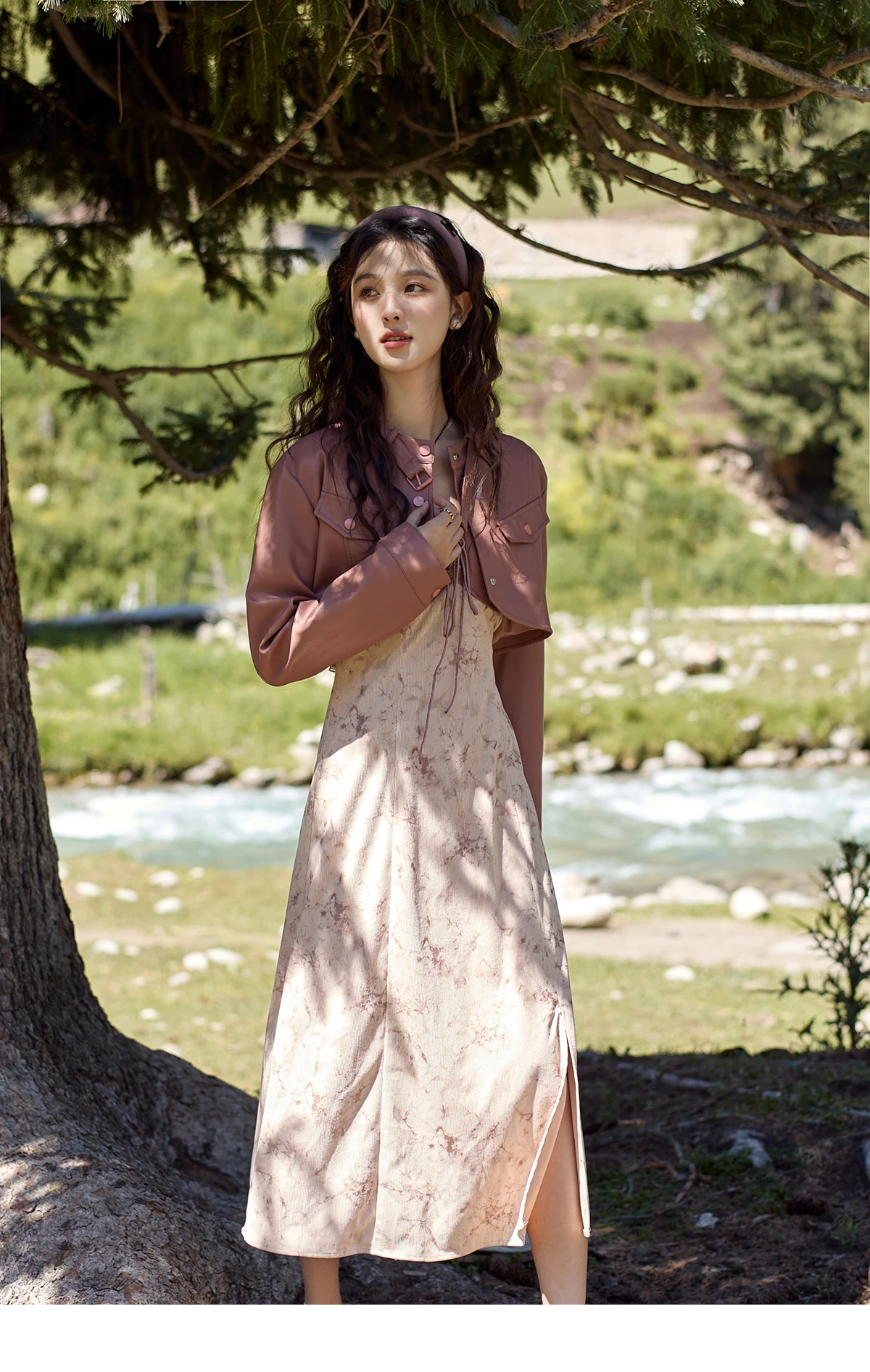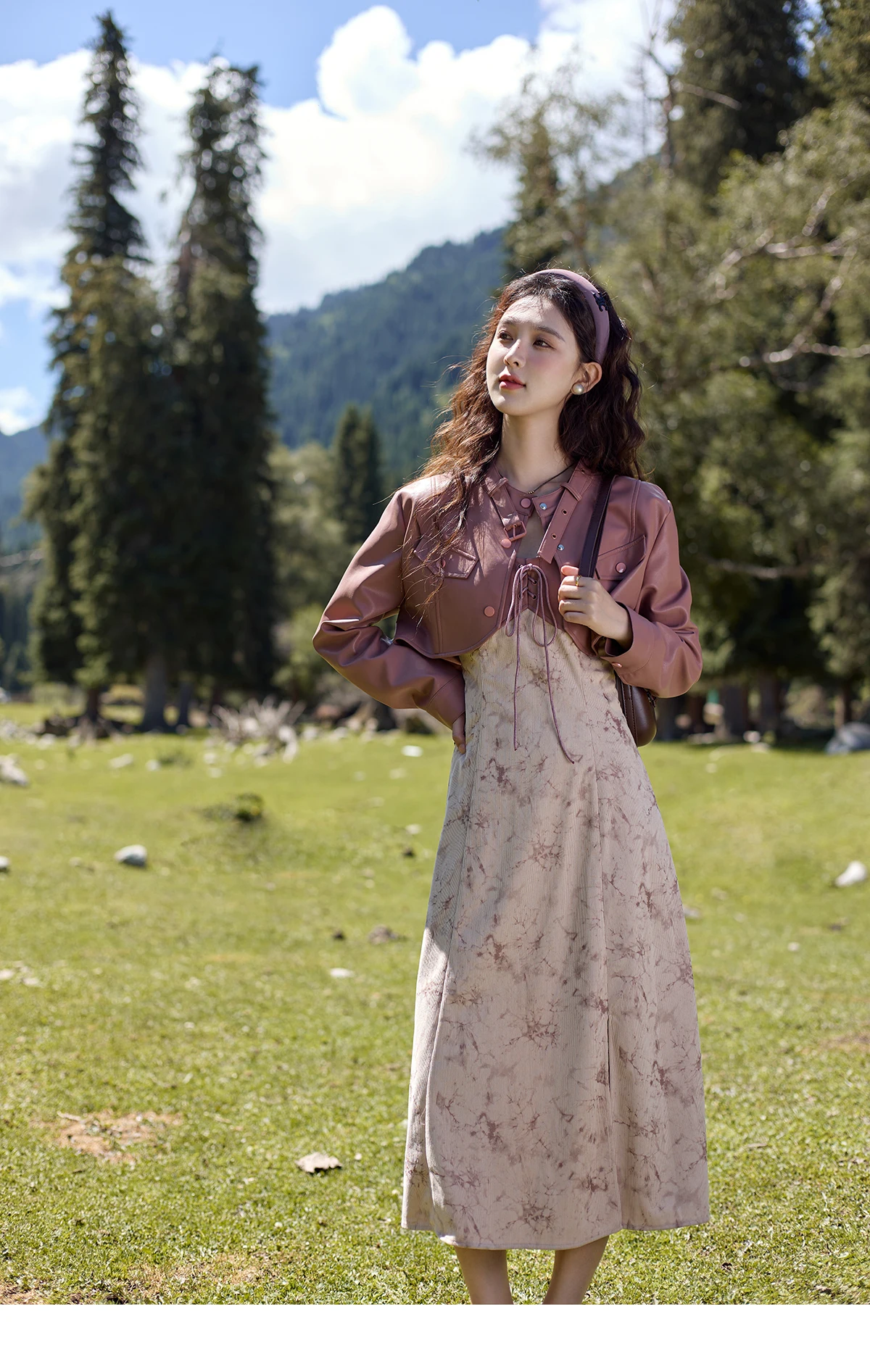 MISHOW Leather Patchwork Floral Strap Dress for Autumn 2024 Lace-up Hem Side Slit Dress Sleeveless Camisole Dresses MXD43L2031