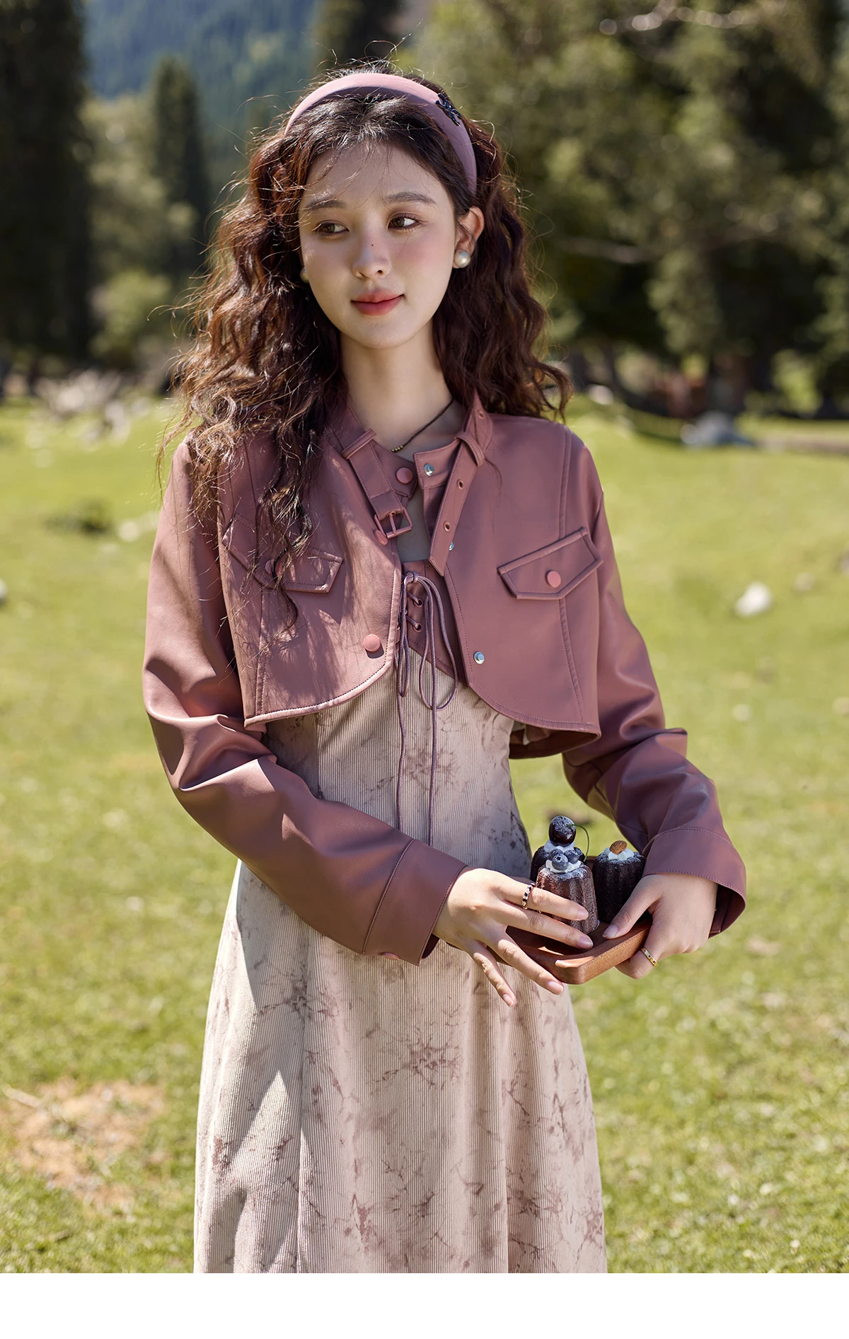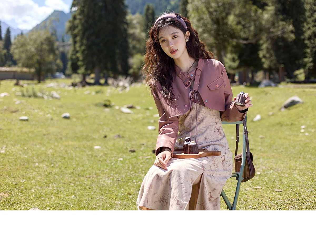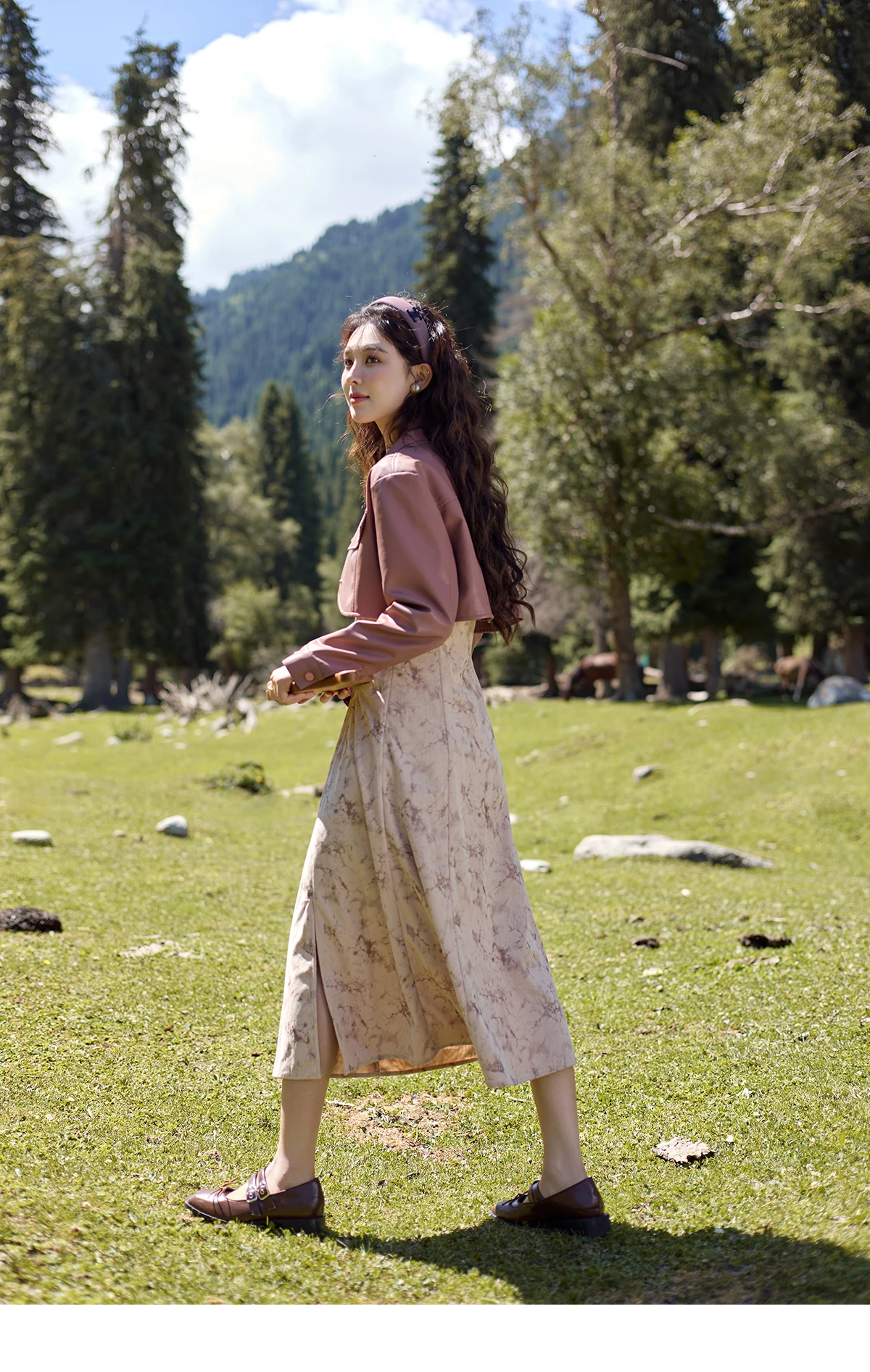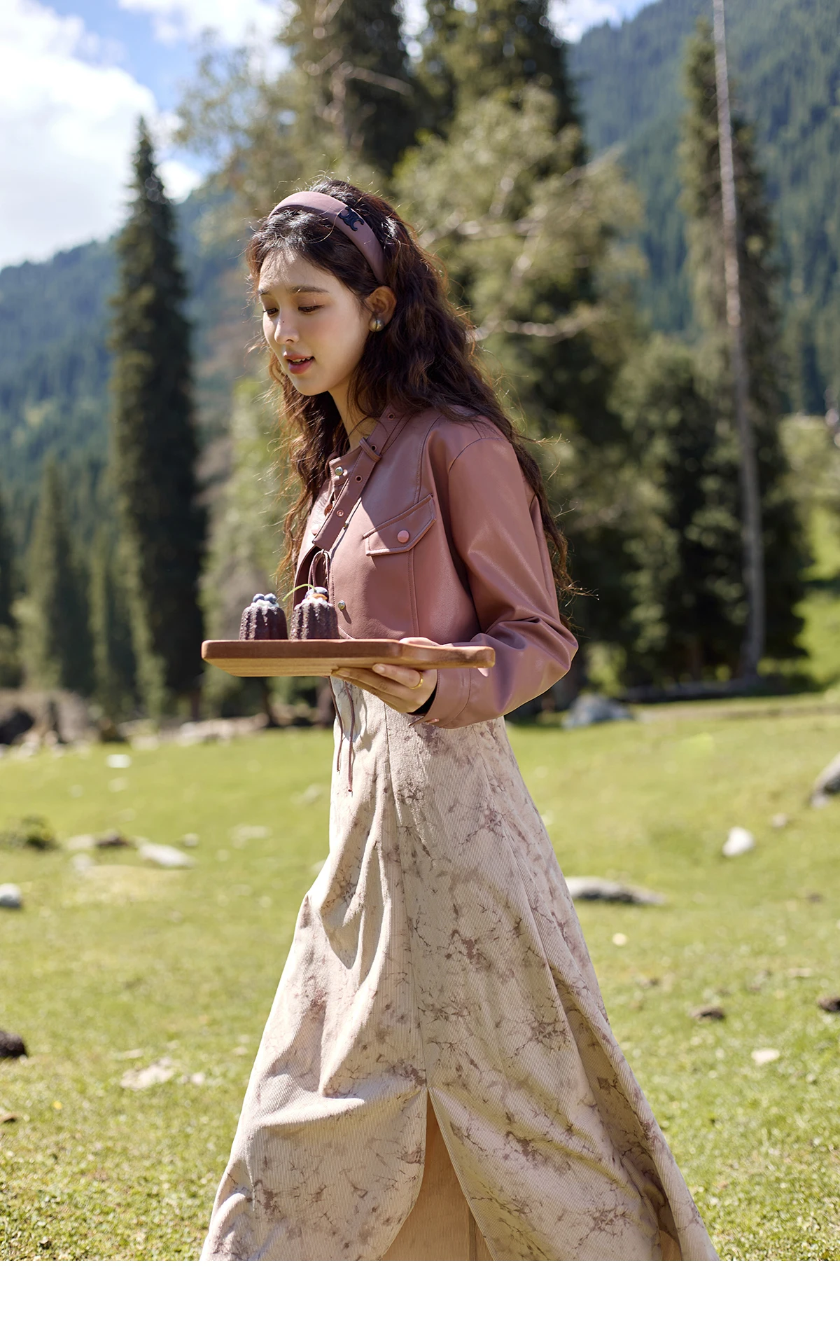 MISHOW Leather Patchwork Floral Strap Dress for Autumn 2024 Lace-up Hem Side Slit Dress Sleeveless Camisole Dresses MXD43L2031